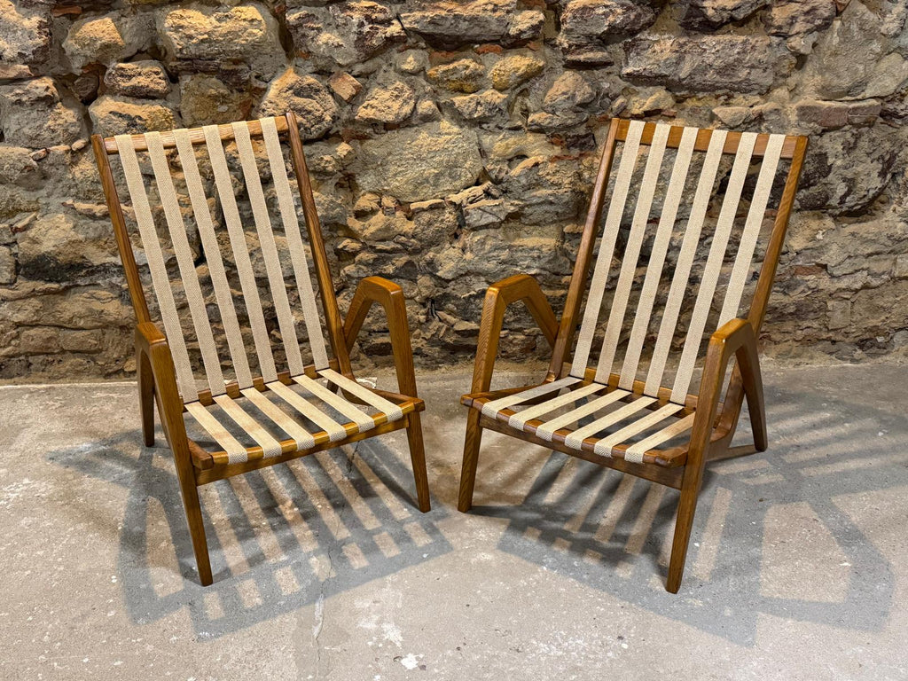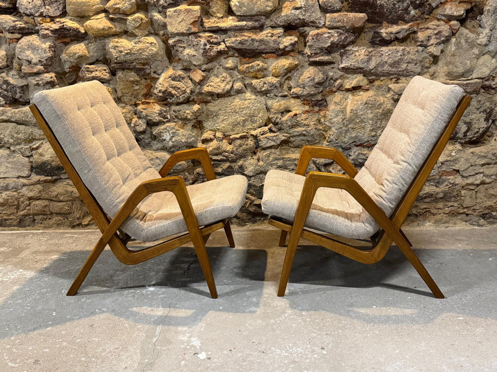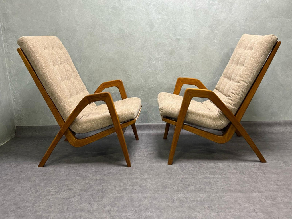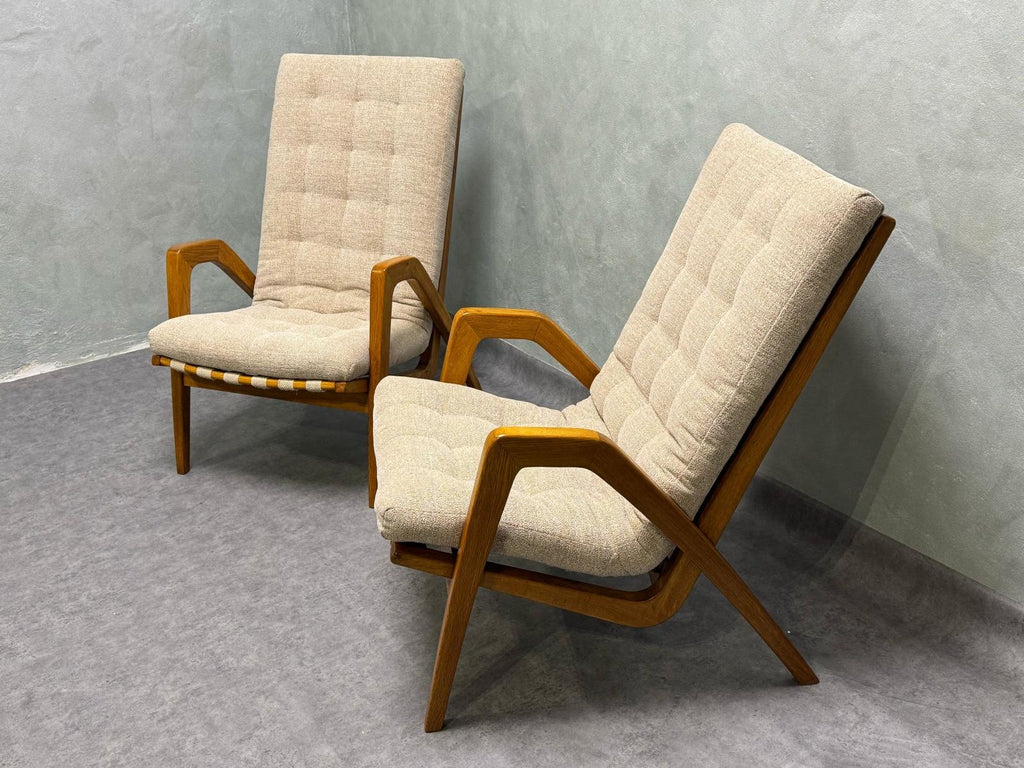 A fully restored pair of armchairs designed by renowned Czech architect and designer Jan Vaněk in the 1940s.