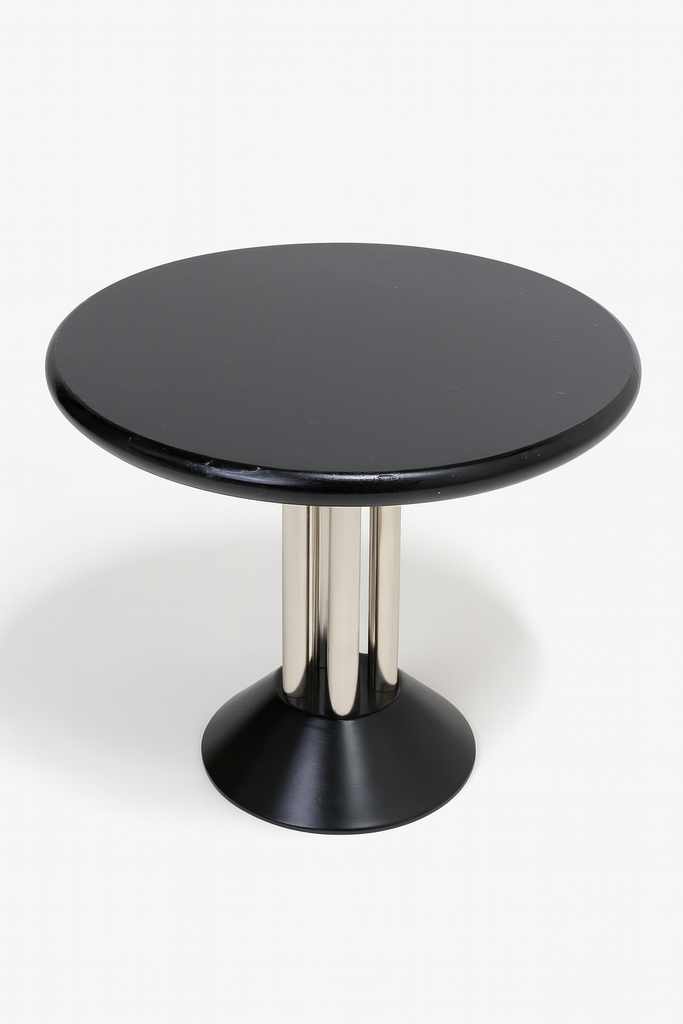 Black Postmodern Side Table with Chrome Base, 1970s–1980s