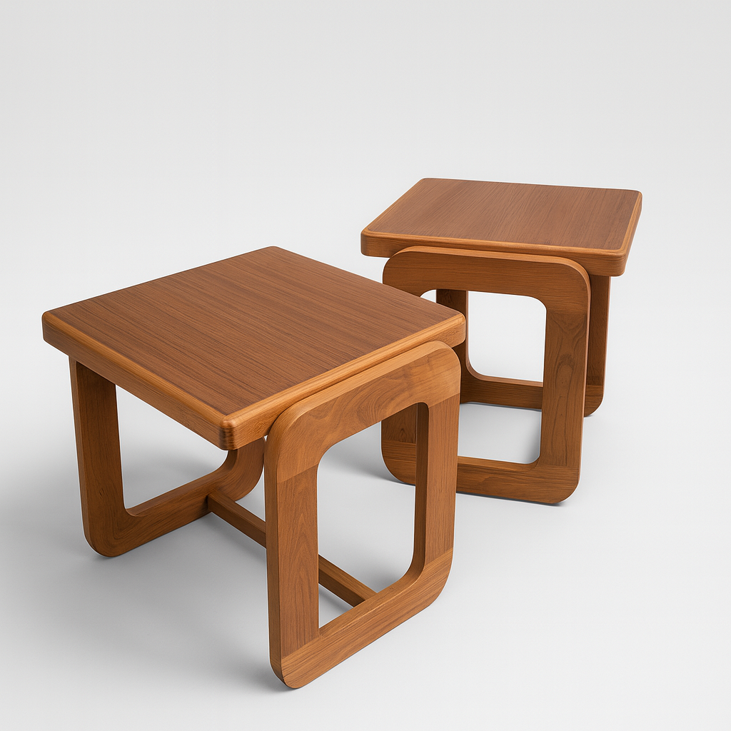 Pair of Brutalist Side Tables, Beech Wood, 1970s, Germany