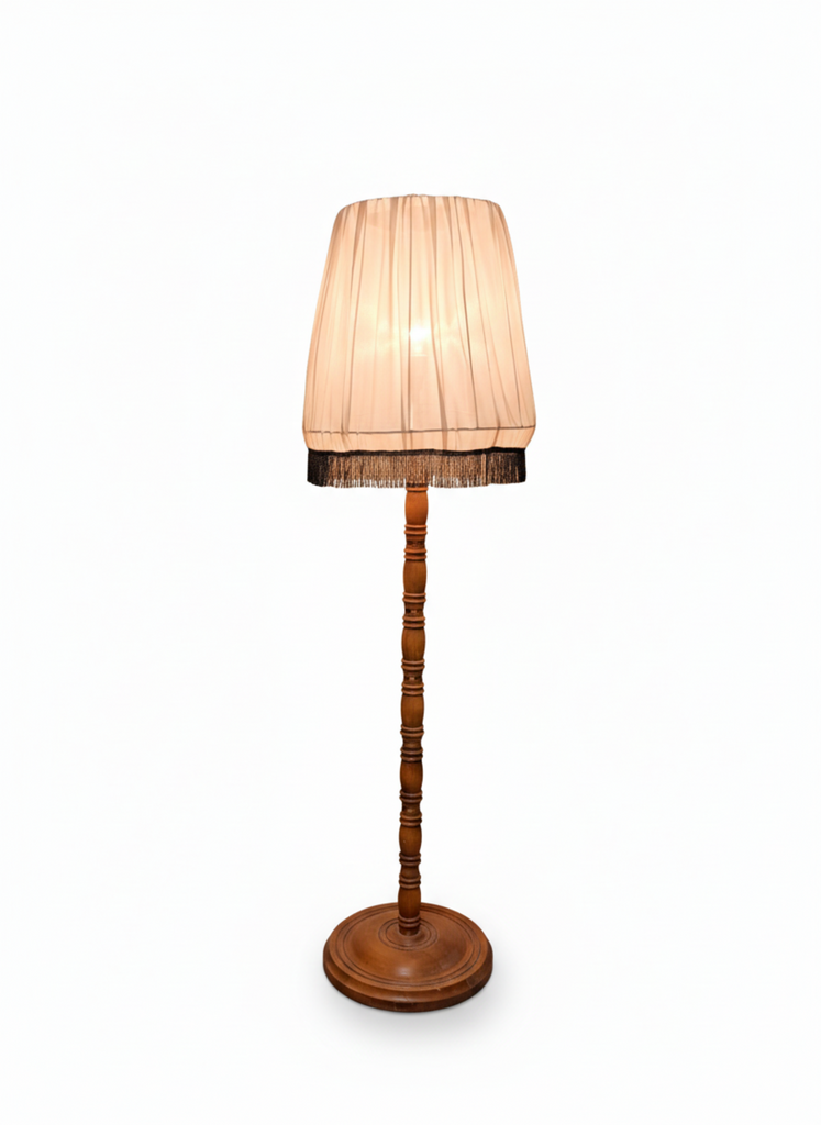 Vintage Wooden Floor Lamp with Pleated Shade, 1970s