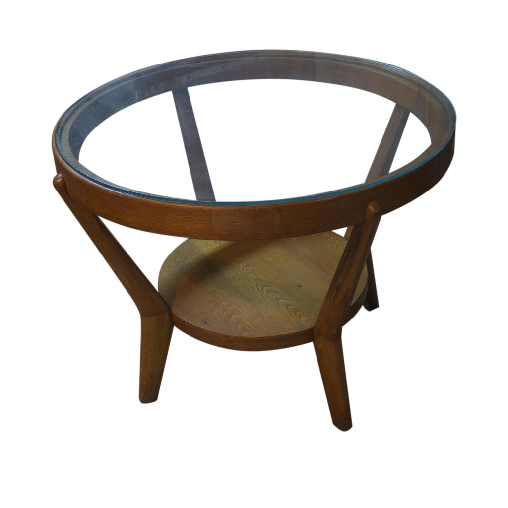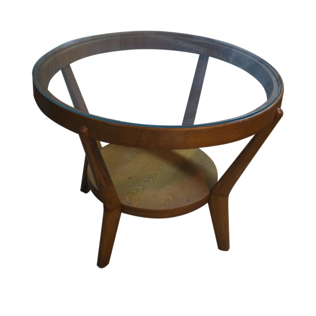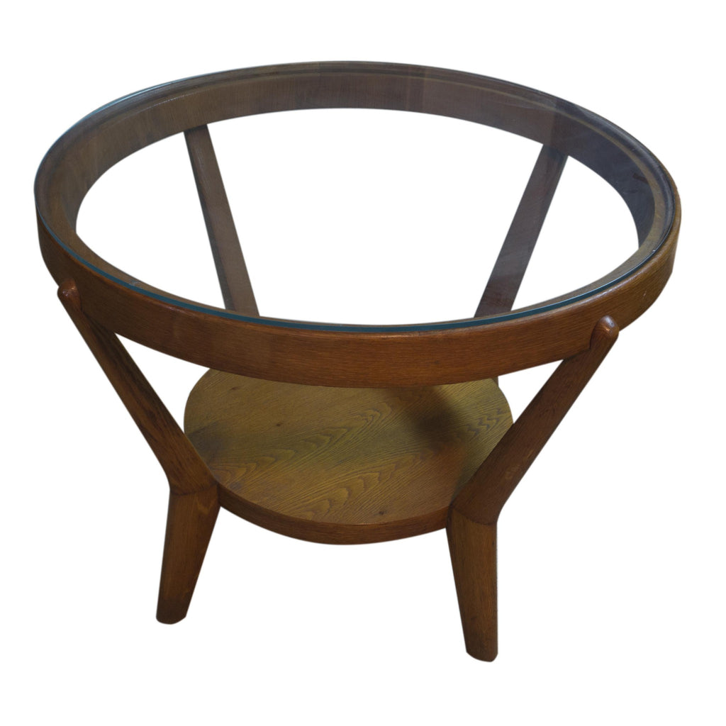 Glazed round table designed by famous architects Kropacek & Kozelka in 1944. Czechoslovakia. It can use as a coffee or side table. Good condition. Solid oak. Light colour. In excellent Vintage condition.