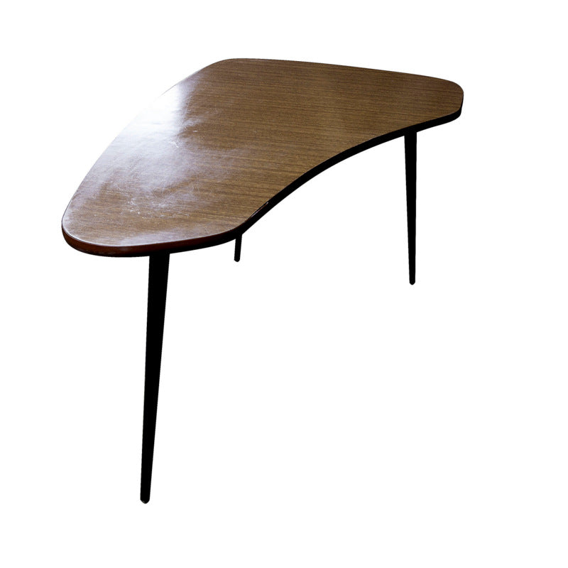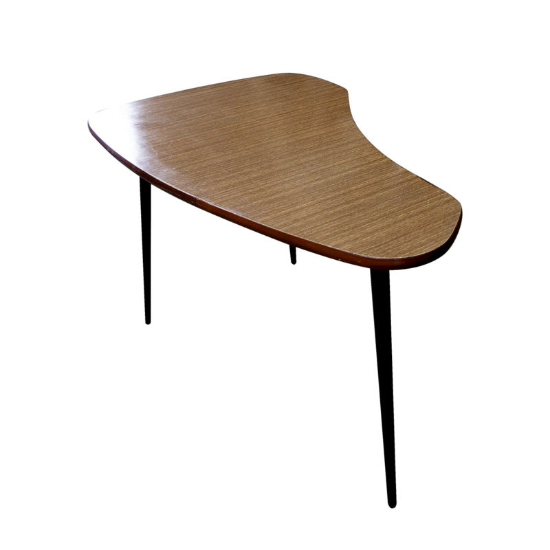 mid century kidney table, formica surface, legs- stained lacquered beech wood, Associated with world-renowned exhibition EXPO 58 in Brussels. In good vintage condition.