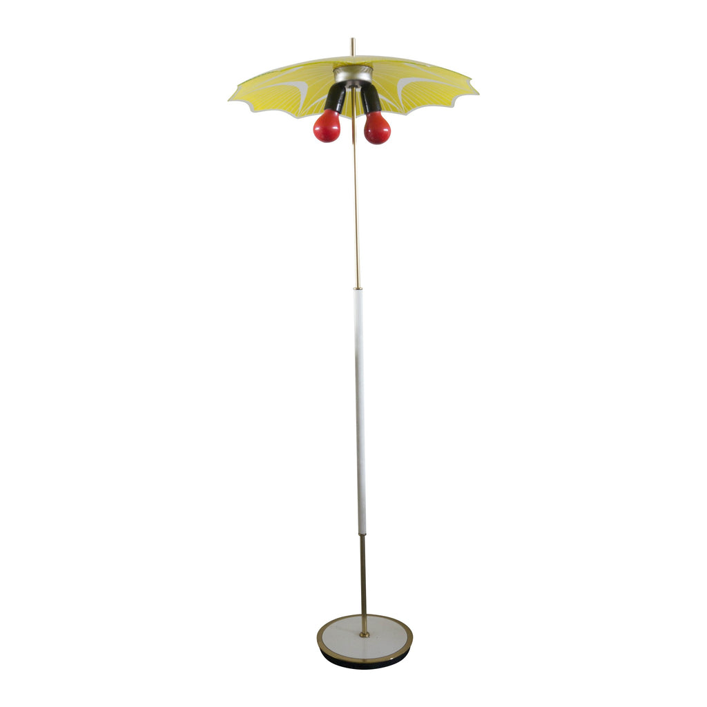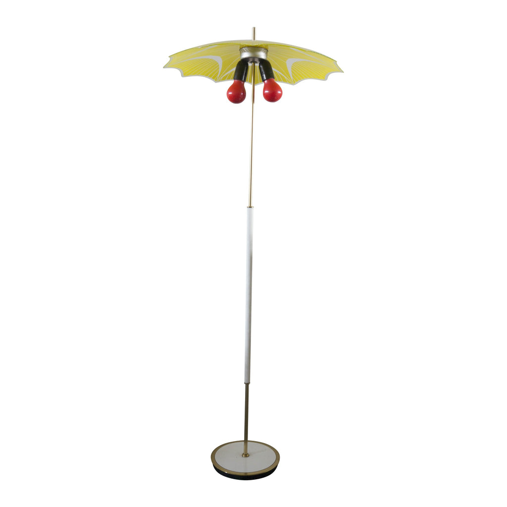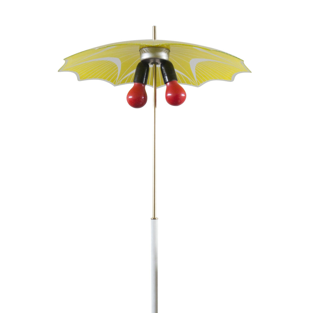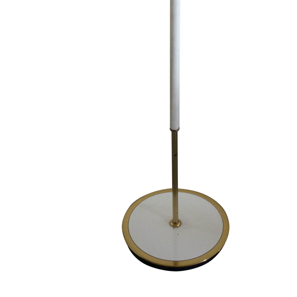Mid century standing lamp associated with "Brussels period" and world-renowned EXPO58. Chrome plated construction, glass lampshade. In excellent condition.