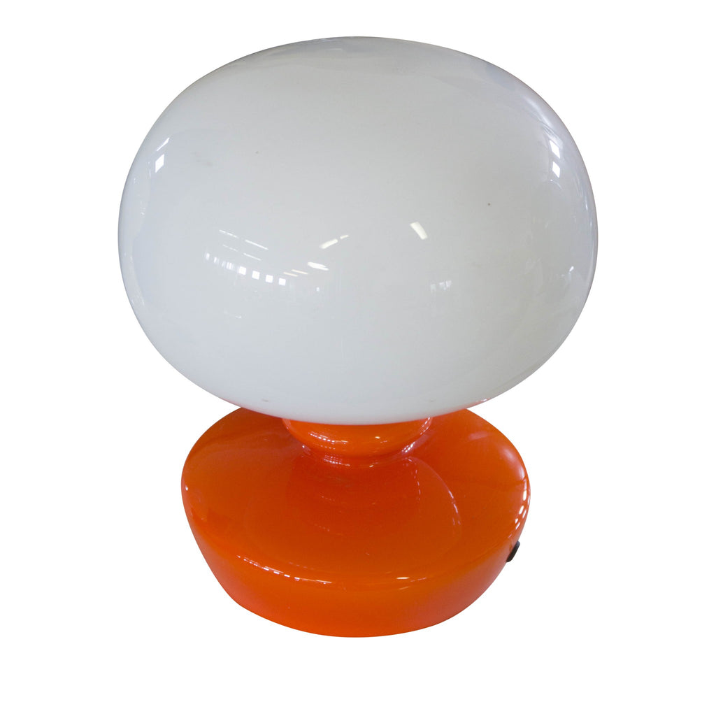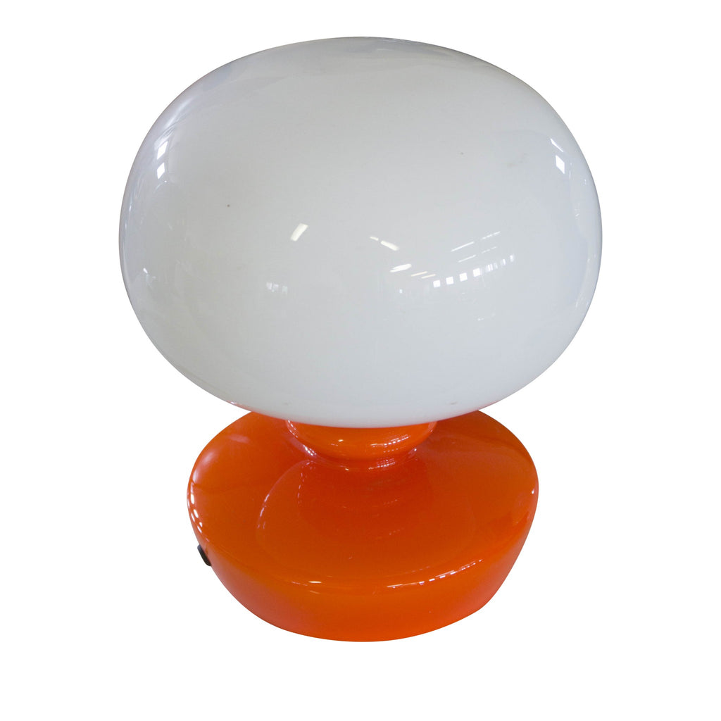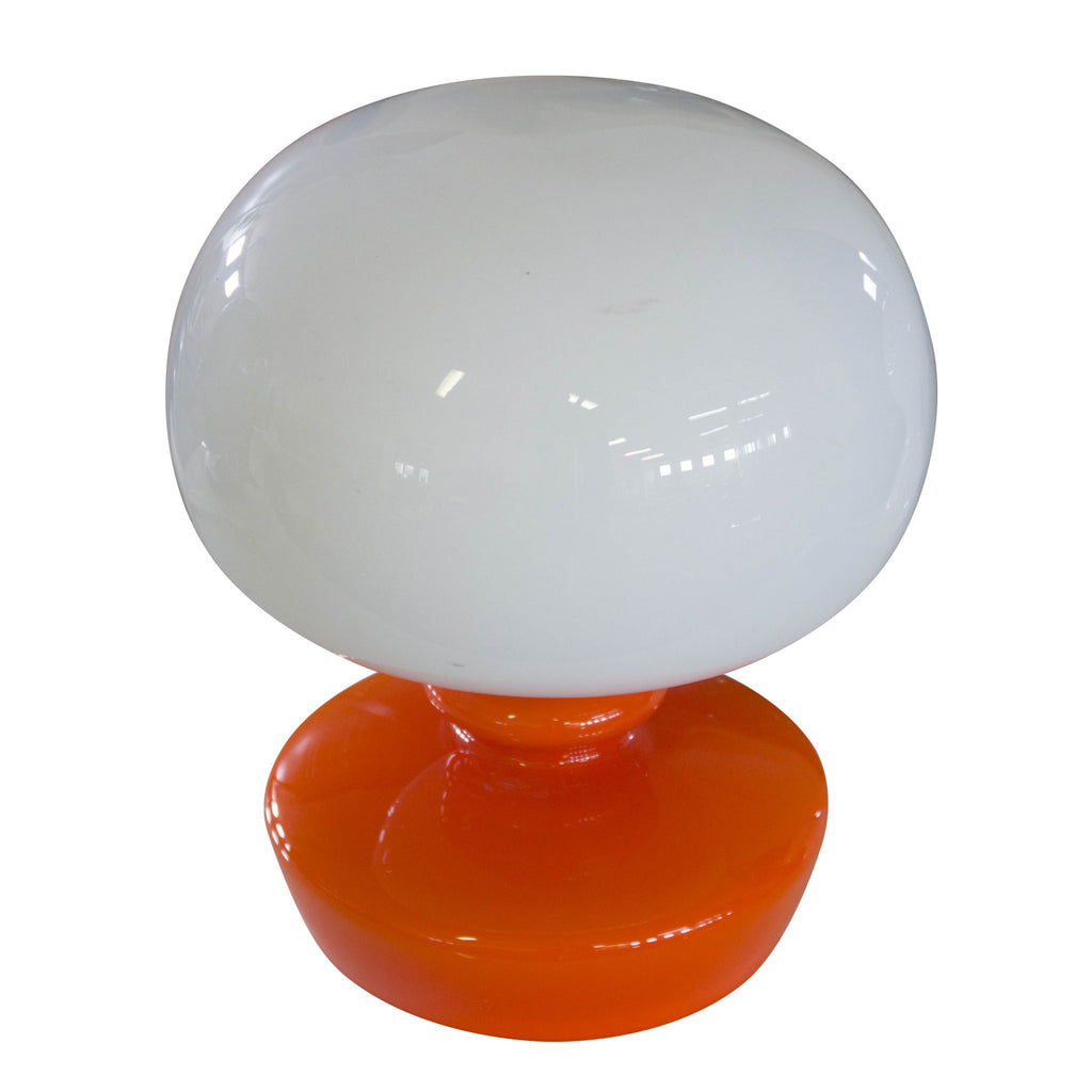 Mid century glass desk lamp associated with "Brussels period" and world-renowned EXPO58. Opal glass. In excellent condition.