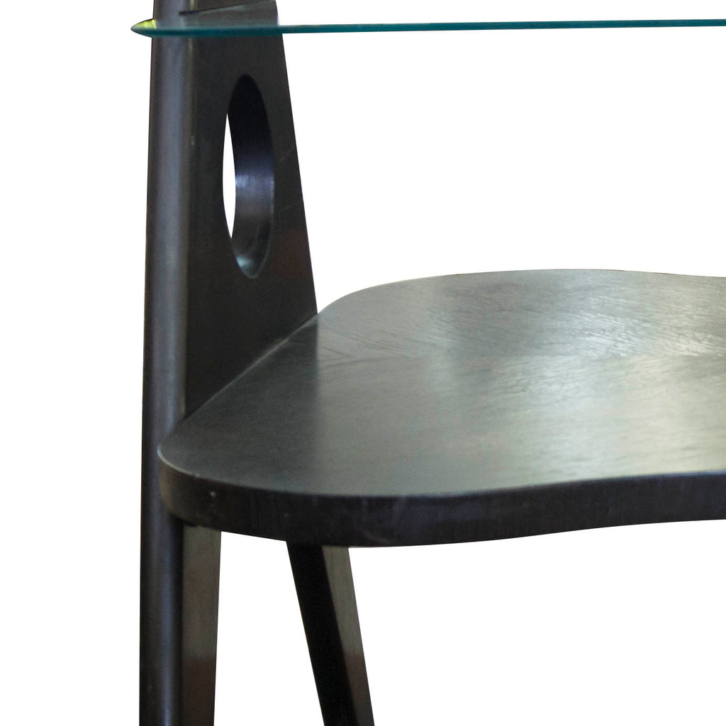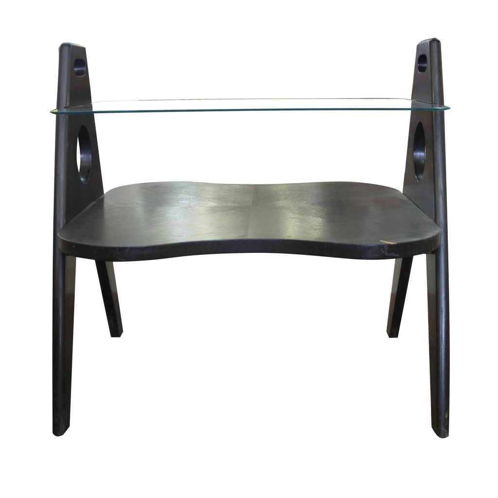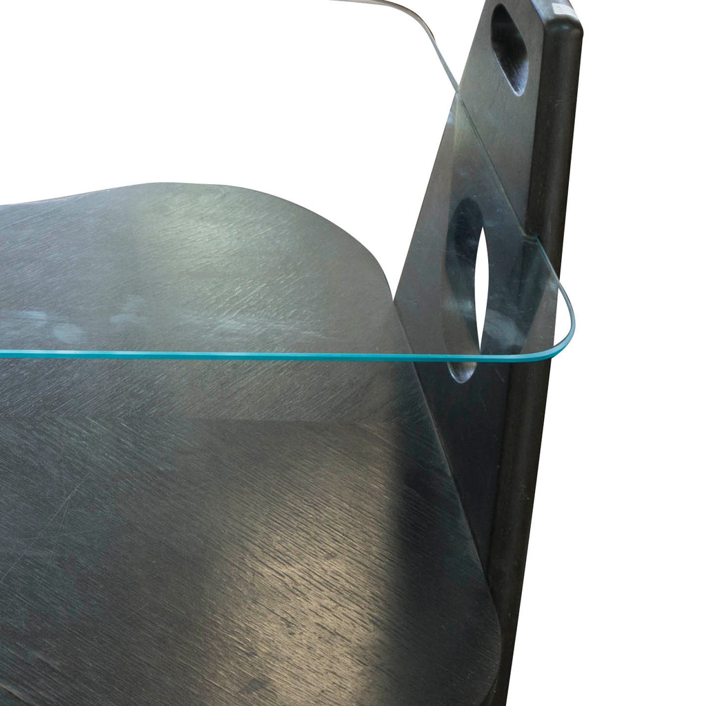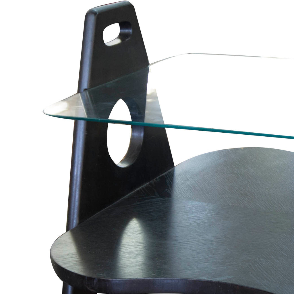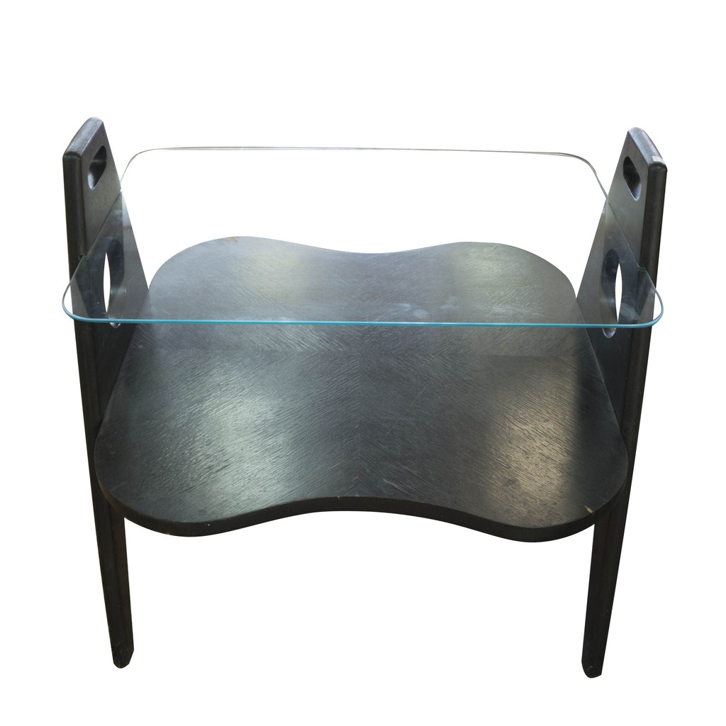Glazed coffee table, very intersting shaping, designed by uknown author, probably in Bohemia or Germany. It can use as a coffee or side table. Good condition. Solid oak. Dark colour. In good Vintage condition, just small crack of the veneer, look at the pictures, it will be repaired before the purchase.