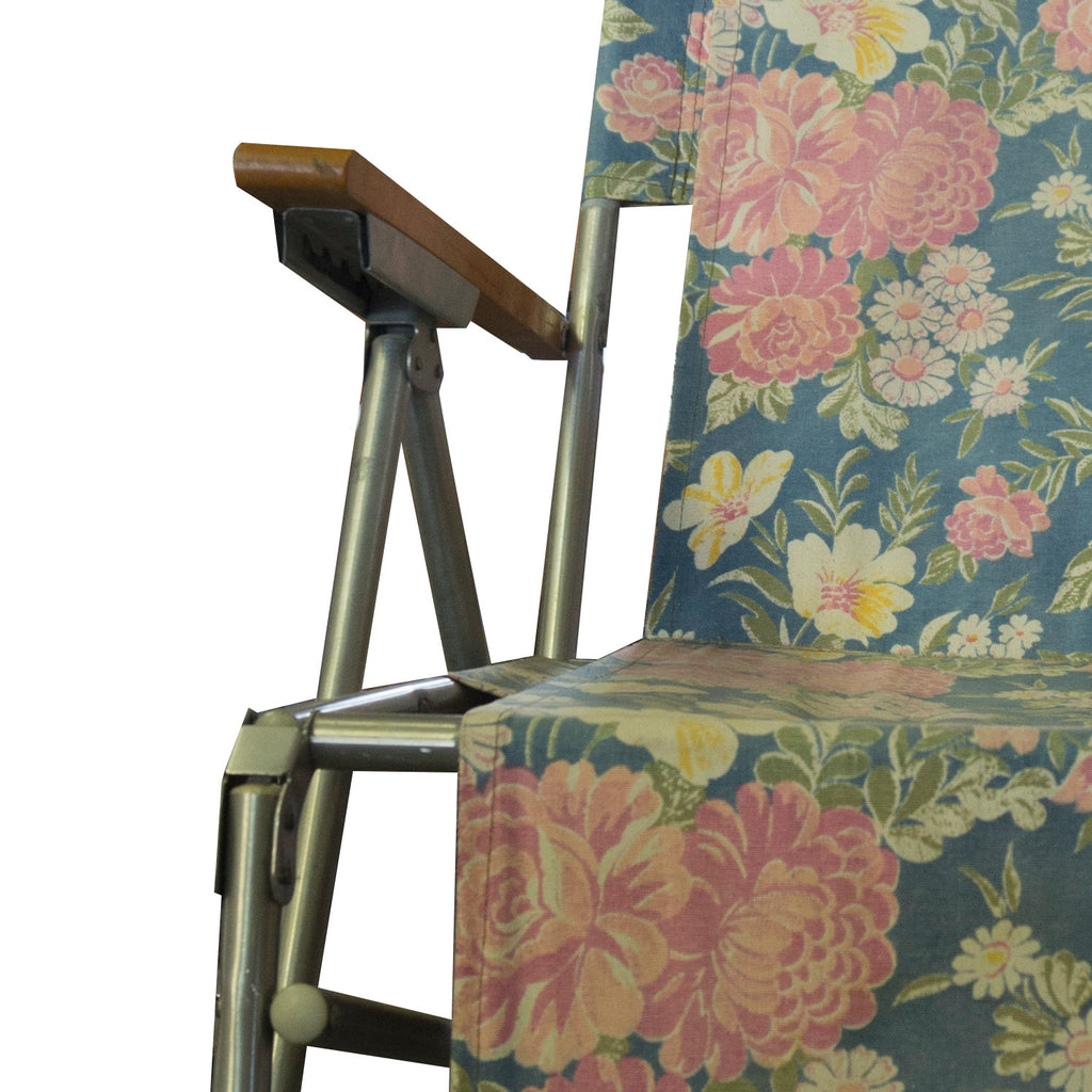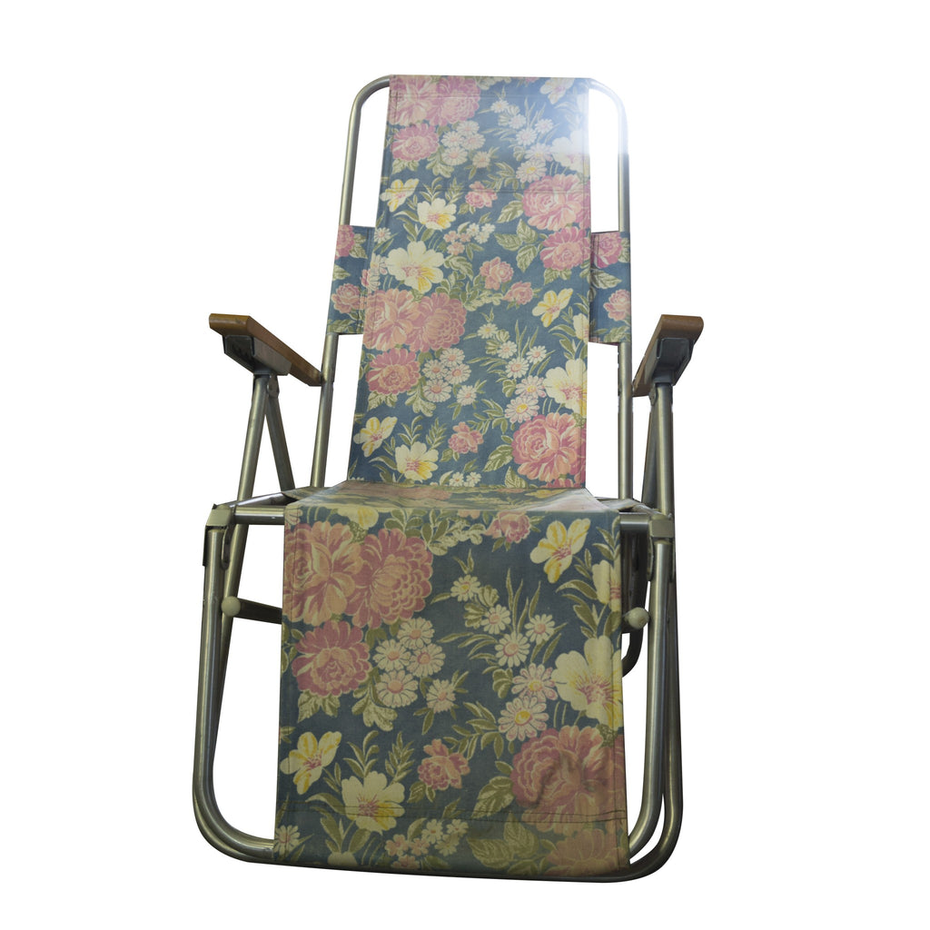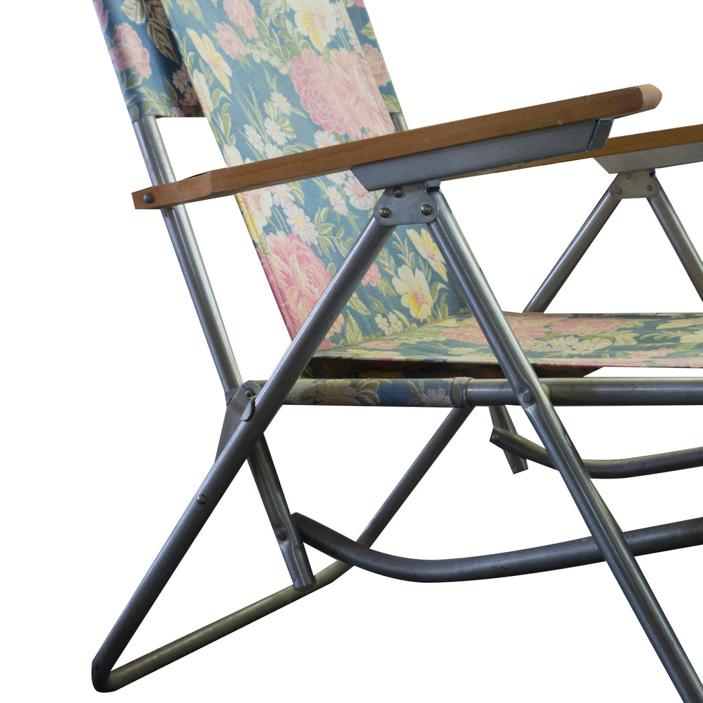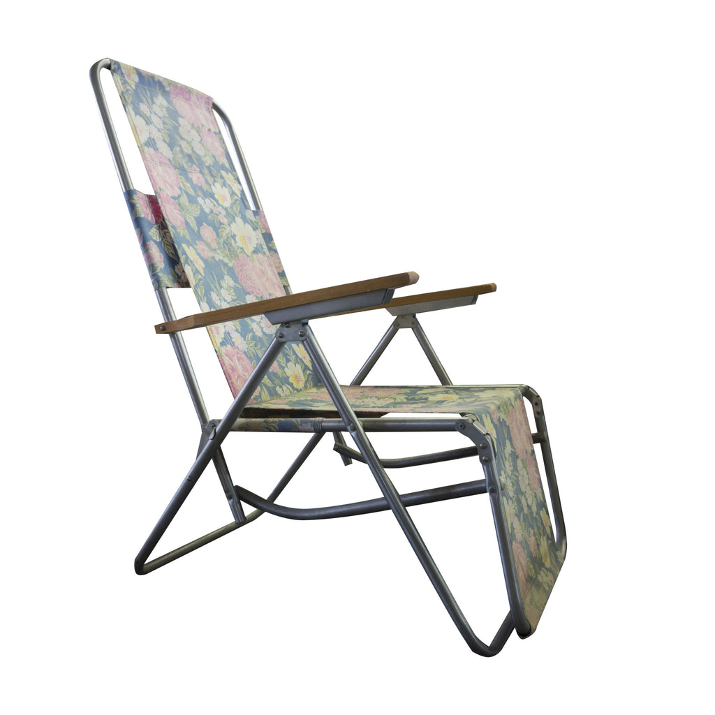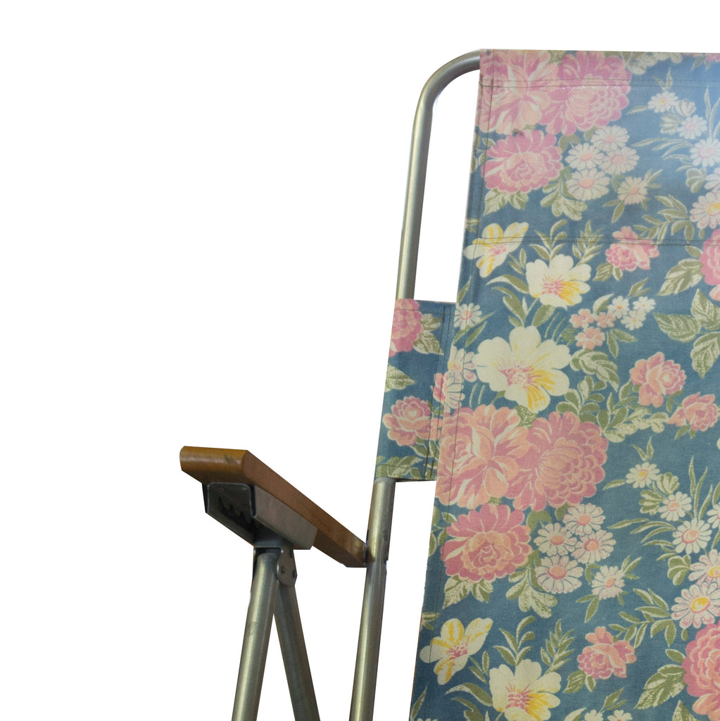 Mid century adjustable garden chairs, wooden armrests, in excellent condition. Floral motifs of fabric.