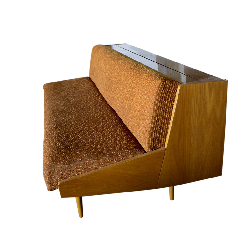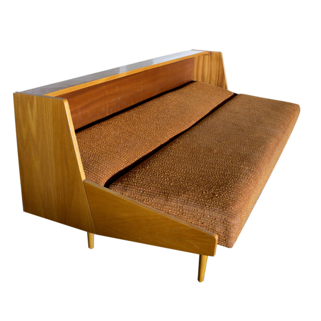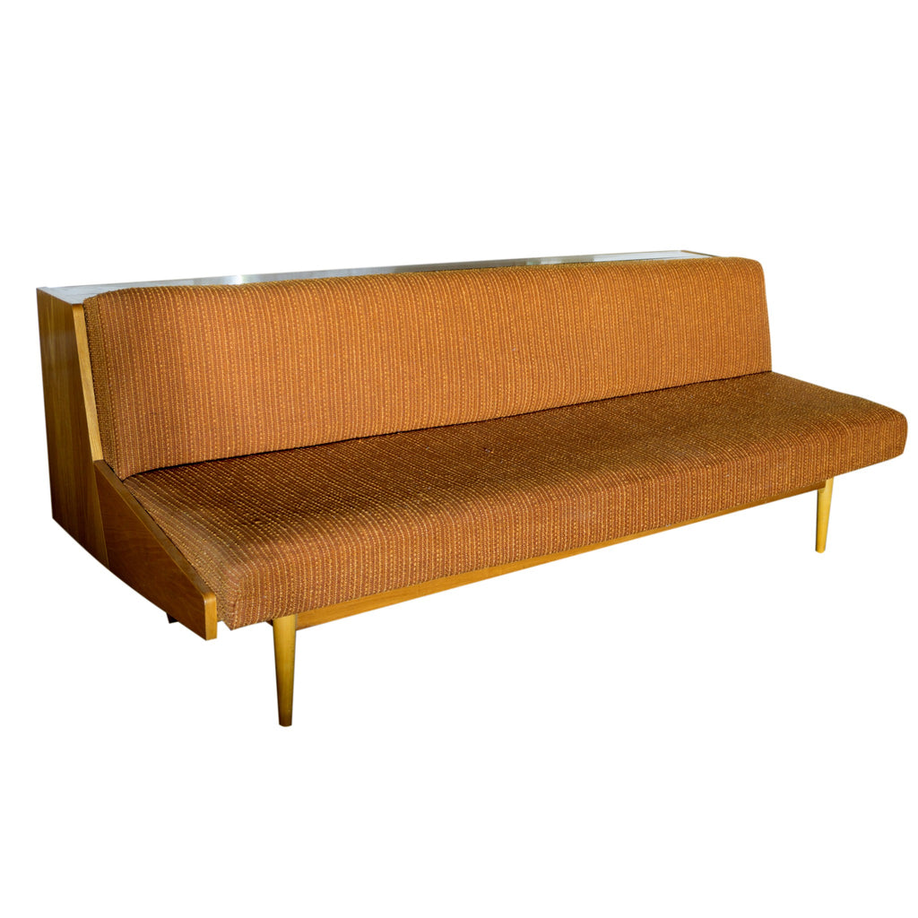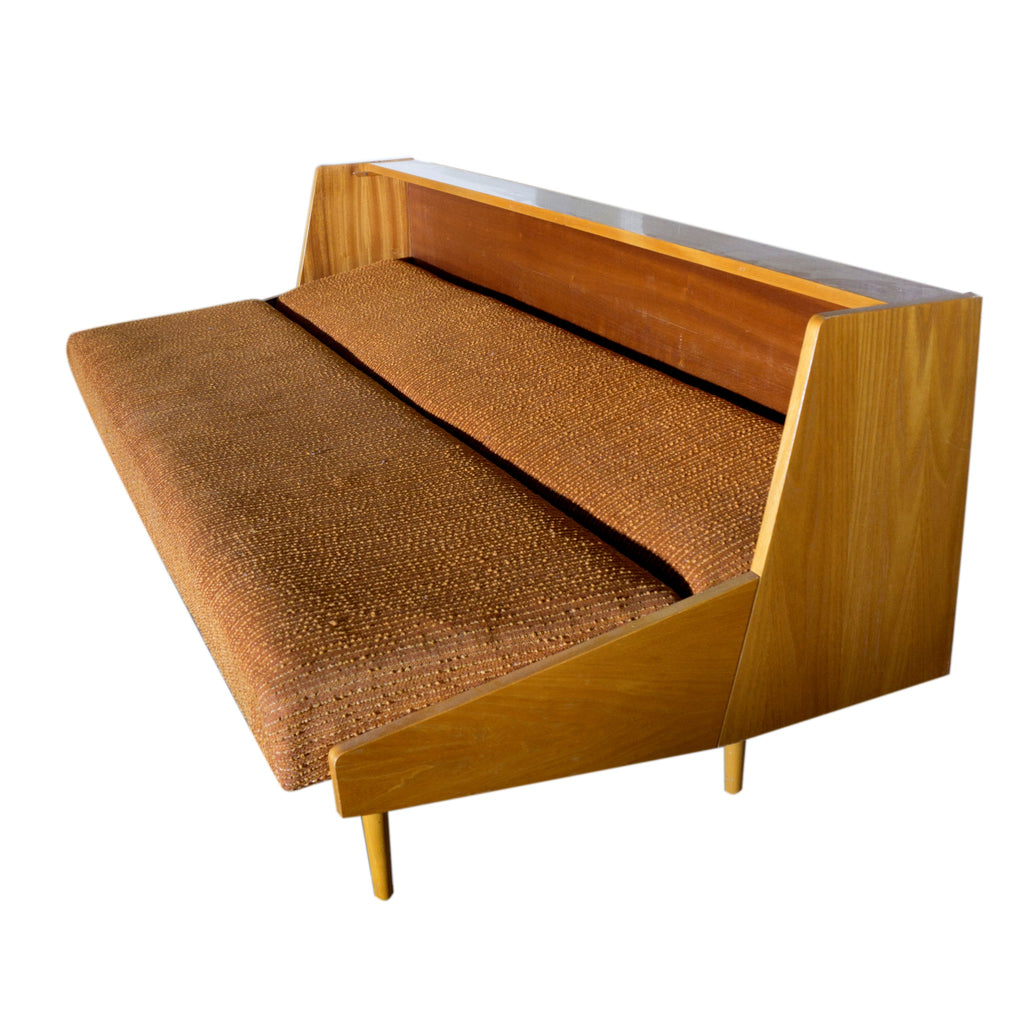 Sofa, typical for eastern bloc, Czechoslovakia, 1960´s, plywood. Very attractive and simple design. Generally in very good condition. Upholstery in original preserved condition without any damage.