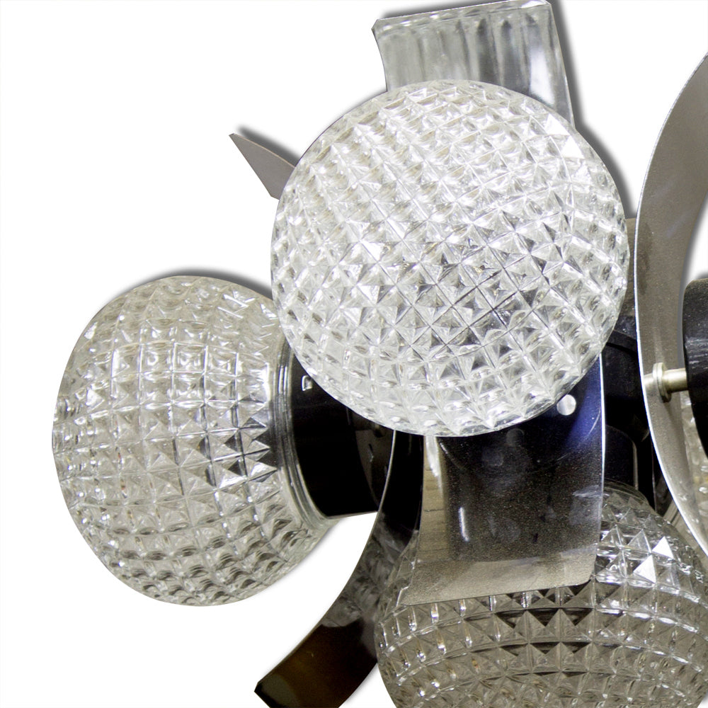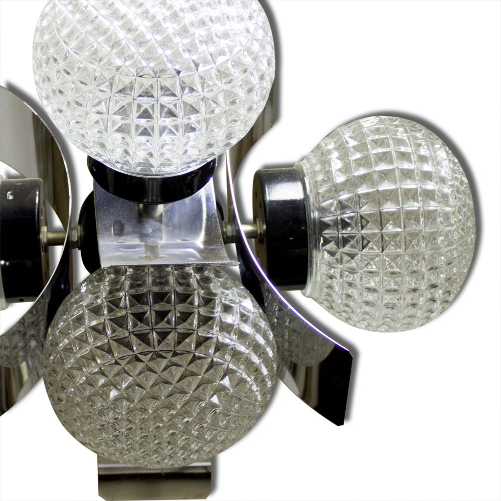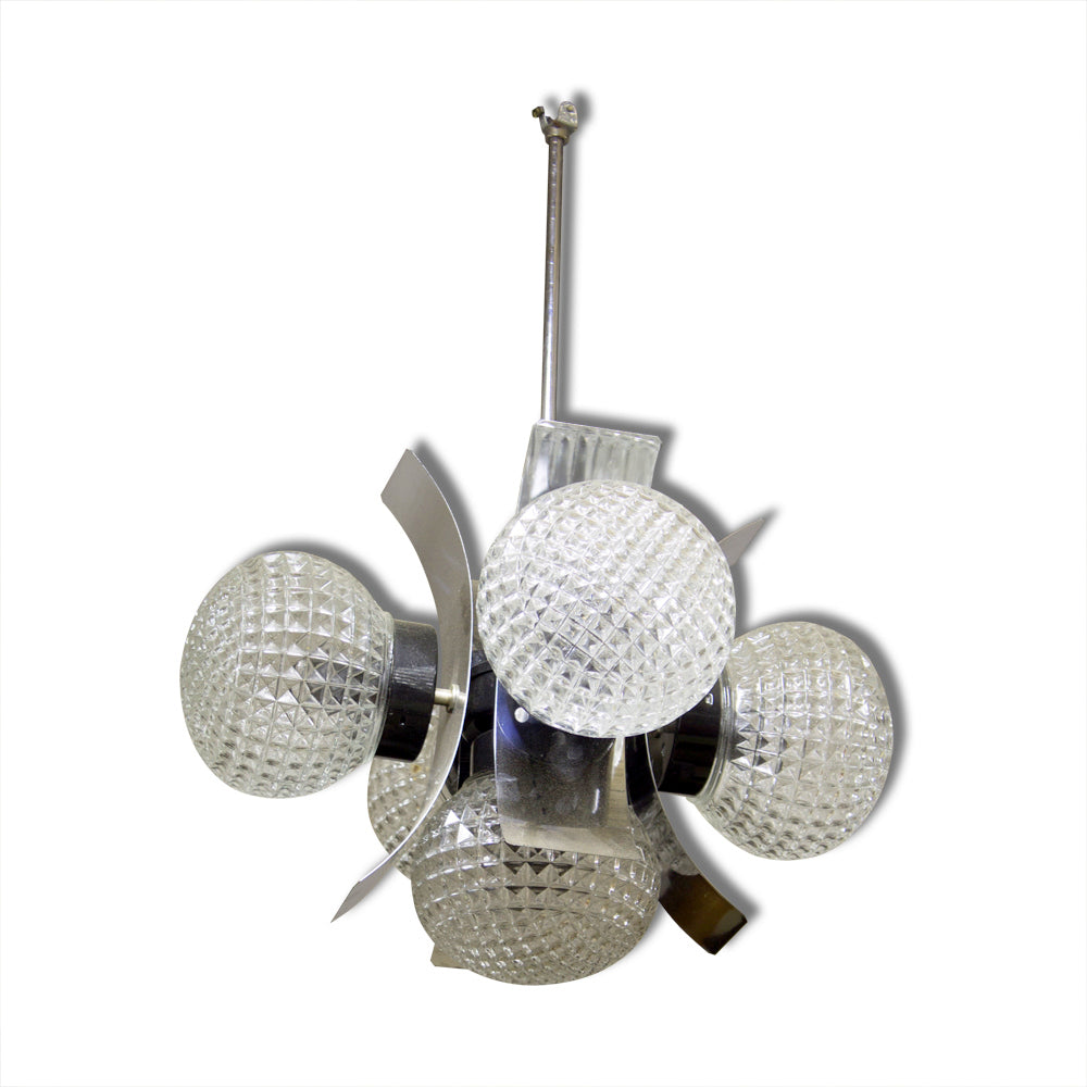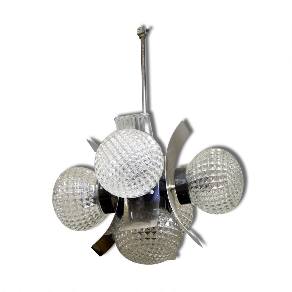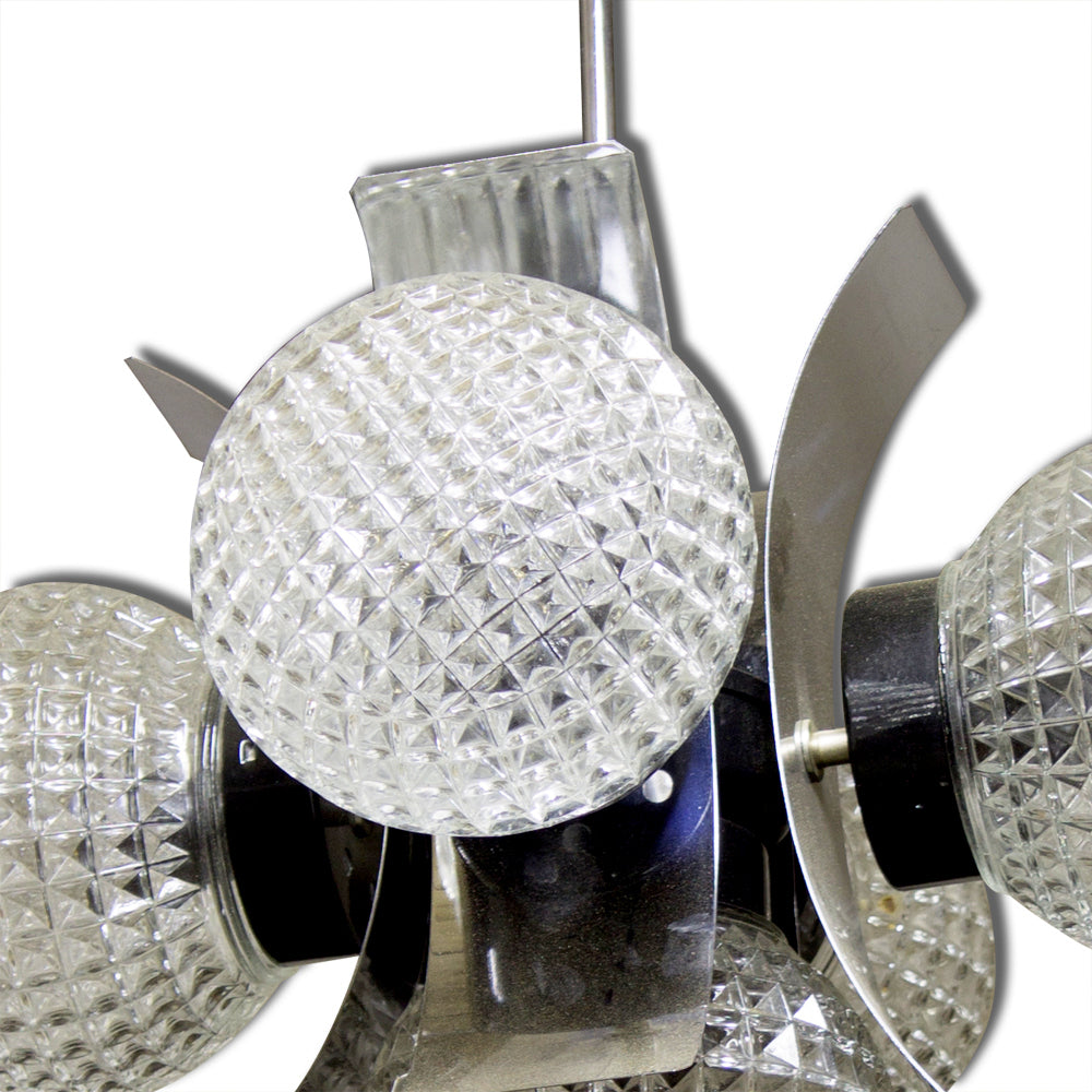 Mid century glass and chromed steel pendant lamp, Czechoslovakia