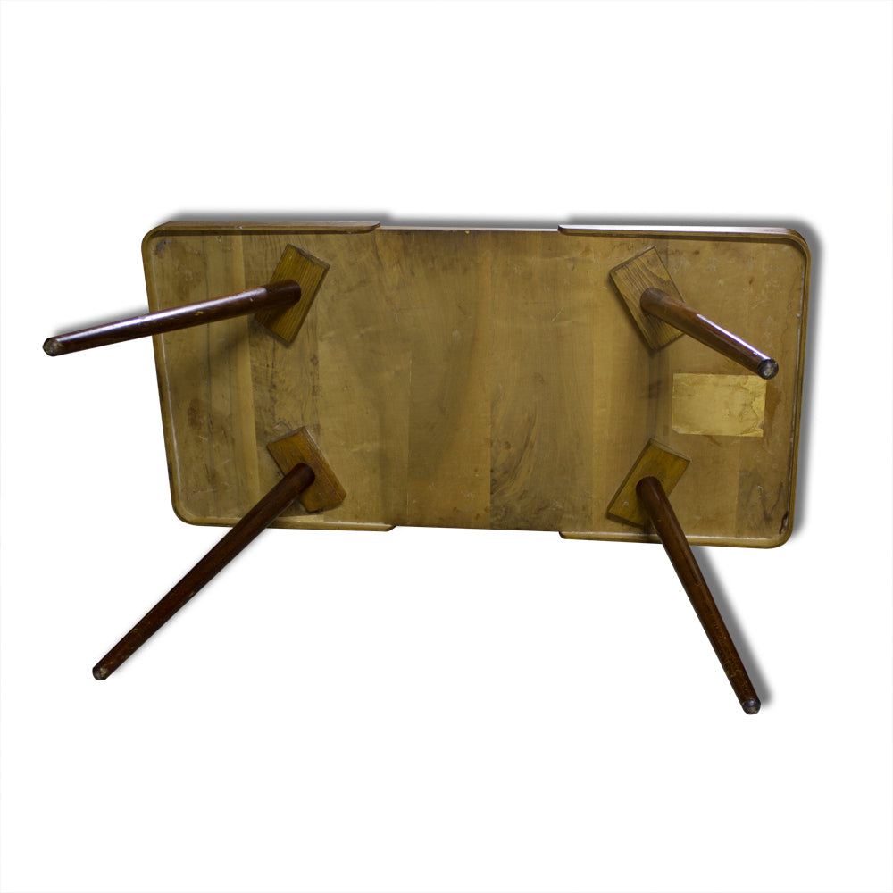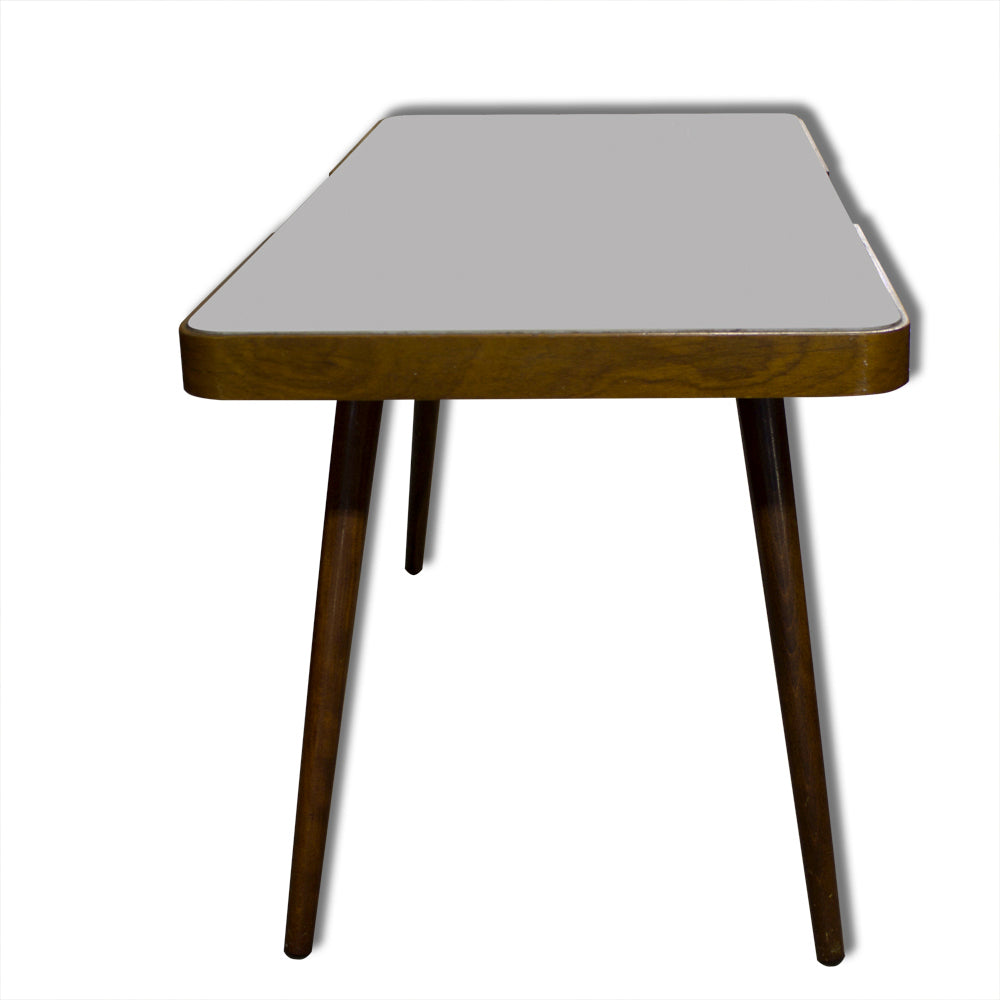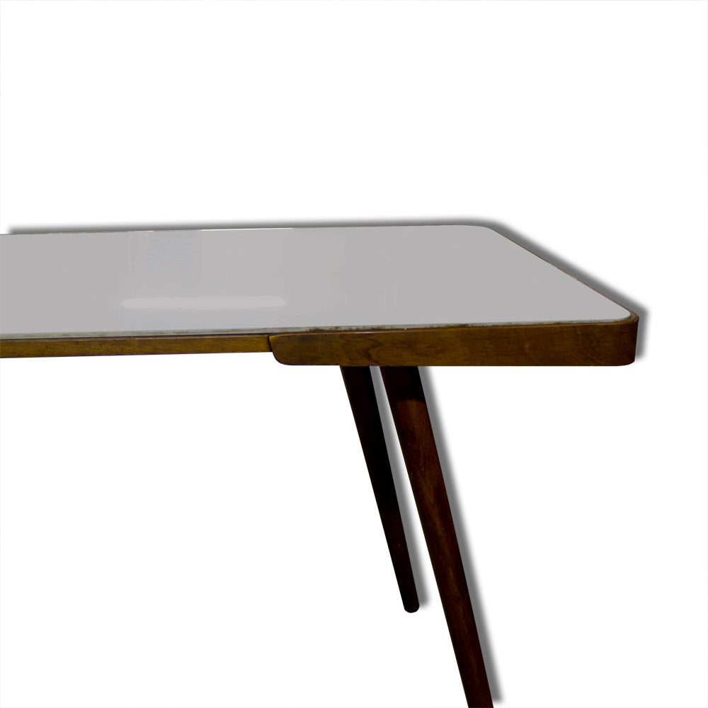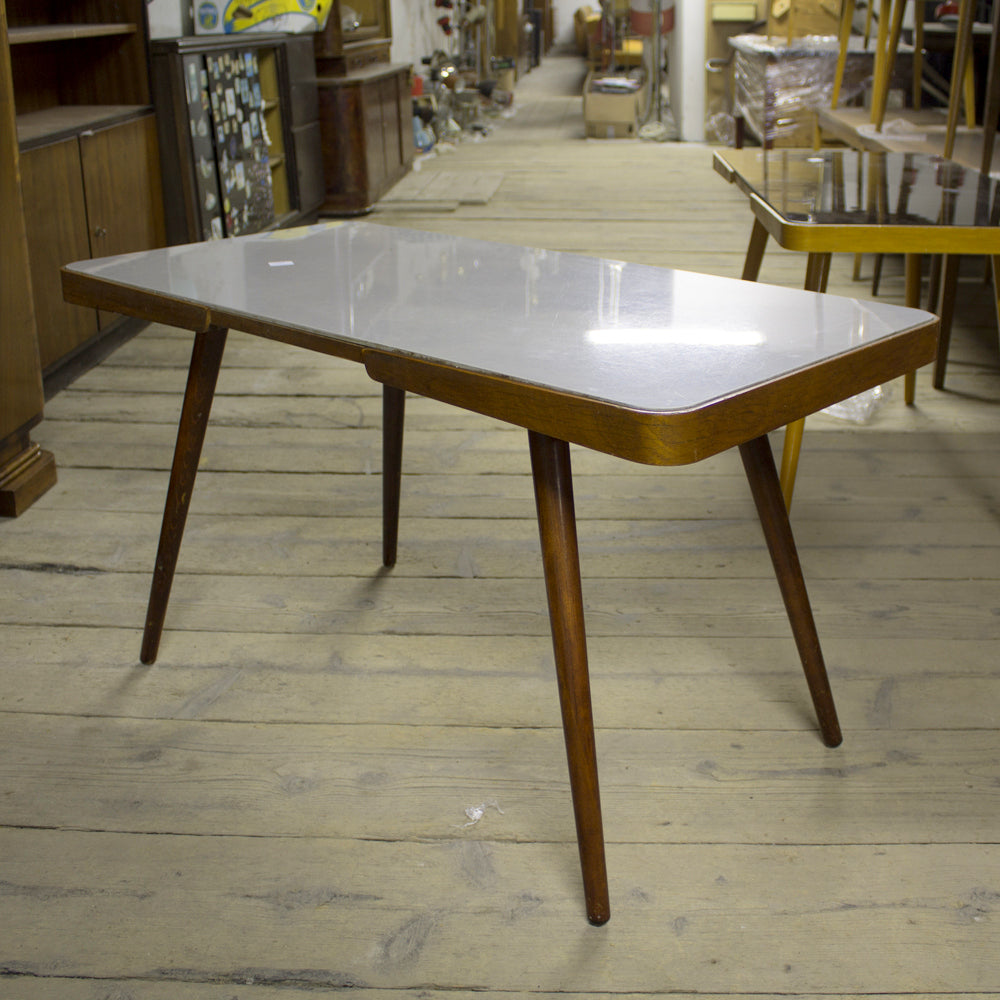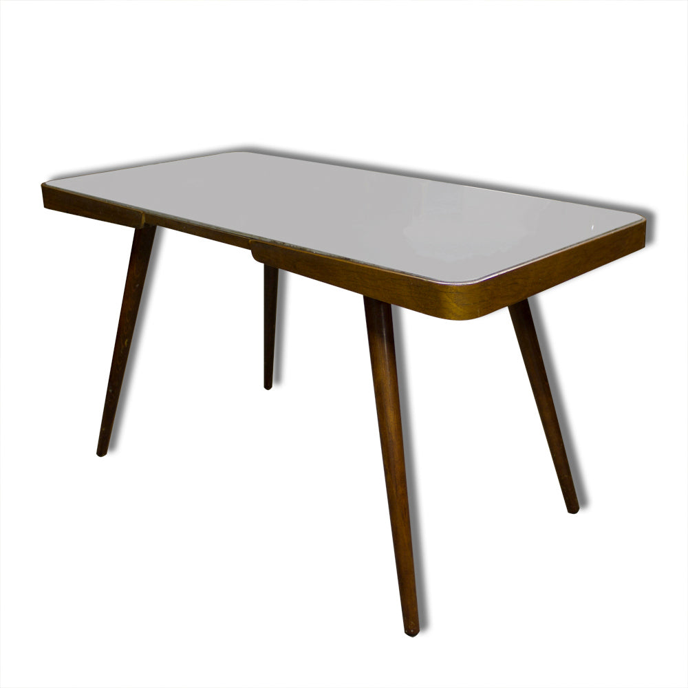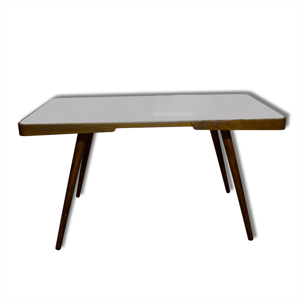 Mid century coffee table, glass table top in grayish color, 1960´s. Associated with world-renowned exhibition EXPO 58 in Brussels. A design by uknown author. Beechwood In good Vintage condition.