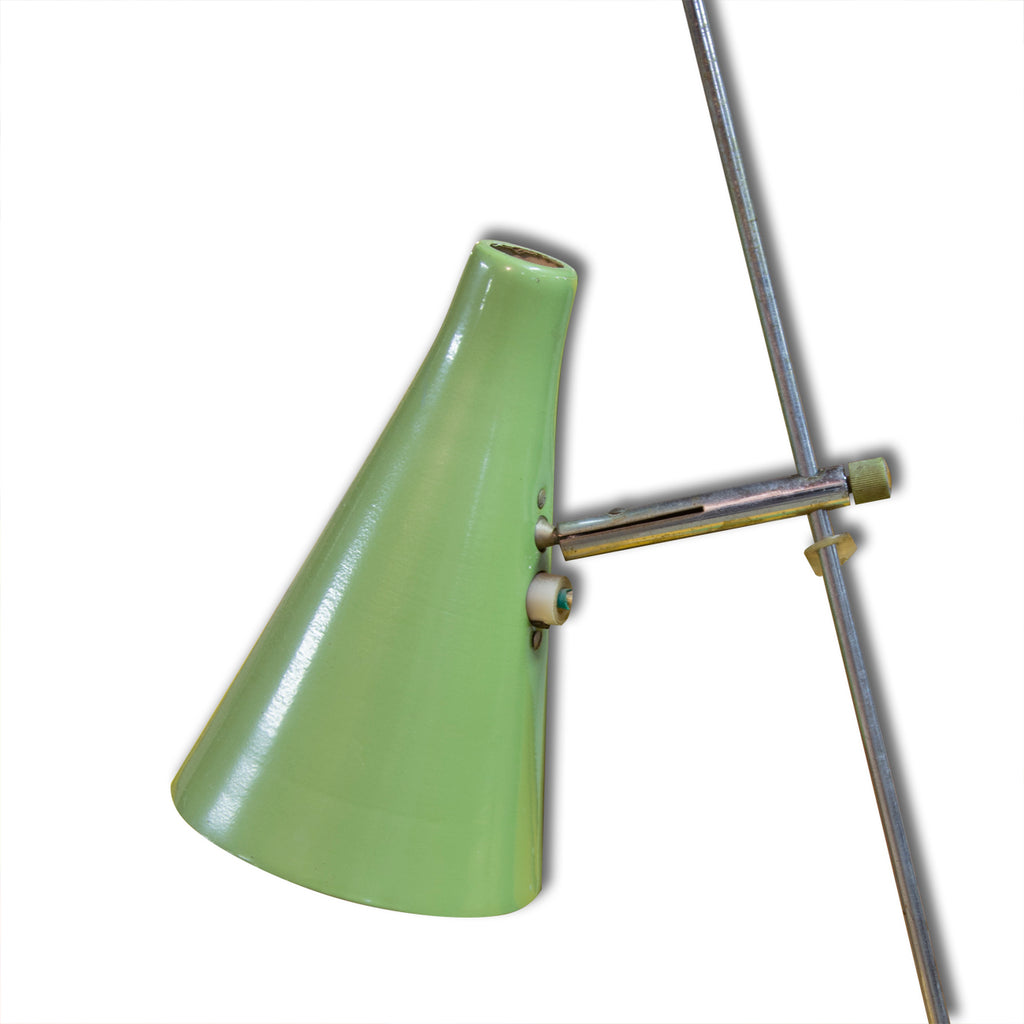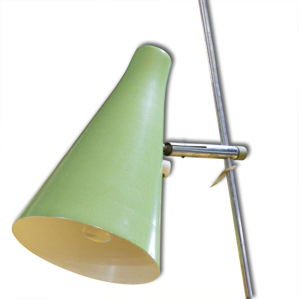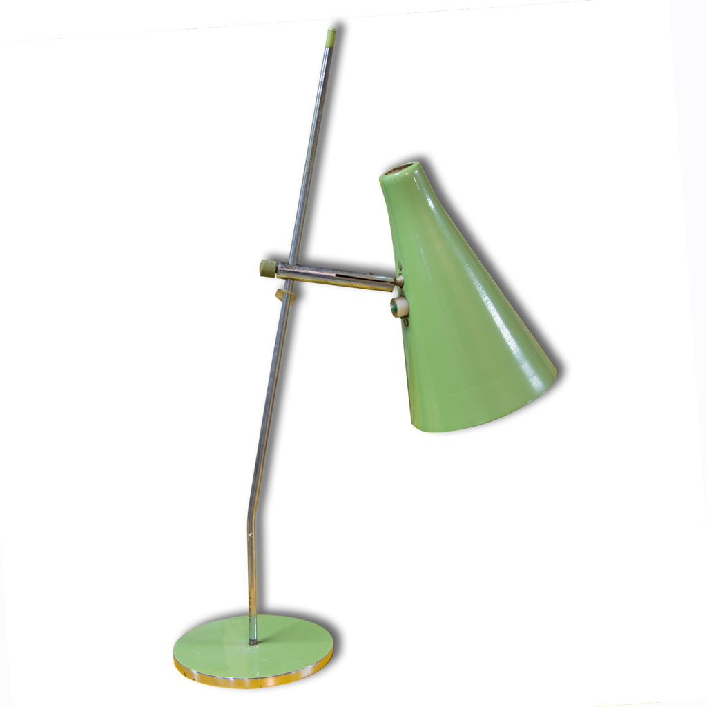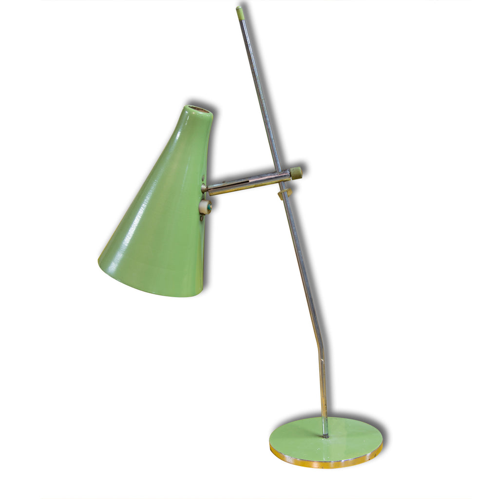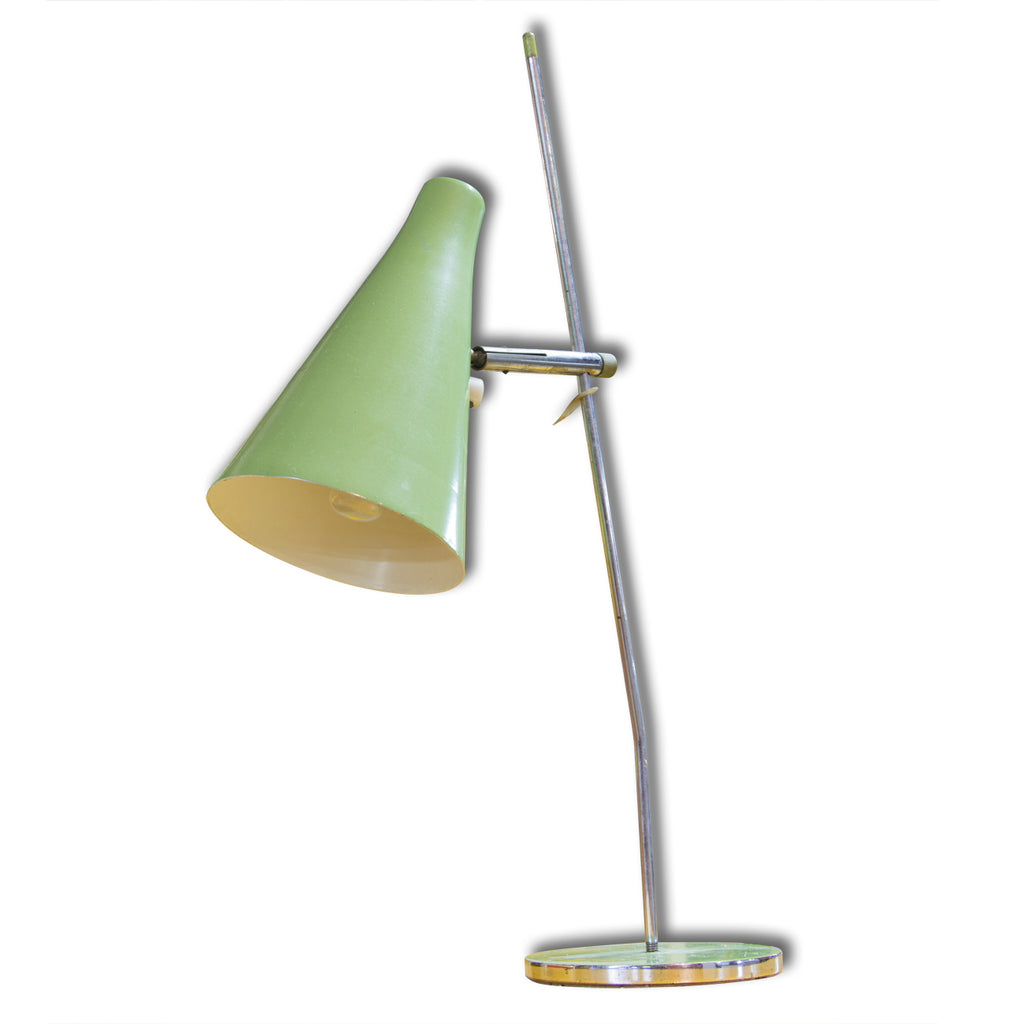 Mid century desk lamp designed by Josef Hurka for Lidokov, associated with "Brussels period" and world-renowned EXPO58. Chrome plated construction, lampshade adjustable to the sides and up and down. Lampshade material aluminum, plastic. In good Vintage condition, original wiring.