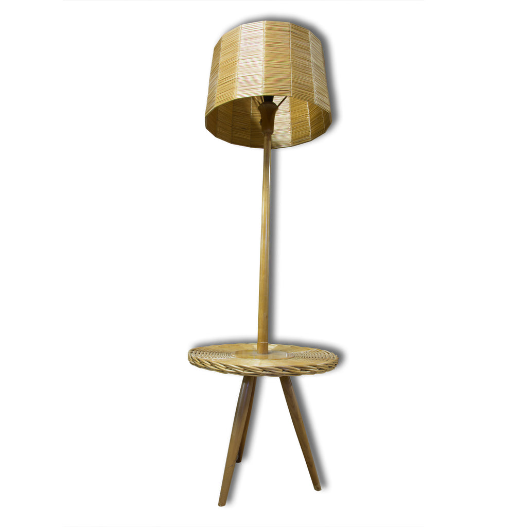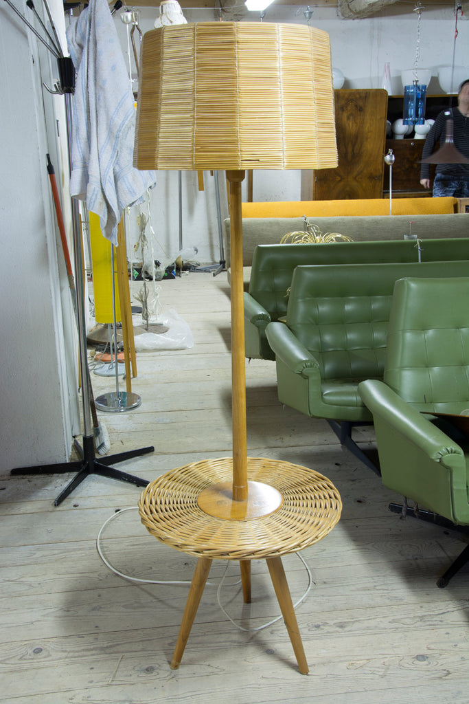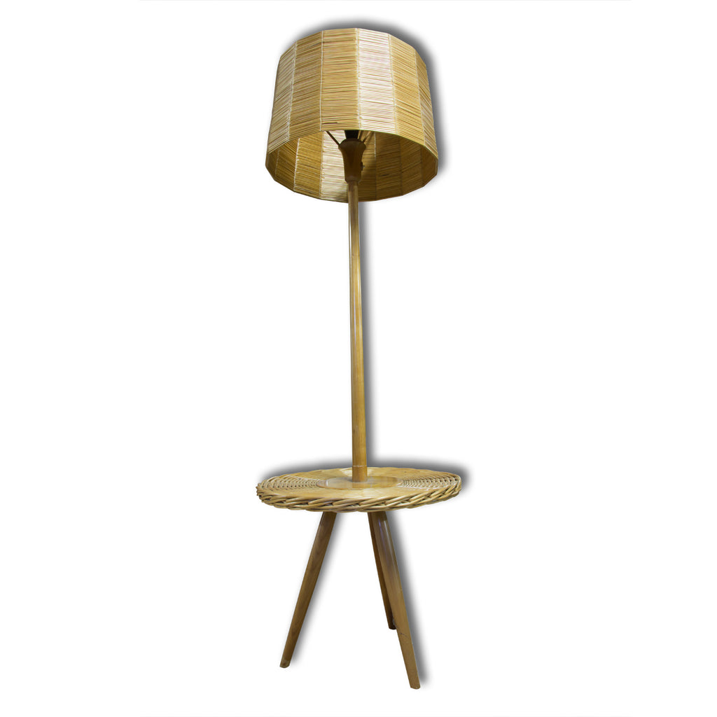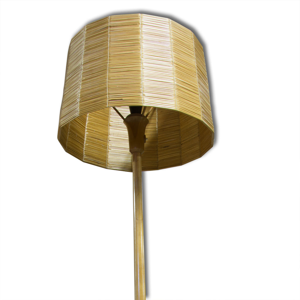 Mid century rattan floor lamp by Jan Kalous for éLUV, 1960s, Czechoslovakia