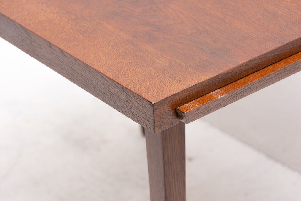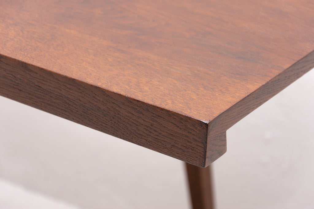 Beautiful inlay on top. Partially restored. Materials: beech wood, oak wood. Cool retro piece.