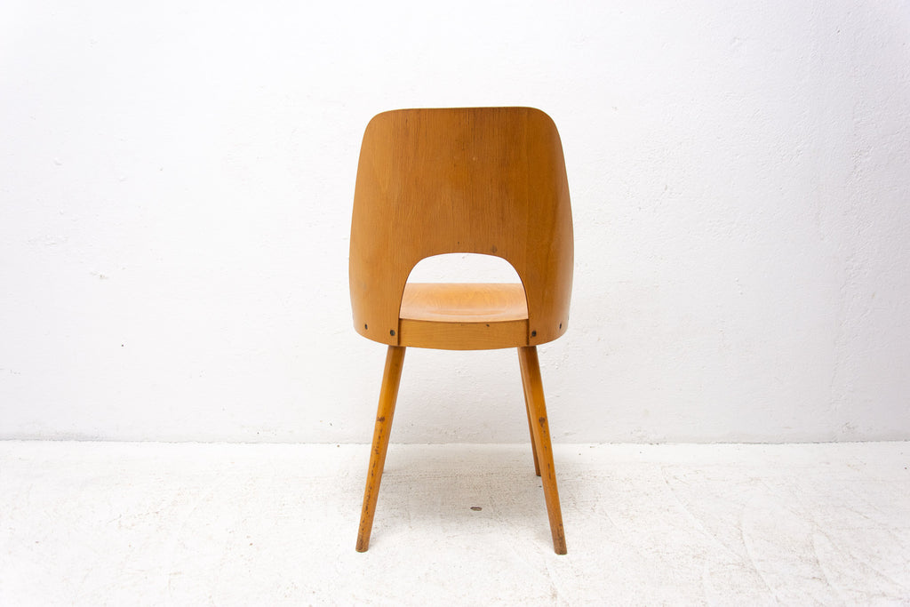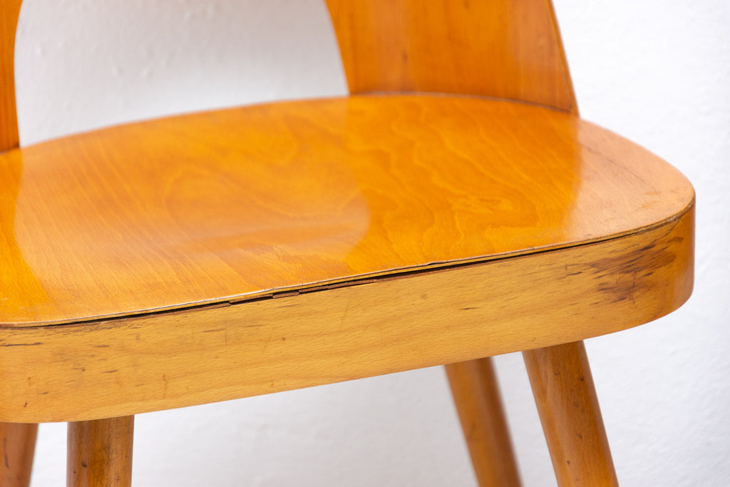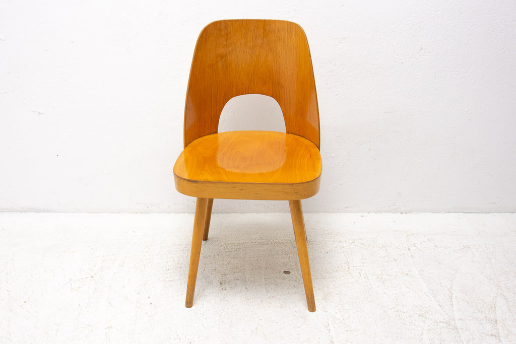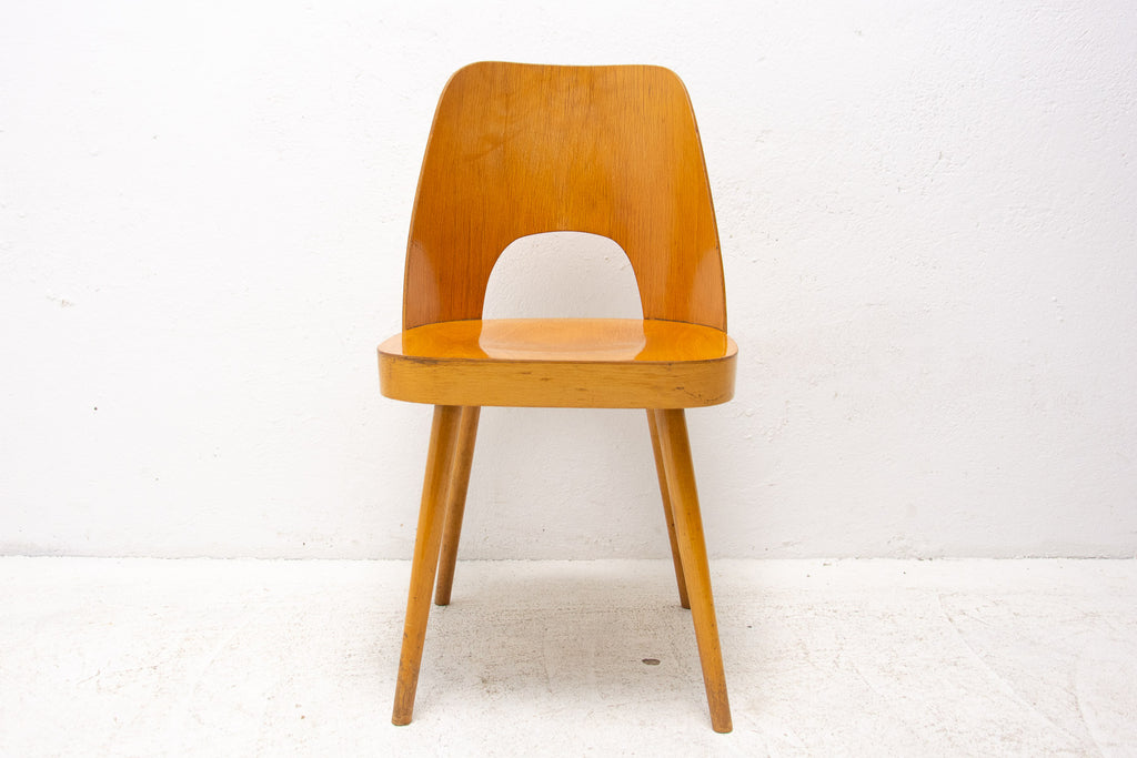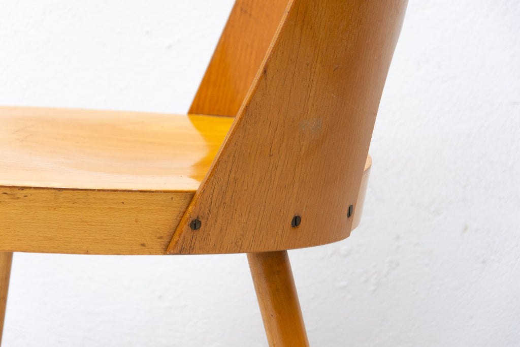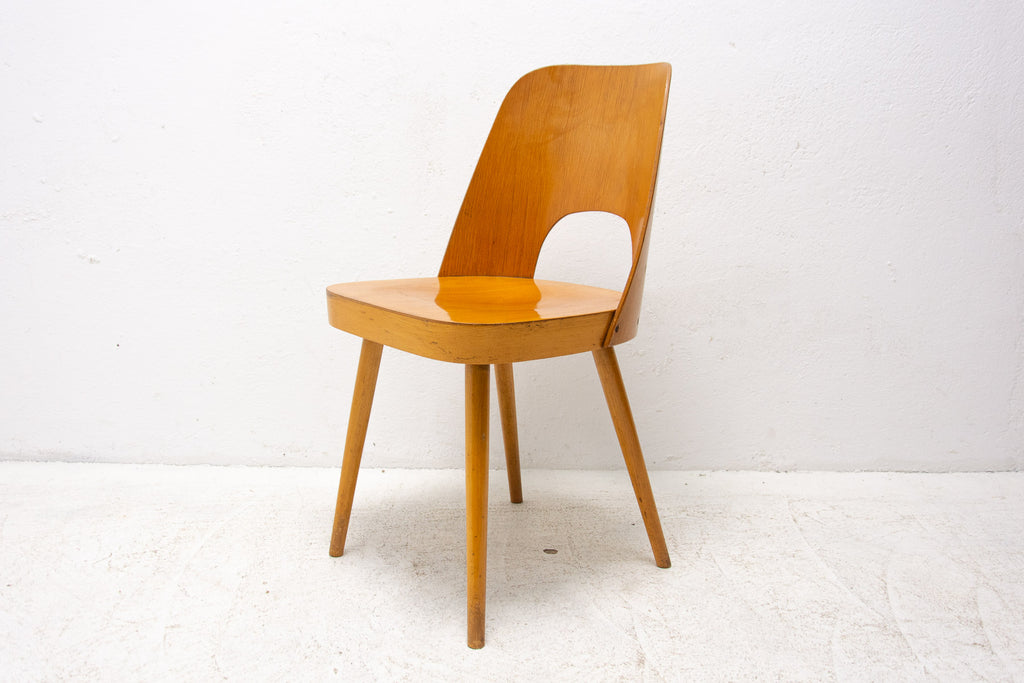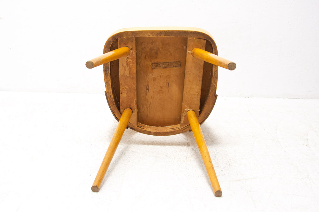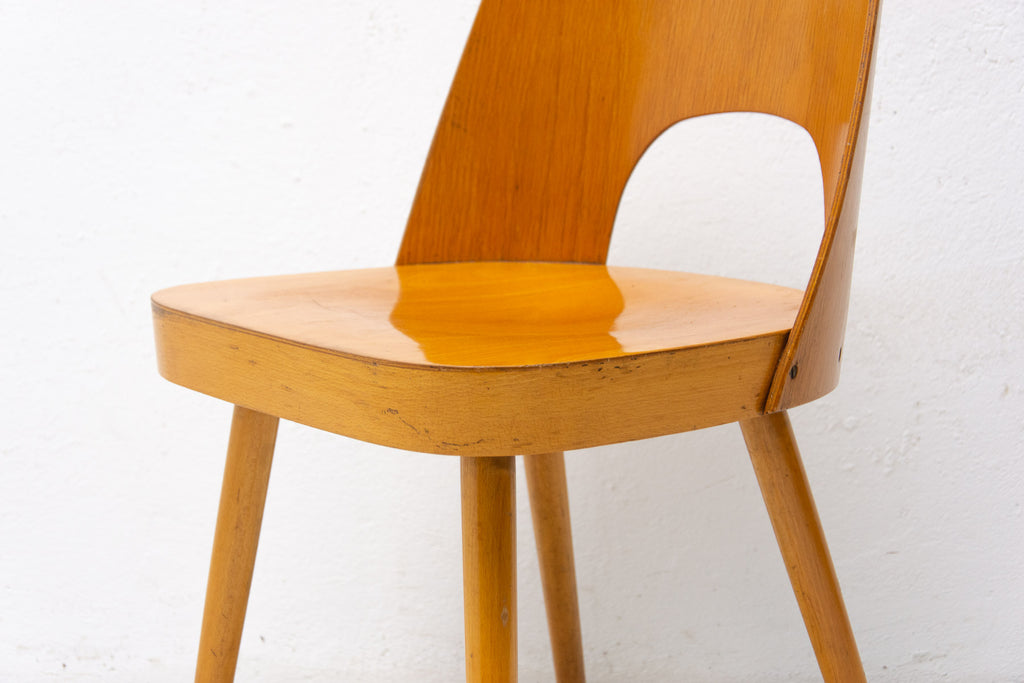 An interesting model of three mid century bentwood dining chairs designed by Radomír Hofman for TON Bystřice pod Hostýnem (Thonet successor in Czechoslovakia after World War 2) . They were made in the former Czechoslovakia in the 1960´s. The chairs are made of bent plywood, have beech wood structure.