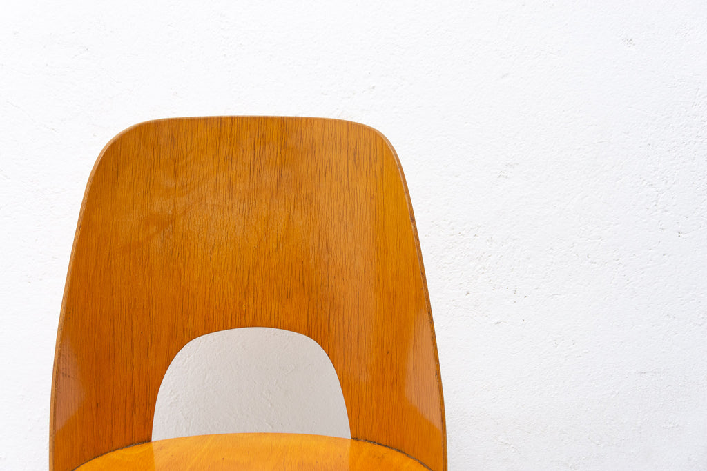 An interesting example of Czechoslovak design after the huge success of the Czechoslovak pavilion at Expo 58 in Brussels. The chairs are in good Vintage condition, shows slight signs of age and using. Price is for the set of 6.