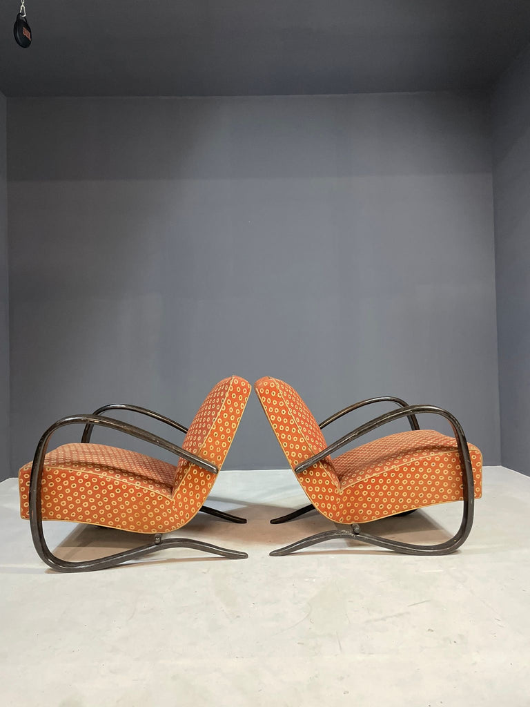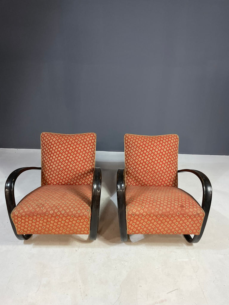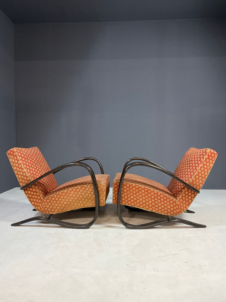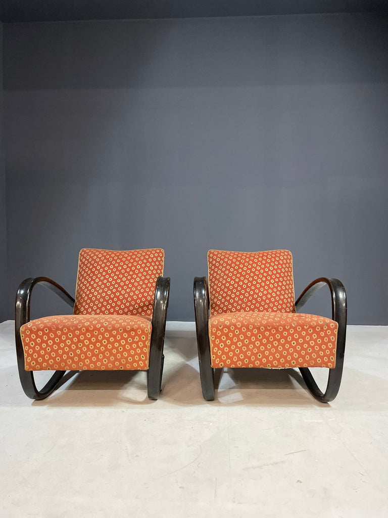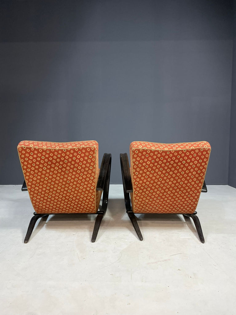 An iconic pair of H269 lounge chairs designed by renowned Czech designer Jindřich Halabala in the 1930s.