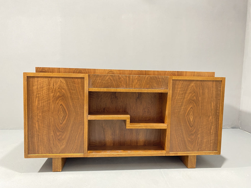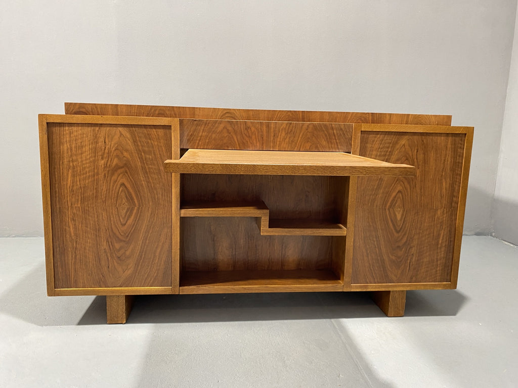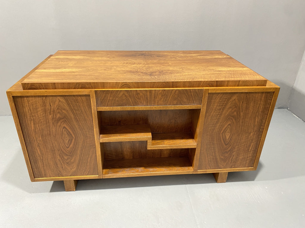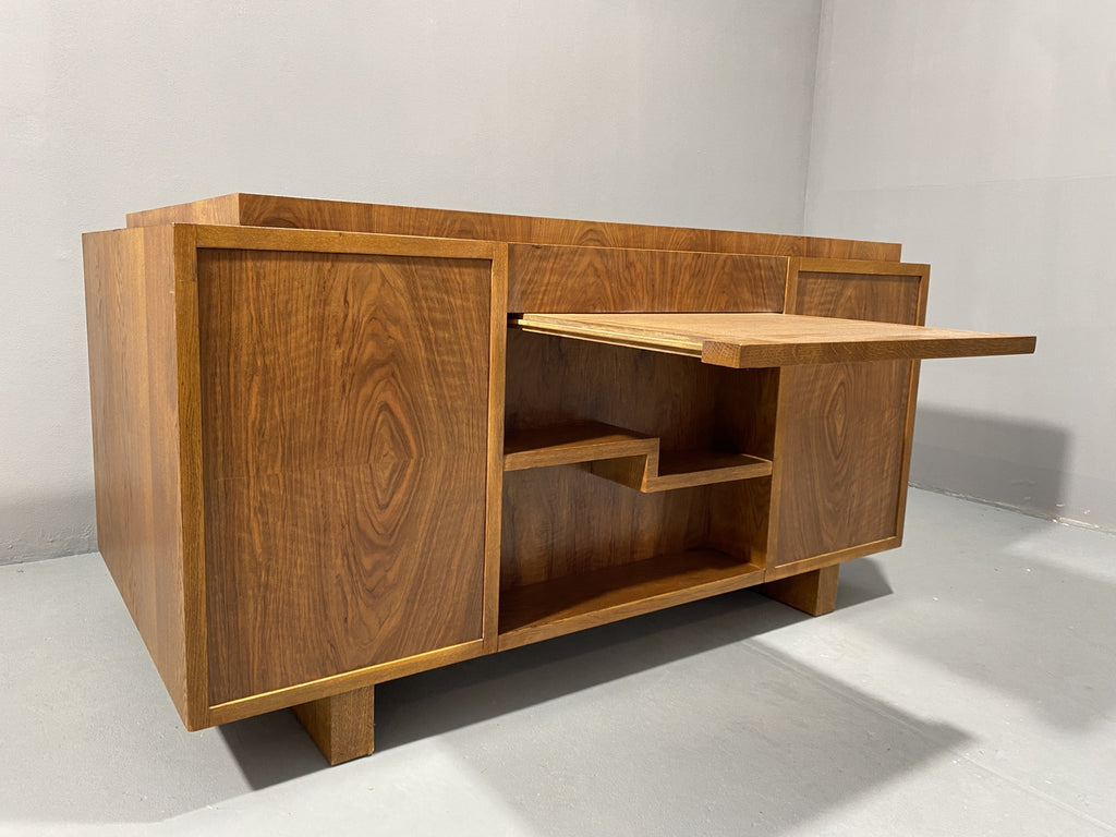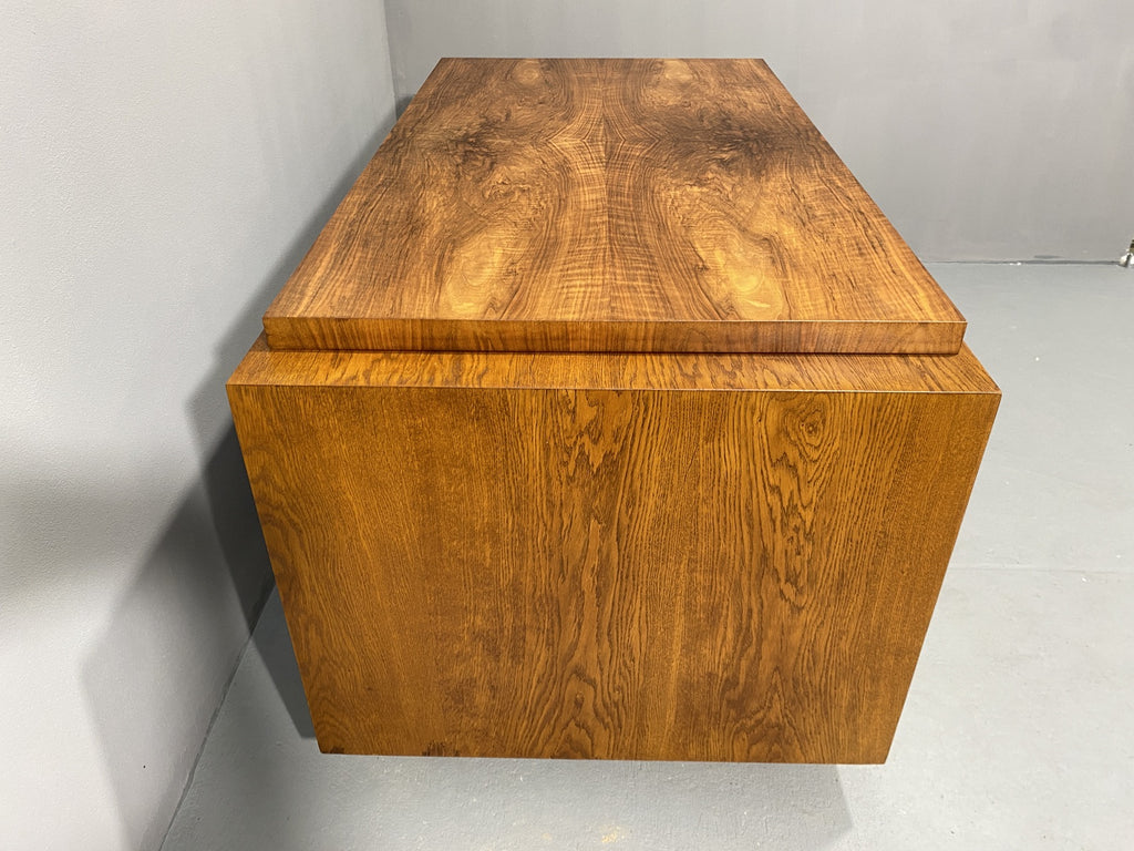 This fully renovated art deco writing desk is a stunning piece of furniture that will add character to any room. With its vintage design and intricate details, it is sure to impress. The desk was crafted in the 1930s in Central Europe, specifically in Czechoslovakia, and has been beautifully restored to its original glory. For many years it was used in the office of a civil engineer in Prague, whose family had this desk made to order in the 1930s.