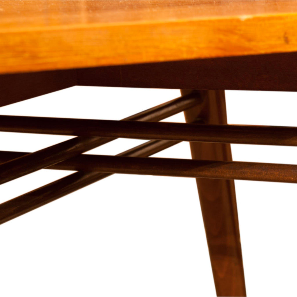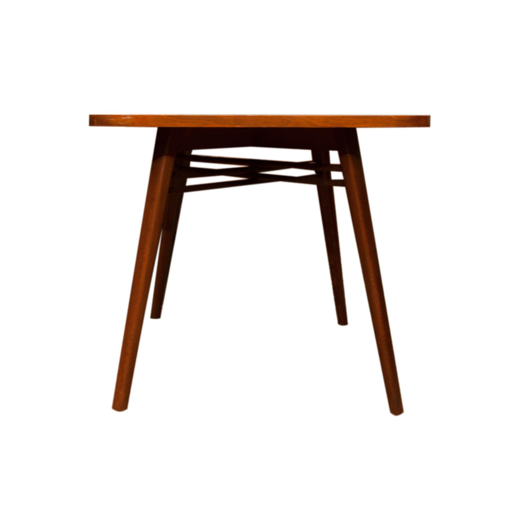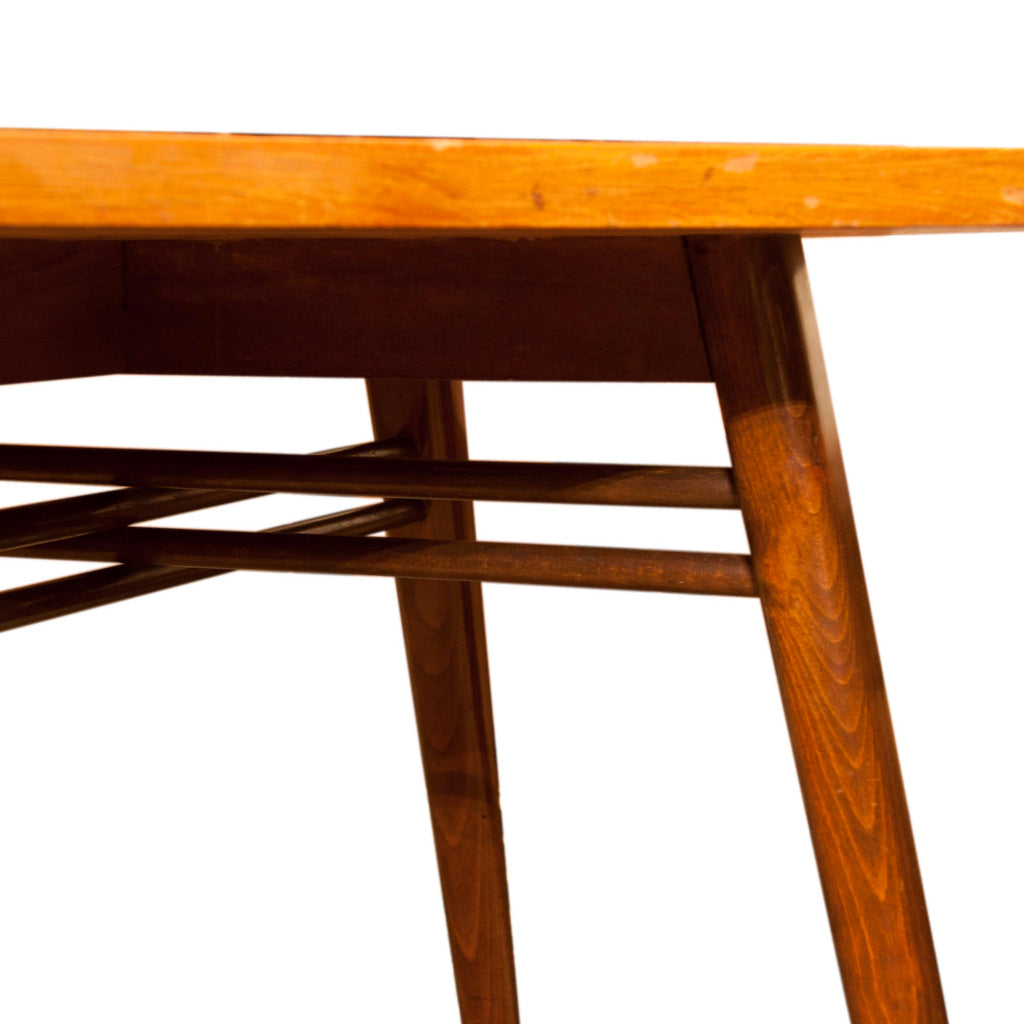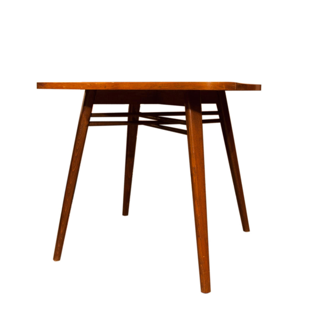Designer coffee table, unconventional profile, 50s, Central Europe. Exceptionally well-preserved condition, Almost as new. Curved edges. polished veneer. Dimensions: Height 62 cm, tabletop 59x62 cm.