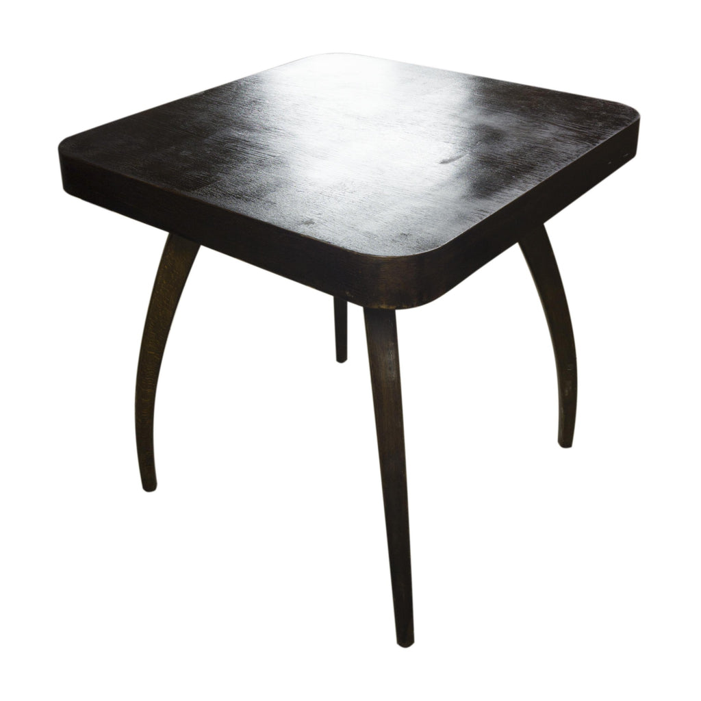 Square coffee table in the shape of spider designed by Jindřich Halabala, with distinctive curved legs, rounded corners. Stained oak. Construction of the table in very good condition. See photos.