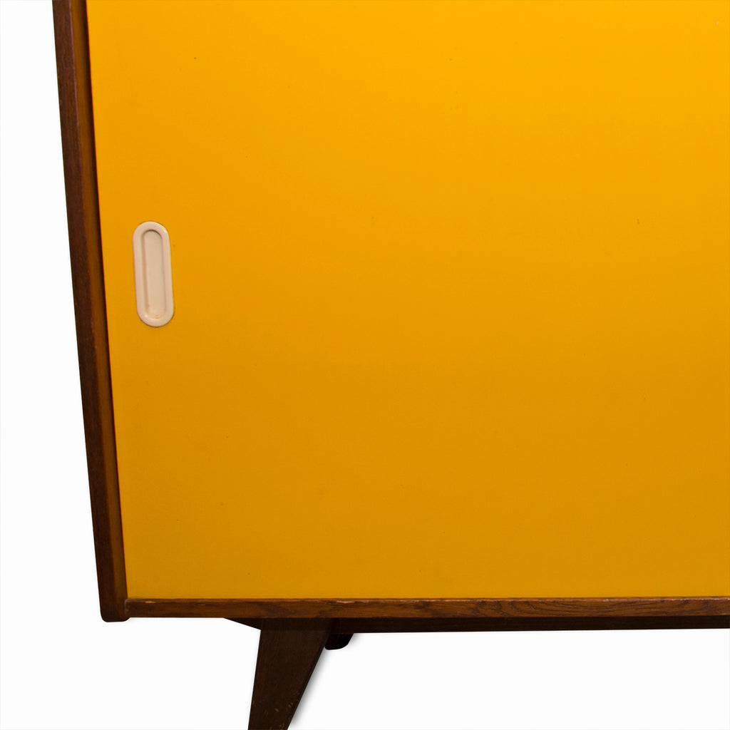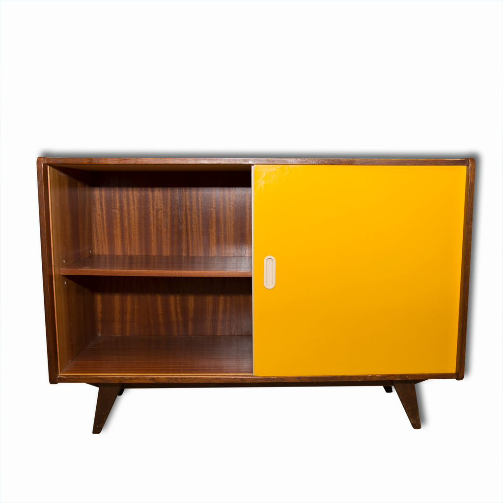 Mid century sideboard, catalogue No. U-452, designed by Jiri Jiroutek. It feautures a sliding doors and one long shelf inside. It´s made from the beechwood, veneer, plywood and laminate. In good vintage condition. Minor abrasions and scratches in the context of age and use.