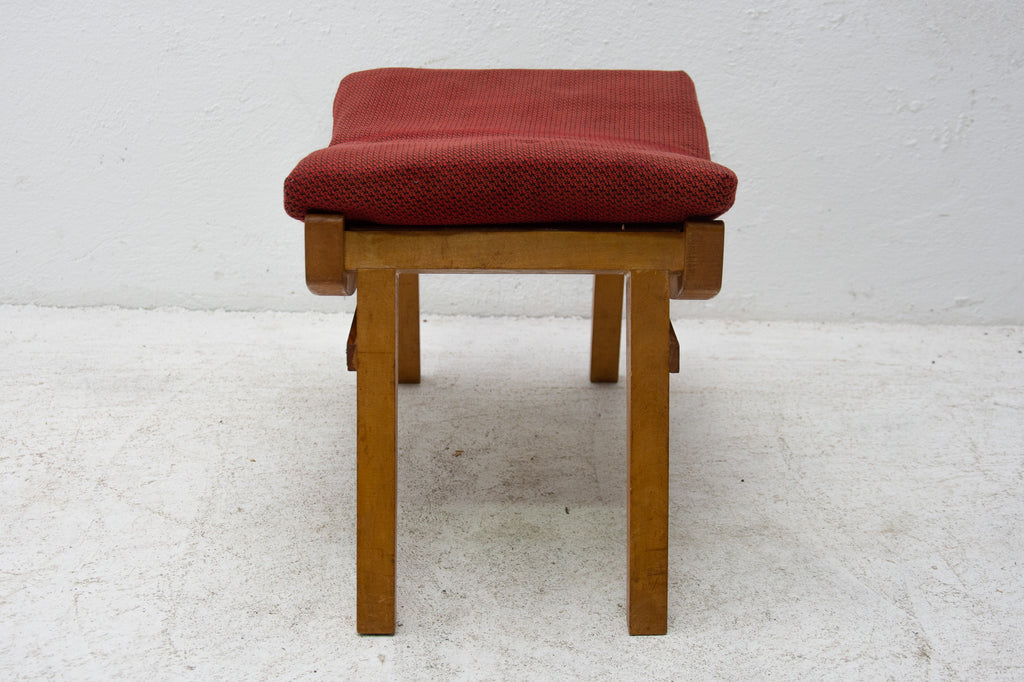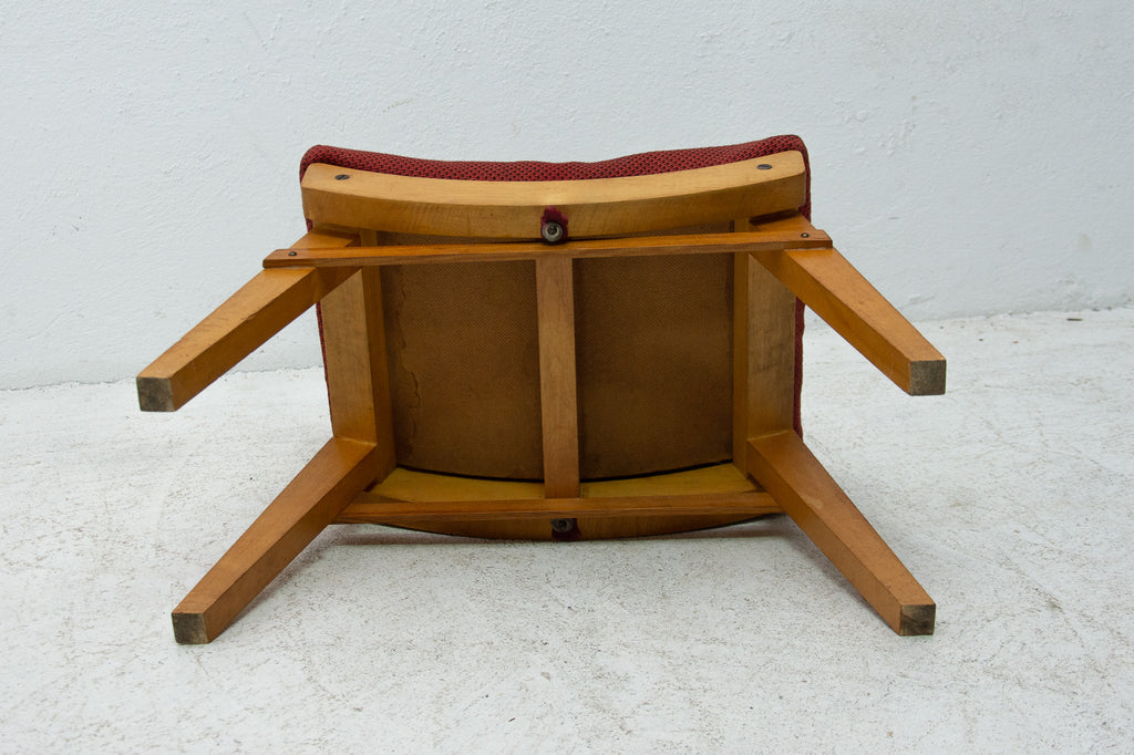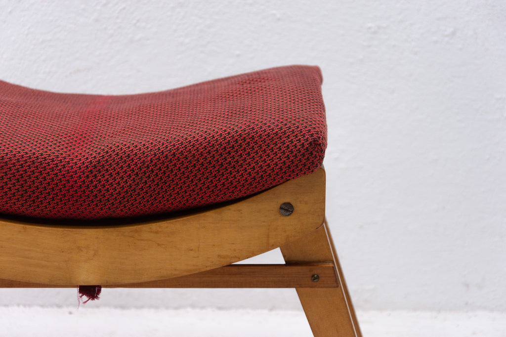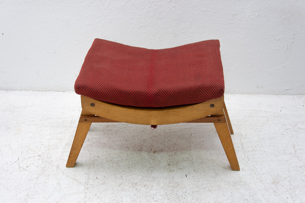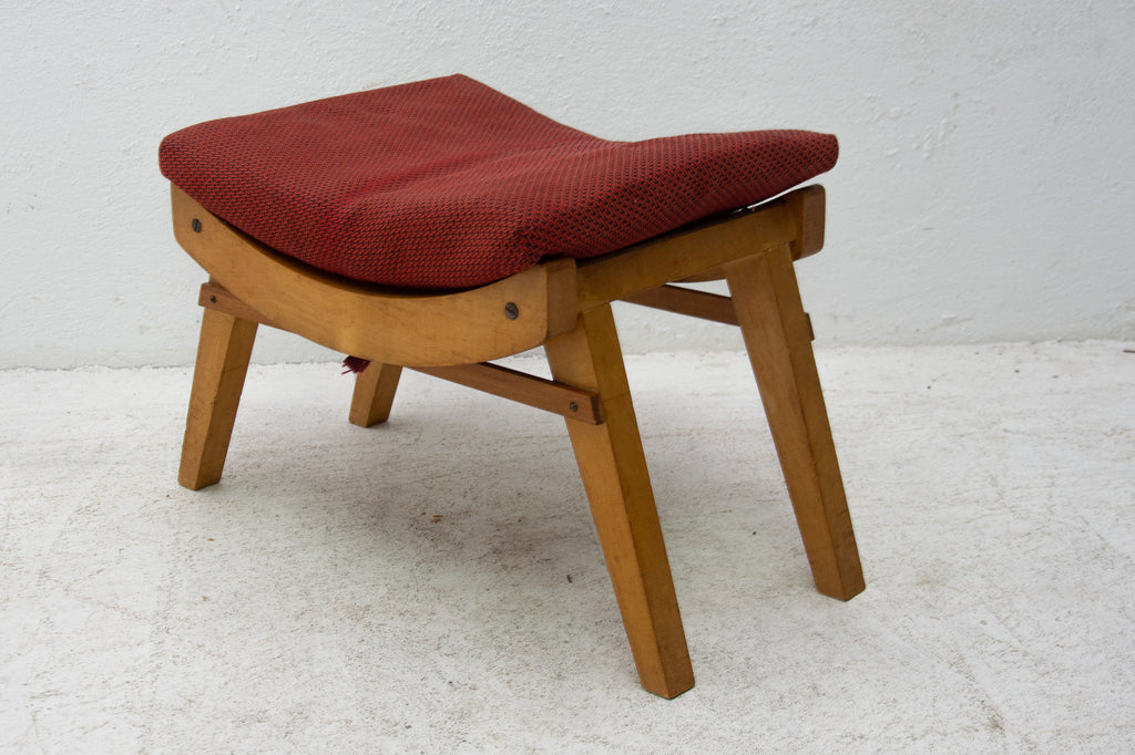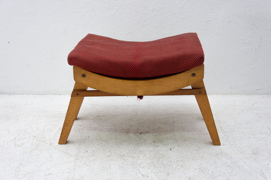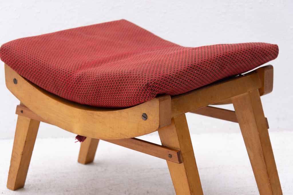 This Vintage stools/footrests were produced by Krásná Jizba company in the former Czechoslovakia in the in the 1950´s. They features an unconventional design, irregular shaping. It´s made of beech wood. Wood is in good Vintage condition, bearing signs of age and wear, the fabric needs to be cleaned.