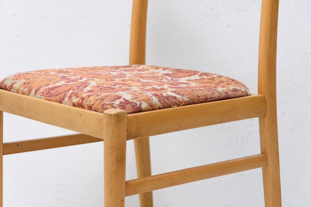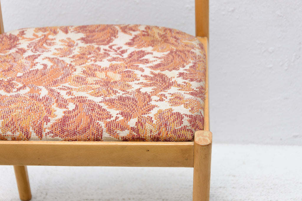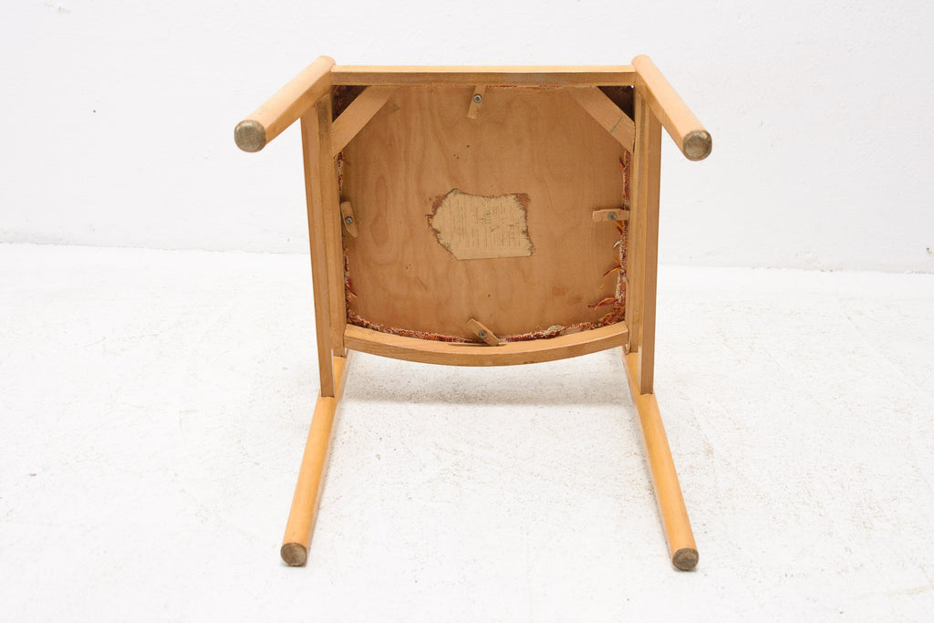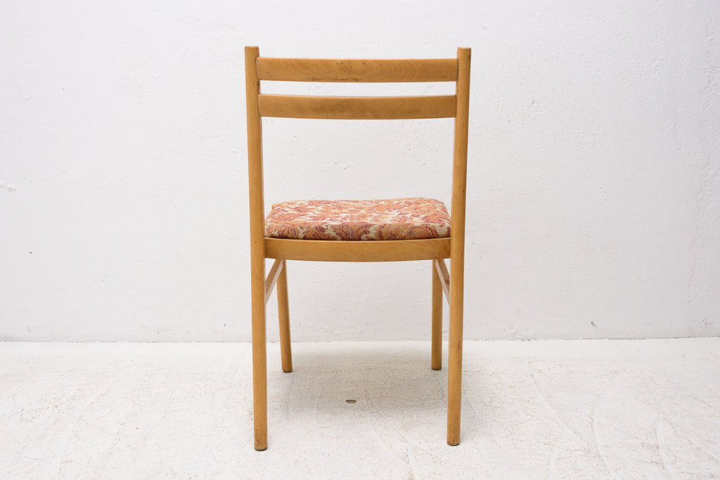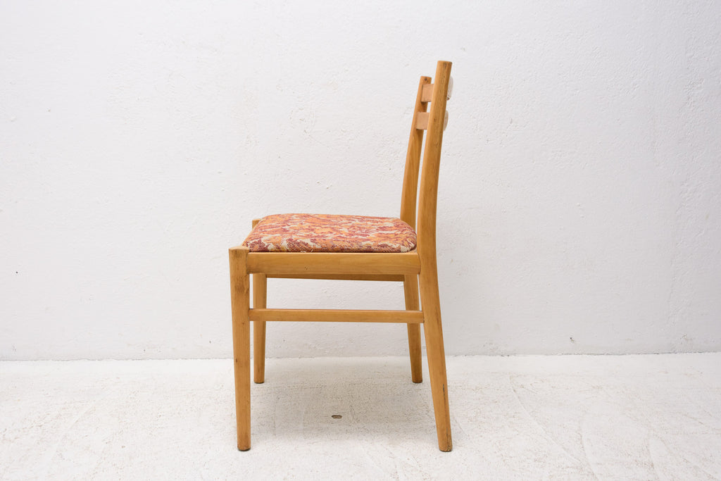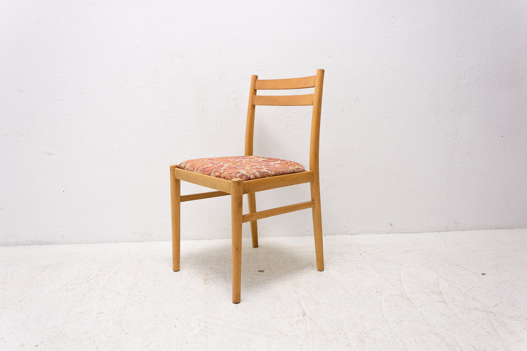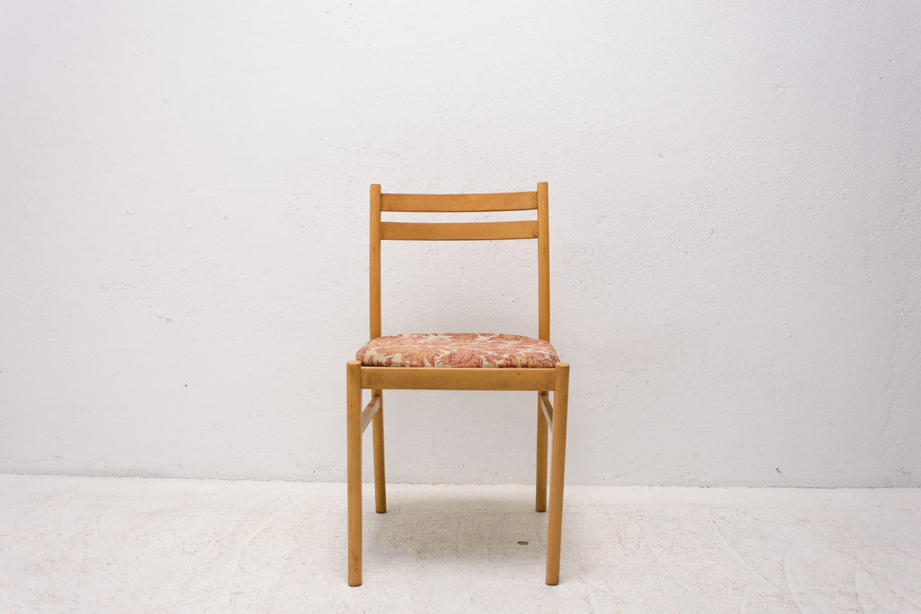 Mid century upholstered dining chairs, made in Czechoslovakia in the 1960´s. Beech wood, fabric. In good Vintage condition, without any damage, showing signs of age and using. Price is for the set of four.
