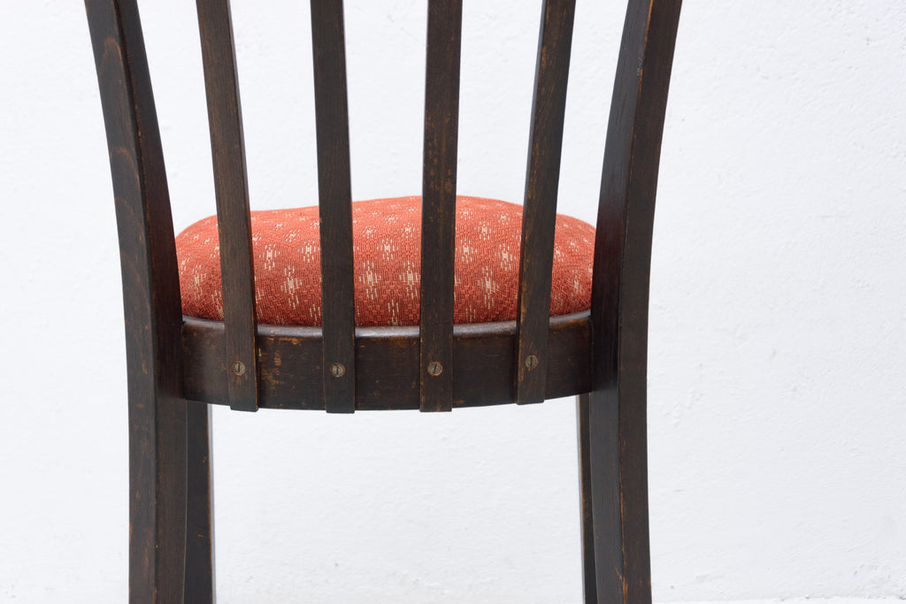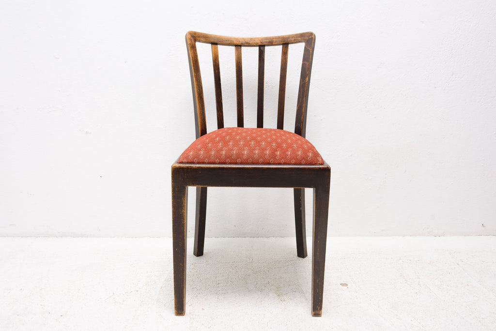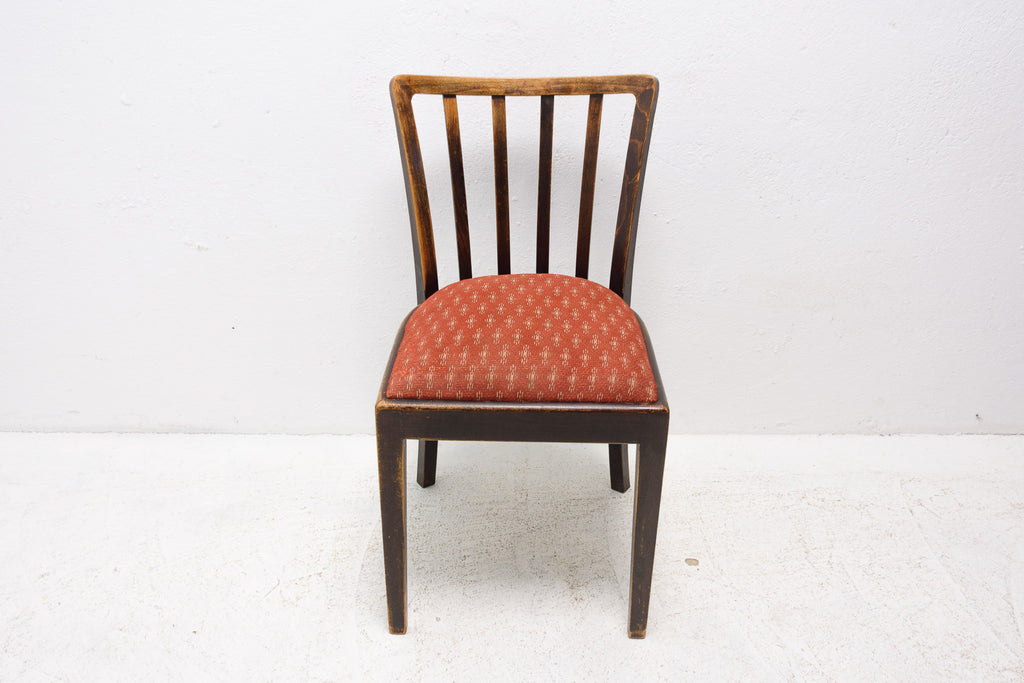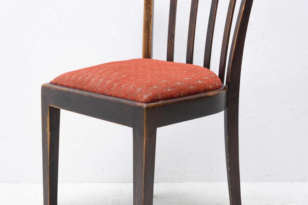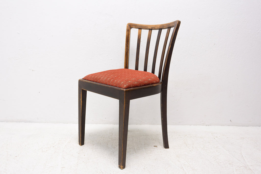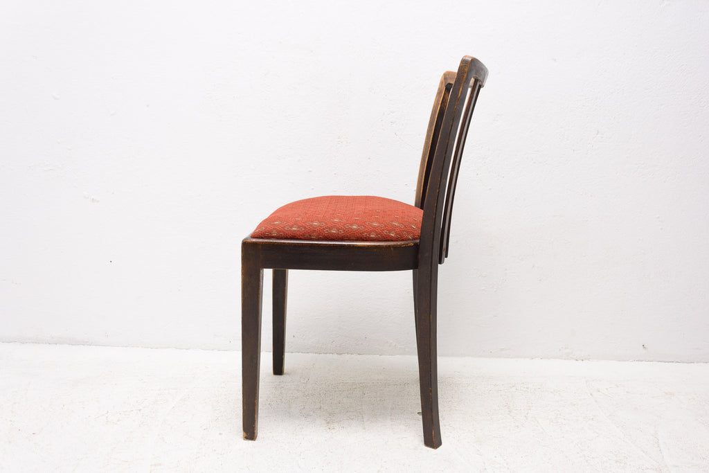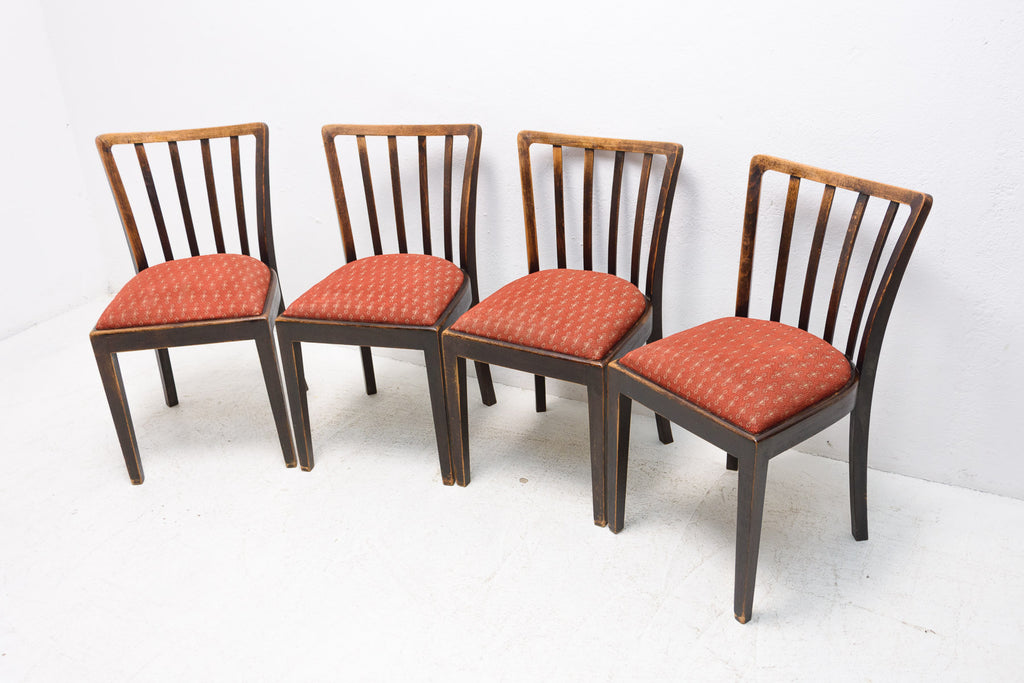 Set of four dining chairs, these were made in the former Czechoslovakia in the 1950´s . Made of beech wood and upholstered in fabric. The chairs are in good Vintage condition, with wear appropriate for the age of chairs. Price is for the set of four.