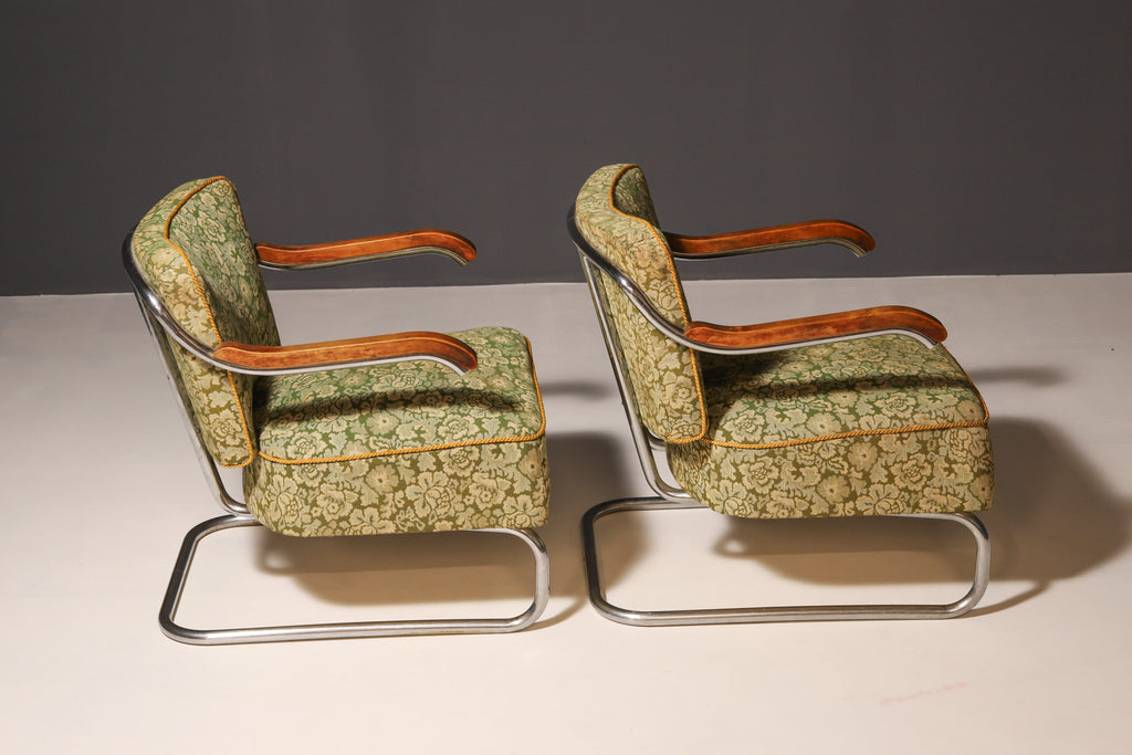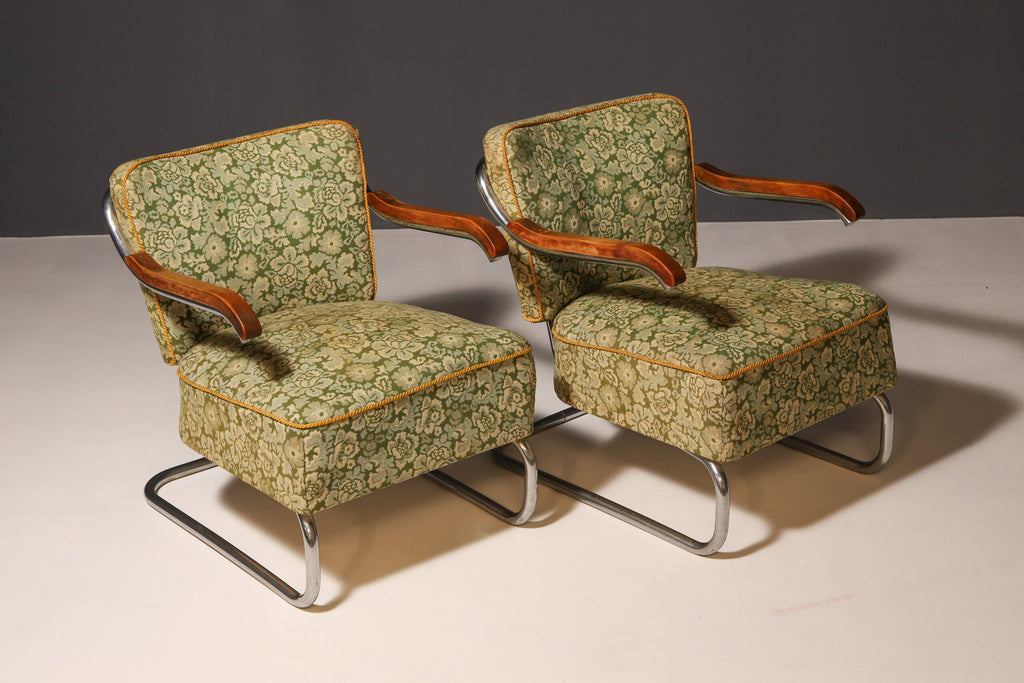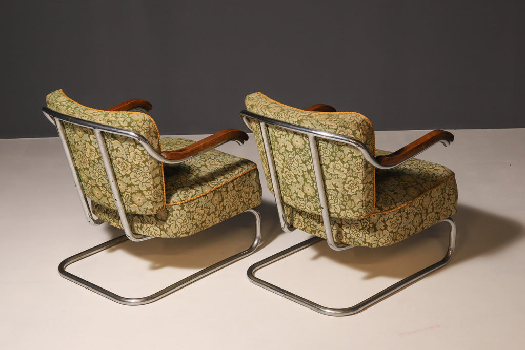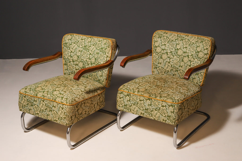 Picture this: a pair of cantilever tubular steel armchairs, made by Kovona company in the former Czechoslovakia in the 1950's.
