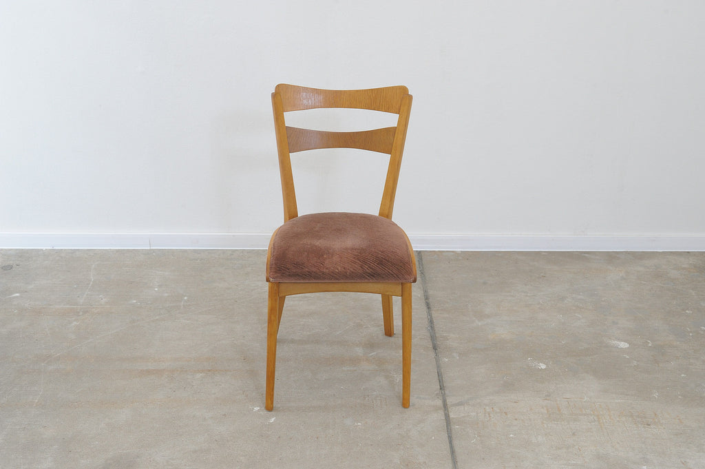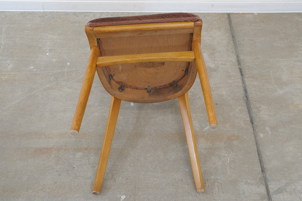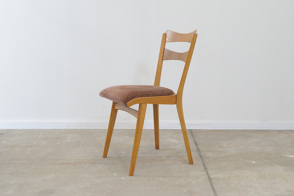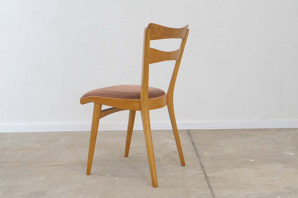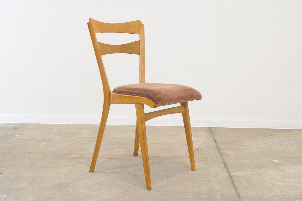 Set of four midcentury upholstered dining chairs, made in the former Czechoslovakia by Tatra nábytok company in the 1960s. The chairs are constructed of beech wood. Very interesting shaping. The upholstery and wood are in very good condition. Price is for the set of 4.