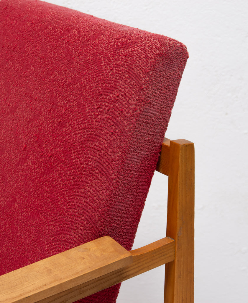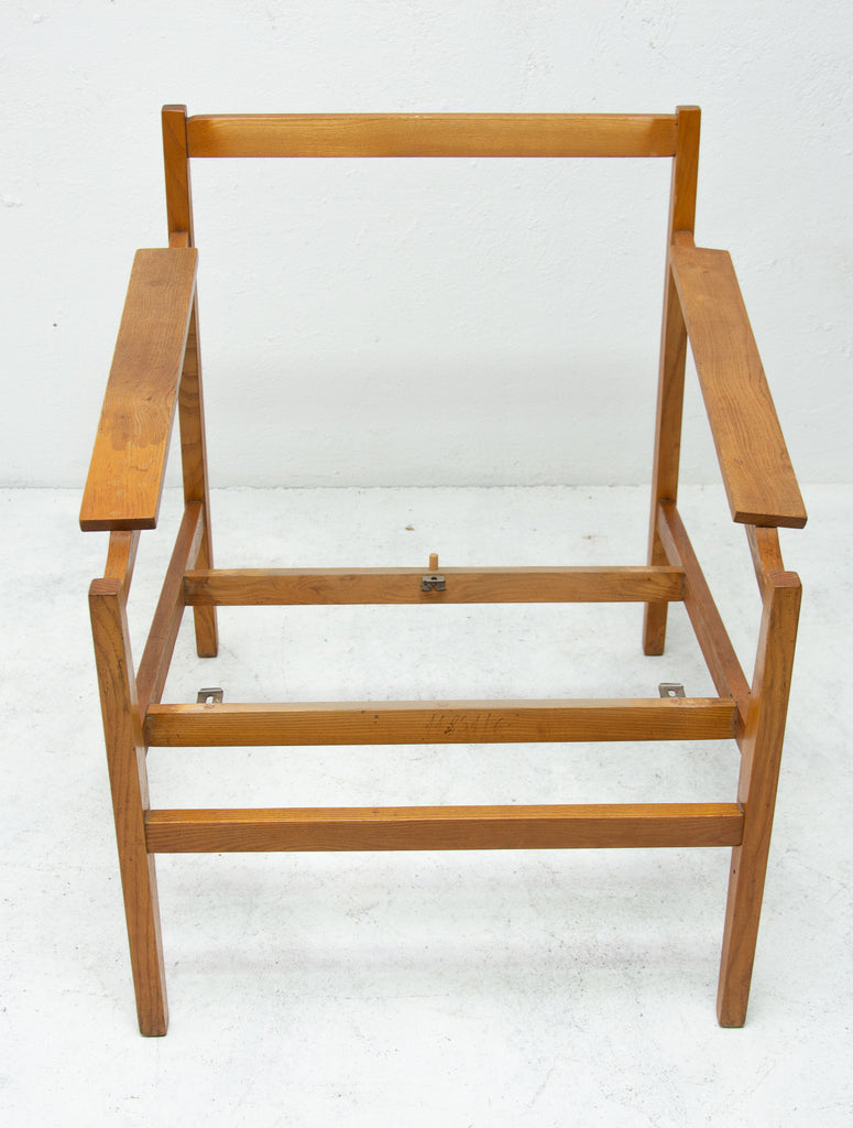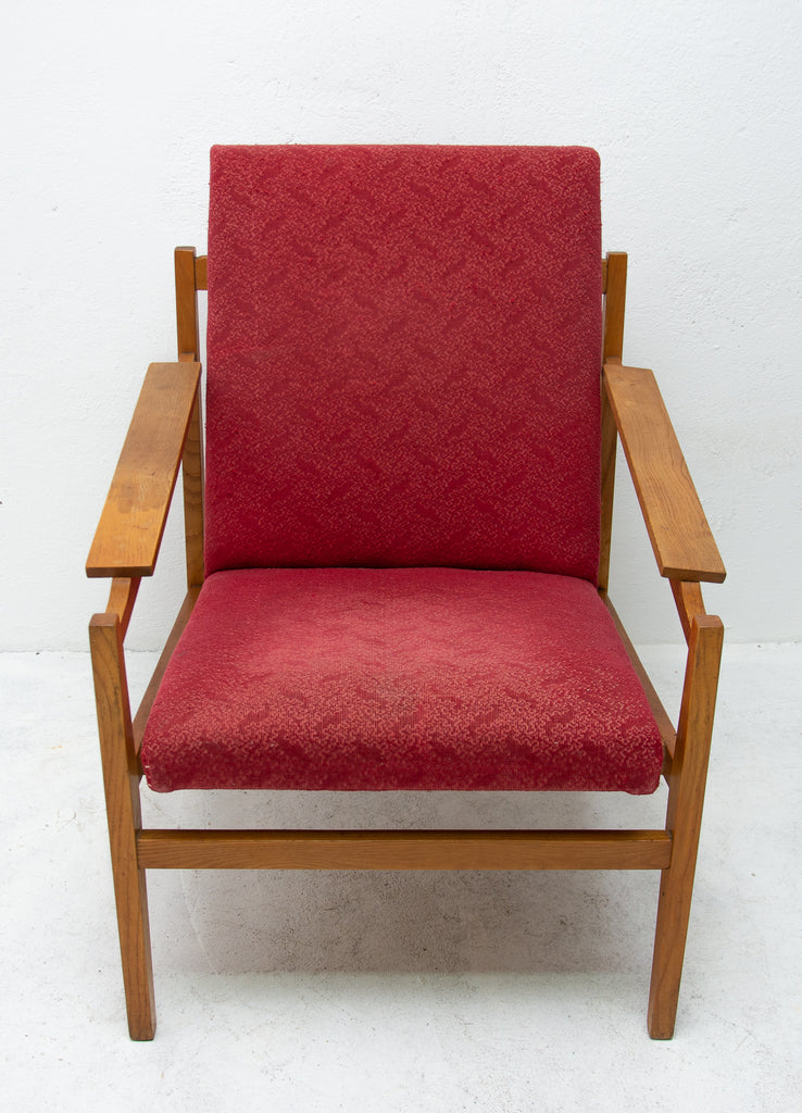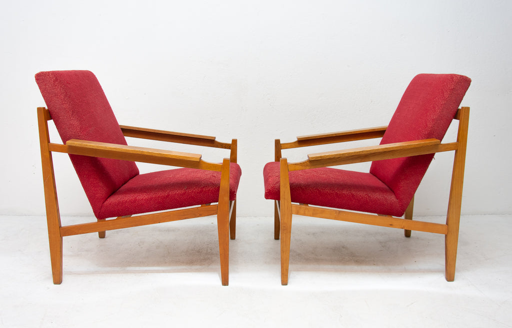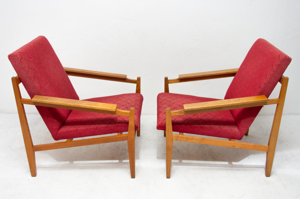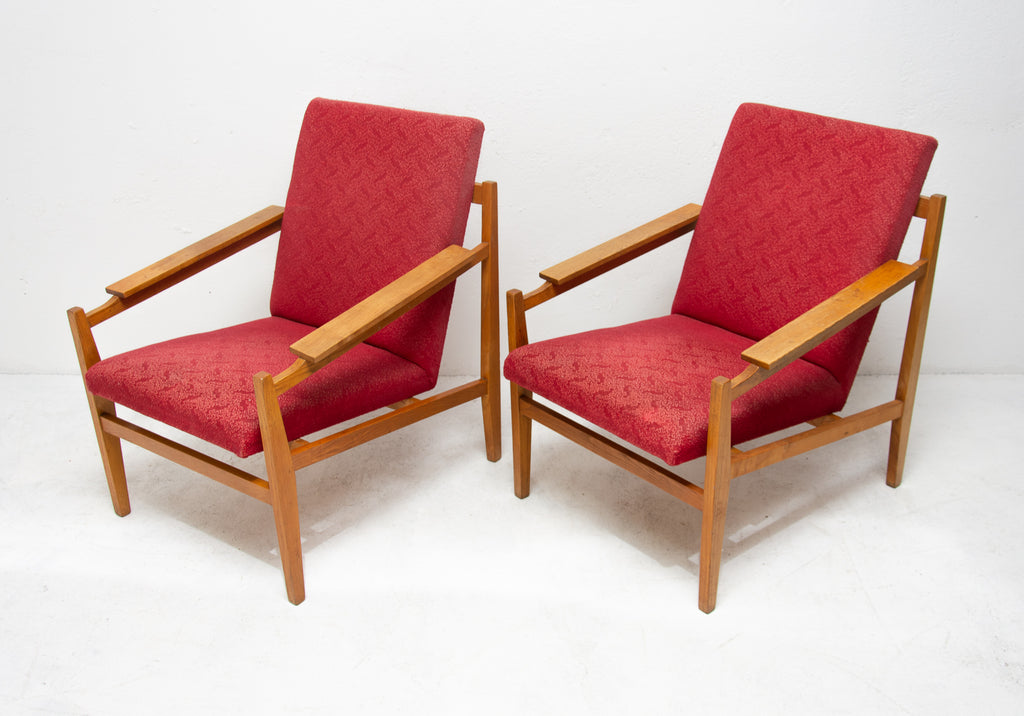 This beautiful pair of mid century armchairs were produced probably in the 1960´s. It features a beech wood structure and removable cushions in original upholstery. The chairs are fully functional, but it shows sign of age through abrasions, dings, faded finishes. Overall in good Vintage condition. Price is for the pair