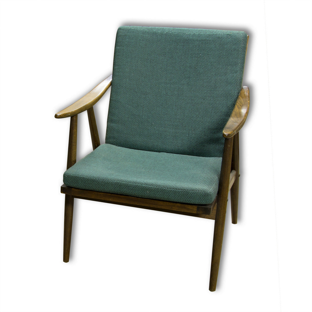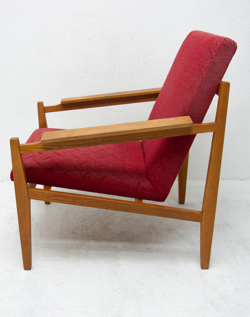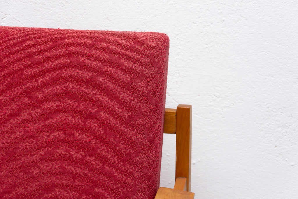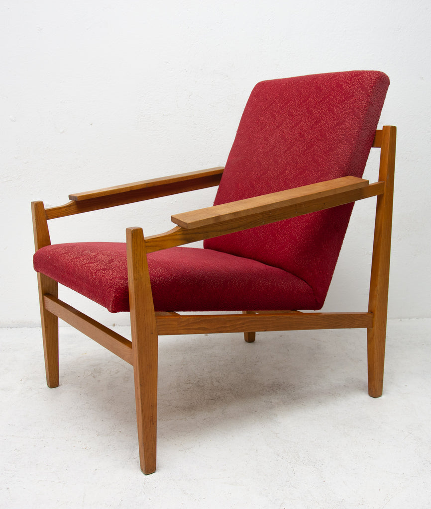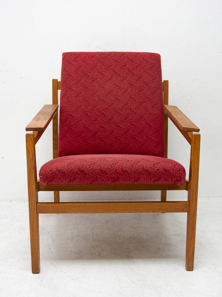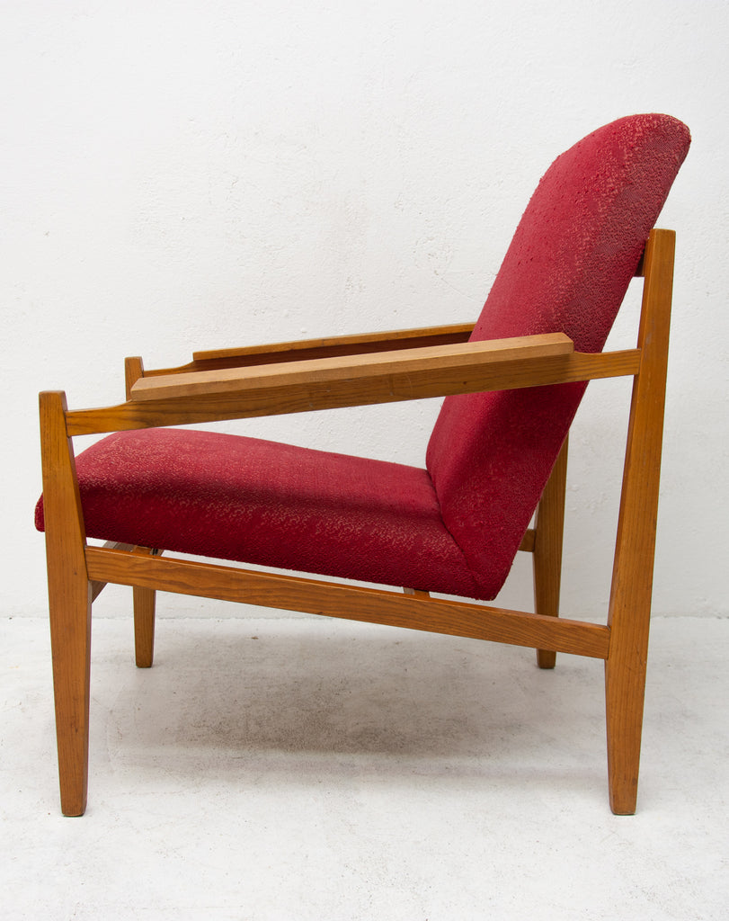 This beautiful pair of mid century armchairs were produced probably in the 1960´s. It features a beech wood structure and removable cushions in original upholstery. The chairs are fully functional, but it shows sign of age through abrasions, dings, faded finishes. Overall in good Vintage condition. Price is for the pair