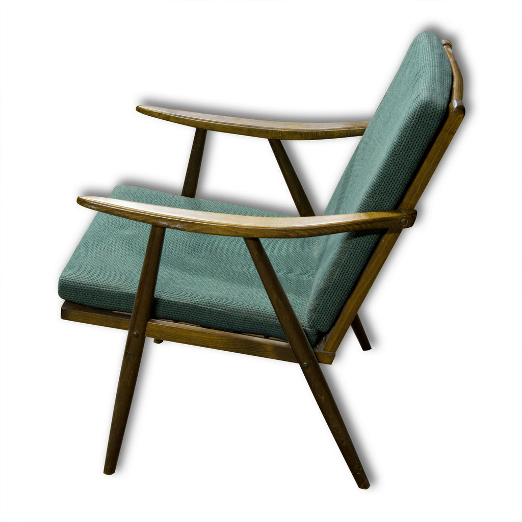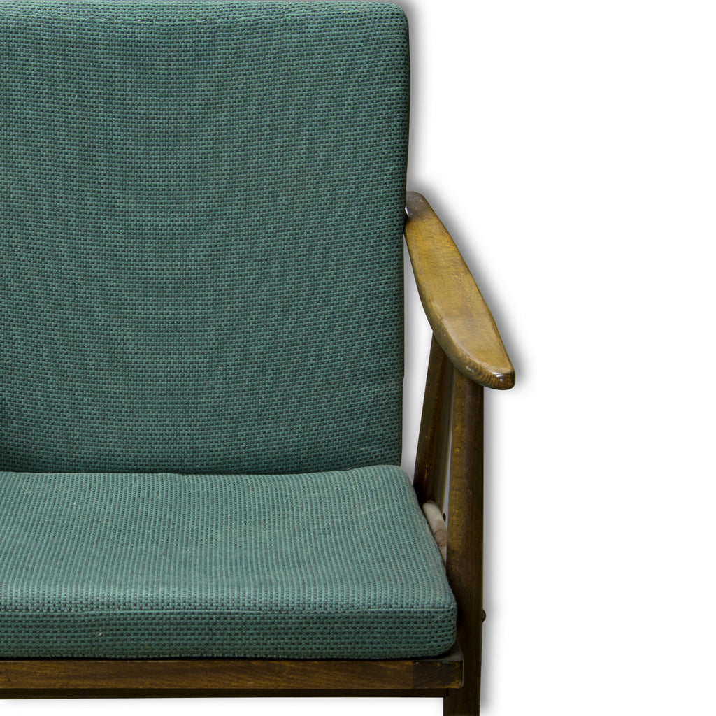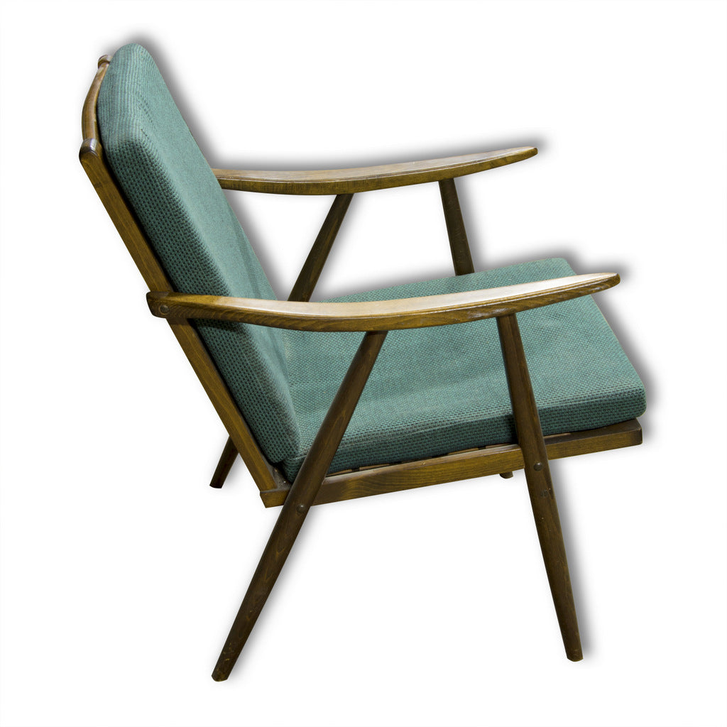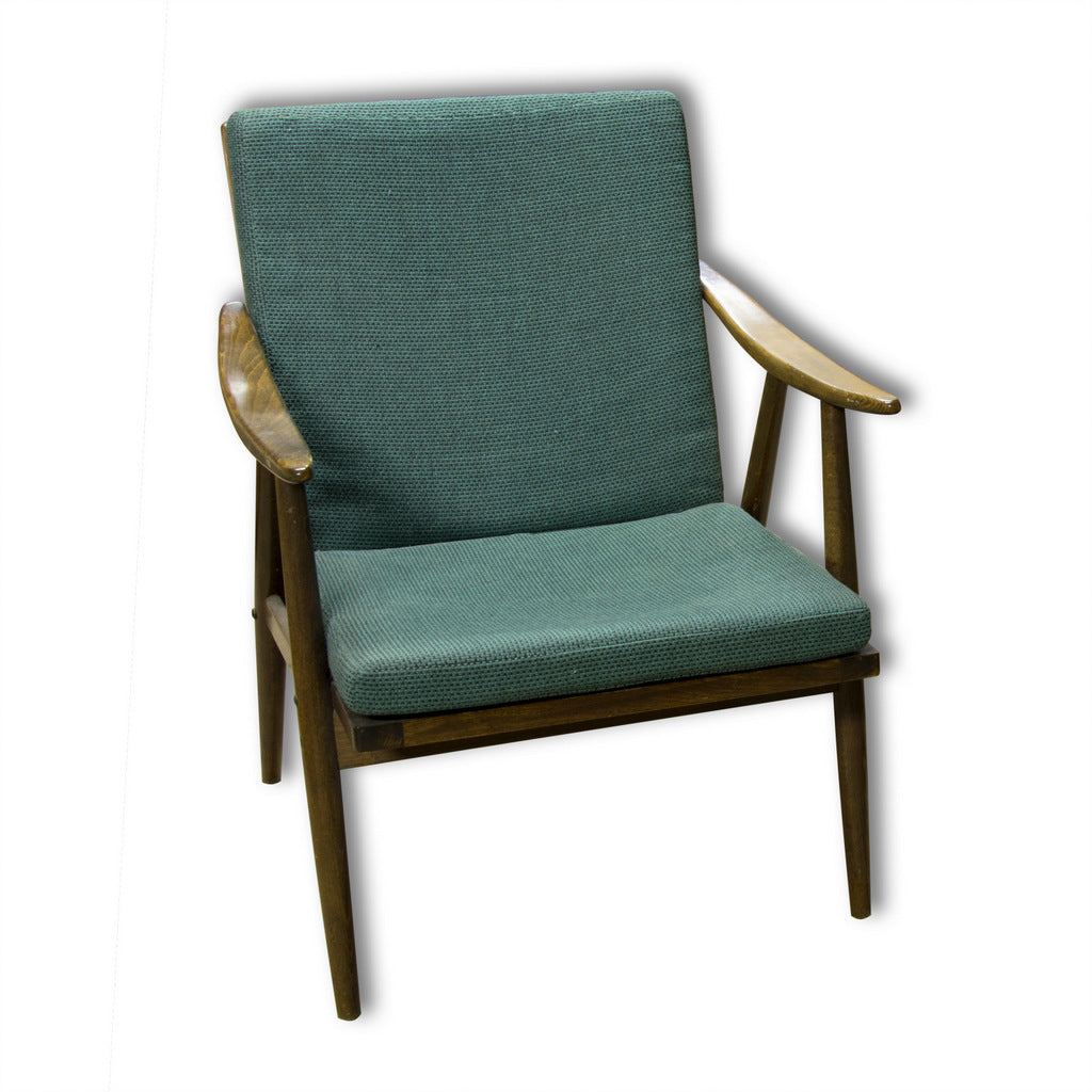 This beautiful pair of mid century armchairs were produced probably in the 1960´s. It features a beech wood structure and removable cushions in original upholstery. The chairs are fully functional, but it shows sign of age through abrasions, dings, faded finishes. Overall in good Vintage condition. Price is for the pair