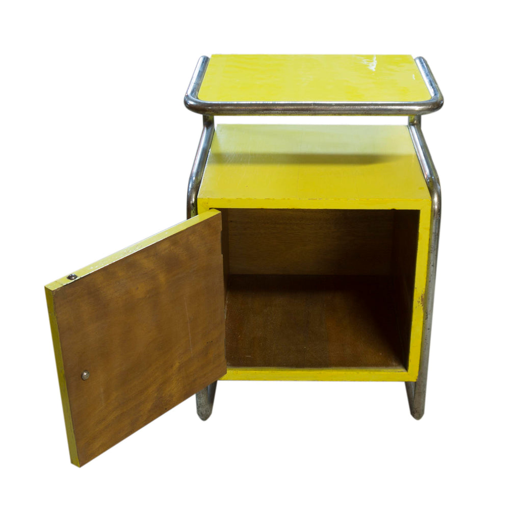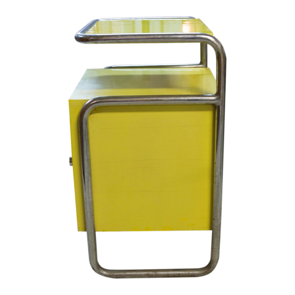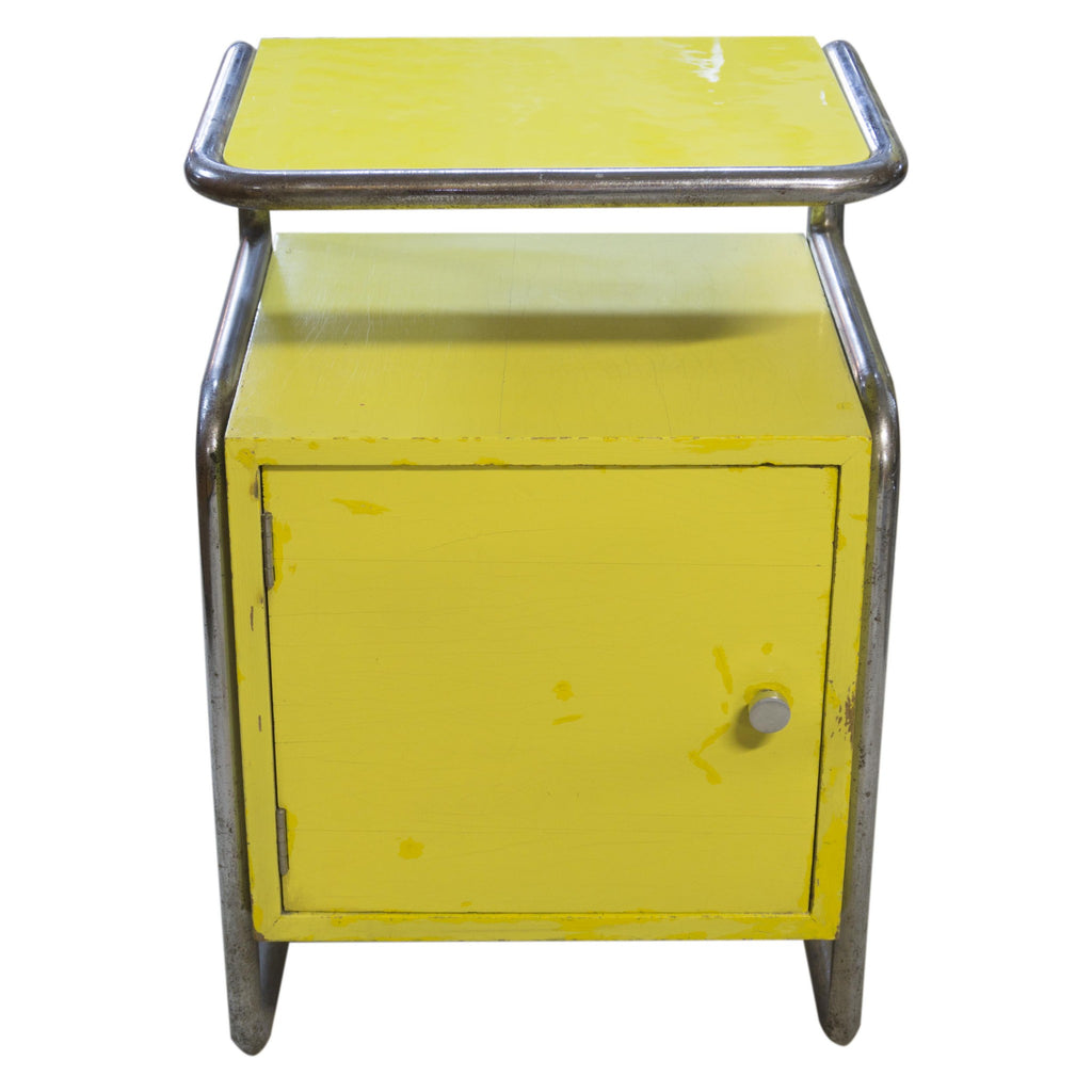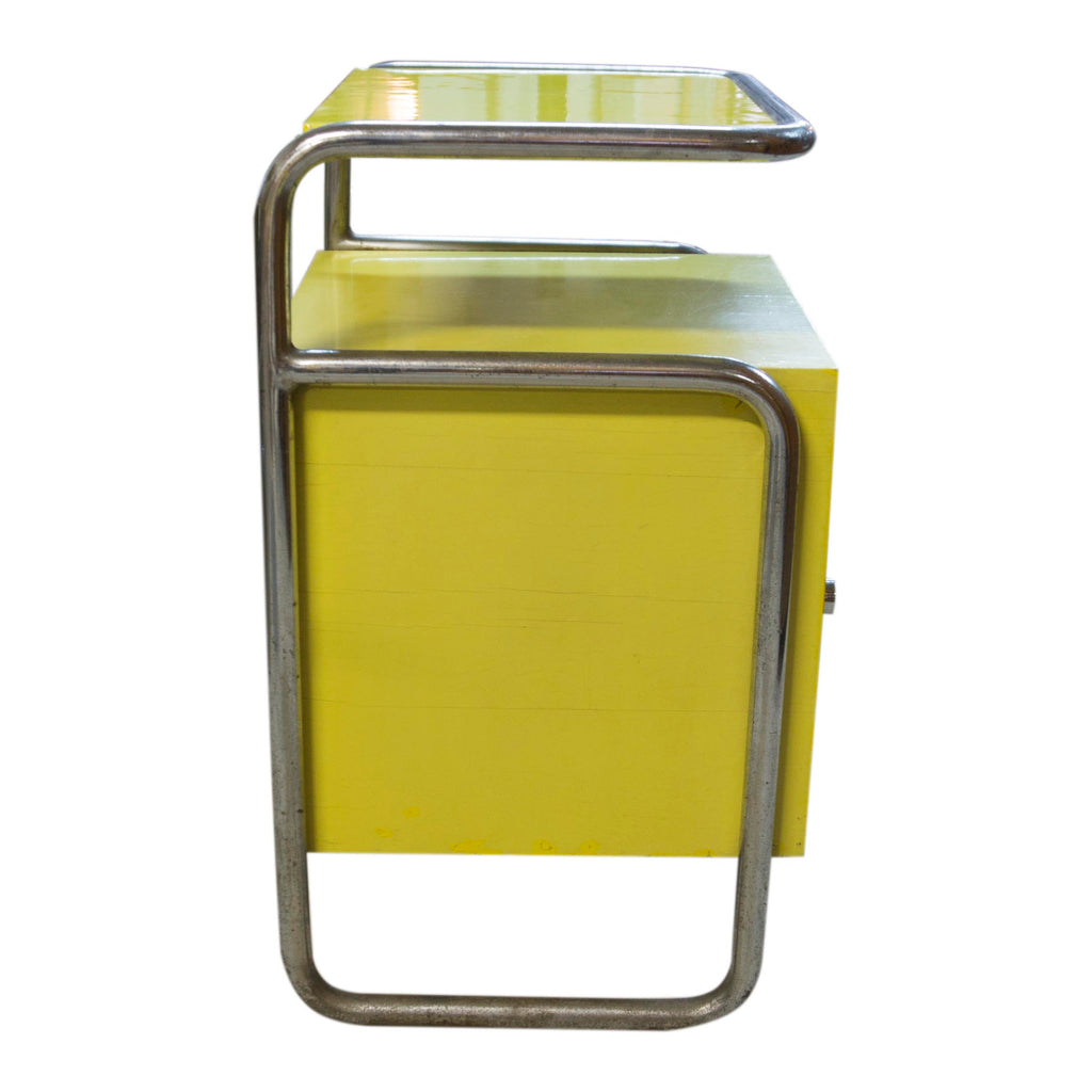 Nightstand Bauhaus tubular steel construction, yellow lacquer, circa 1929. Unrestored, in good condition.
