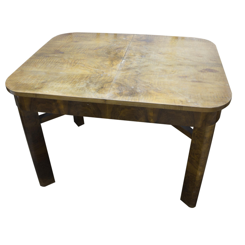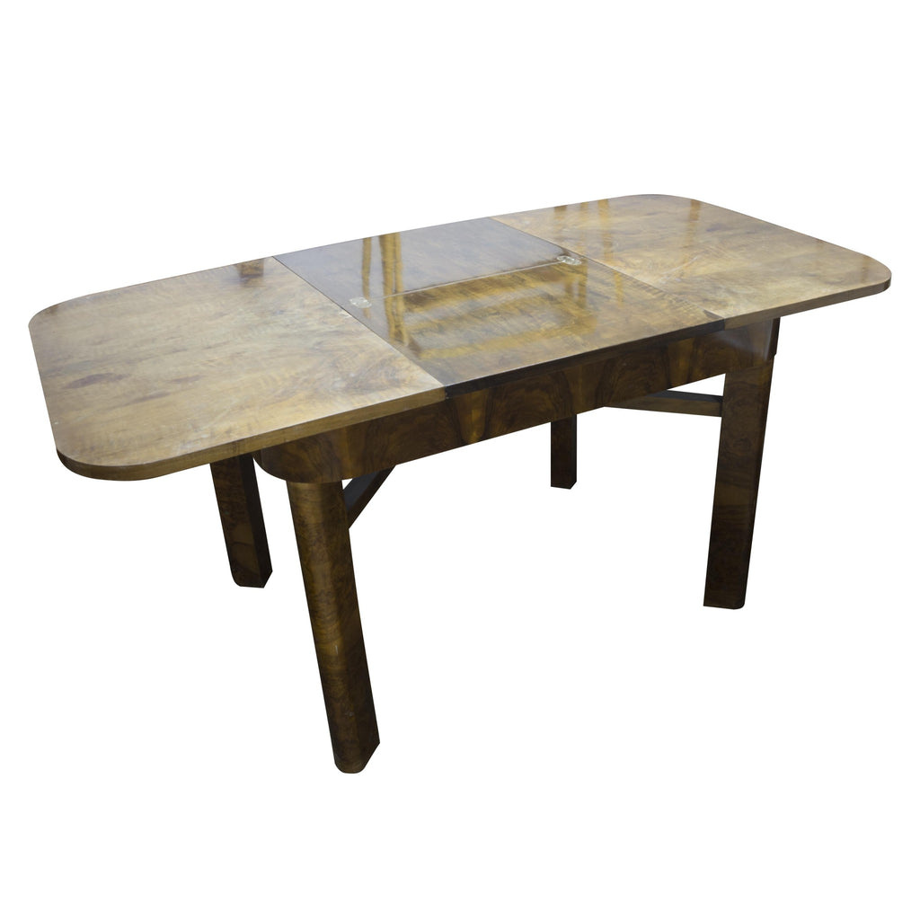 Folding dining table, 1930´s, Europe. Walnut veneer. Original Condition, the pictures shows the table top with minor abrasions and scratches in the context of age and use. If you are interested we will arrange a complete renovation.