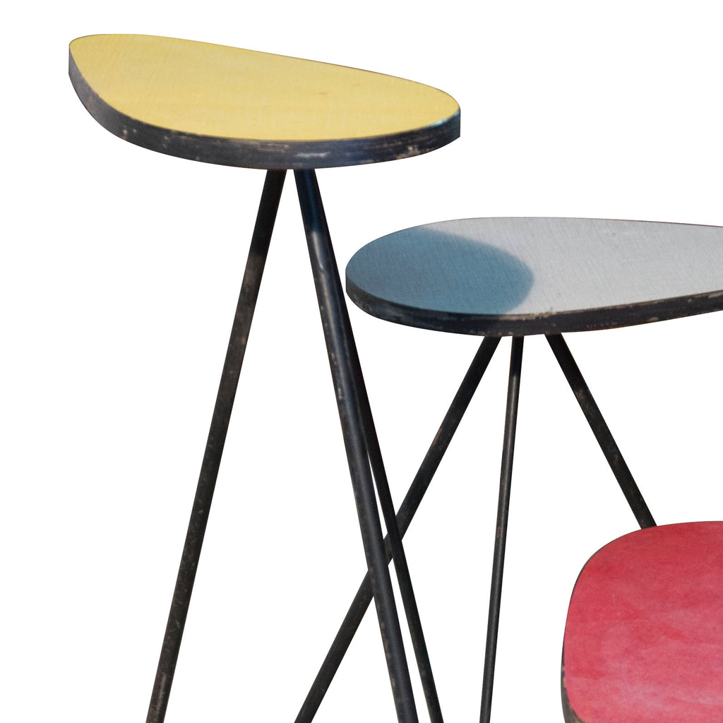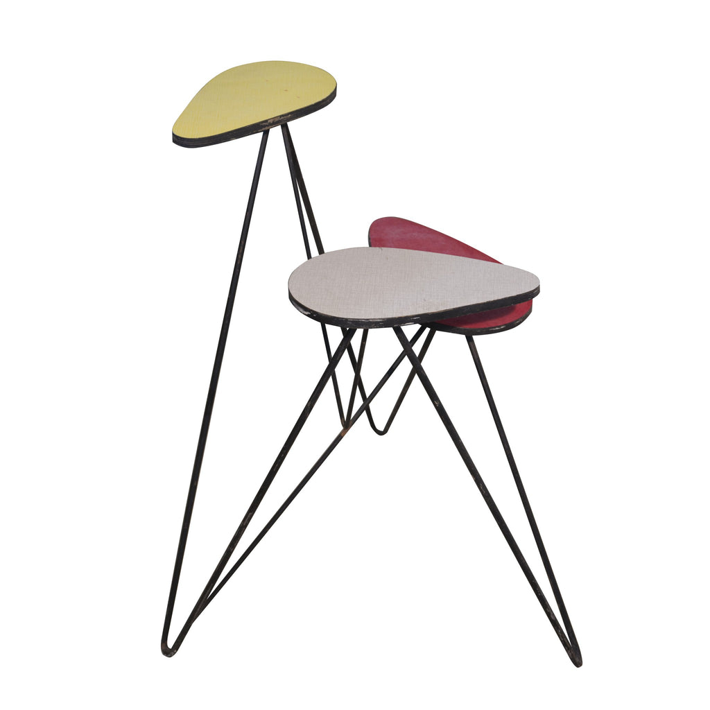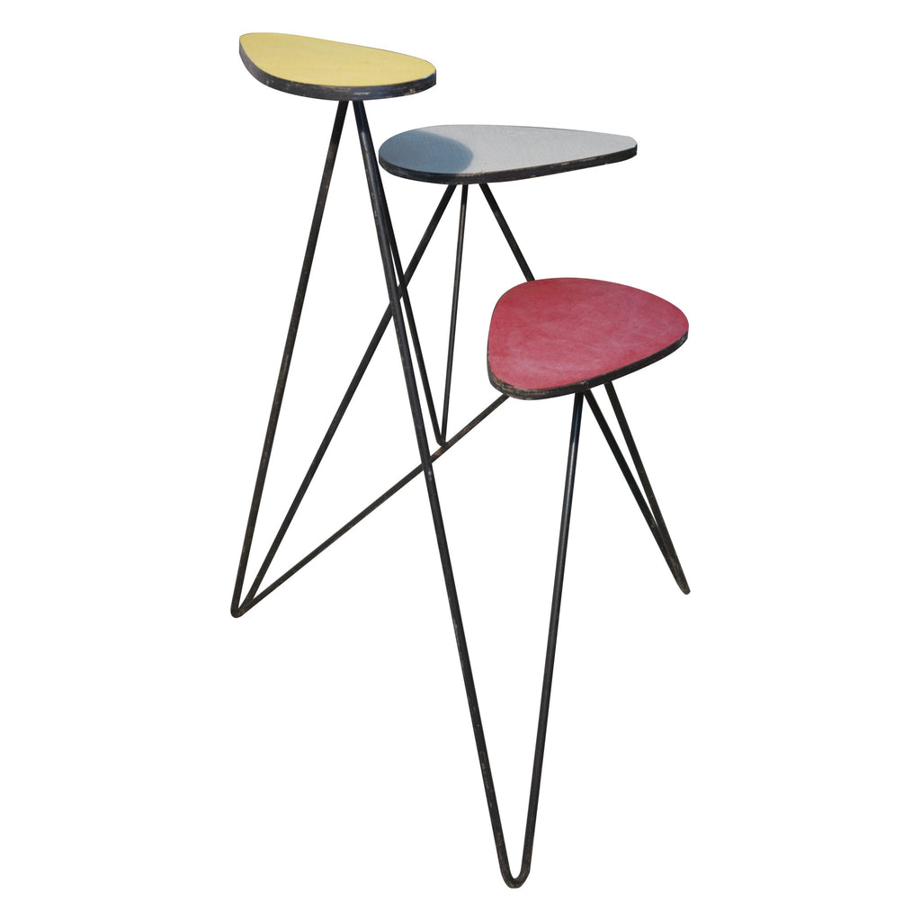 Mid century stand for flowers. Reflecting the 'French style' aesthetic of the mid century period. Materials: iron, laminate, Formica. Cool retro piece. In well preserved condition, but shows the signs of use. Height: 71 cm, width: 52 cm, depth: 50 cm.