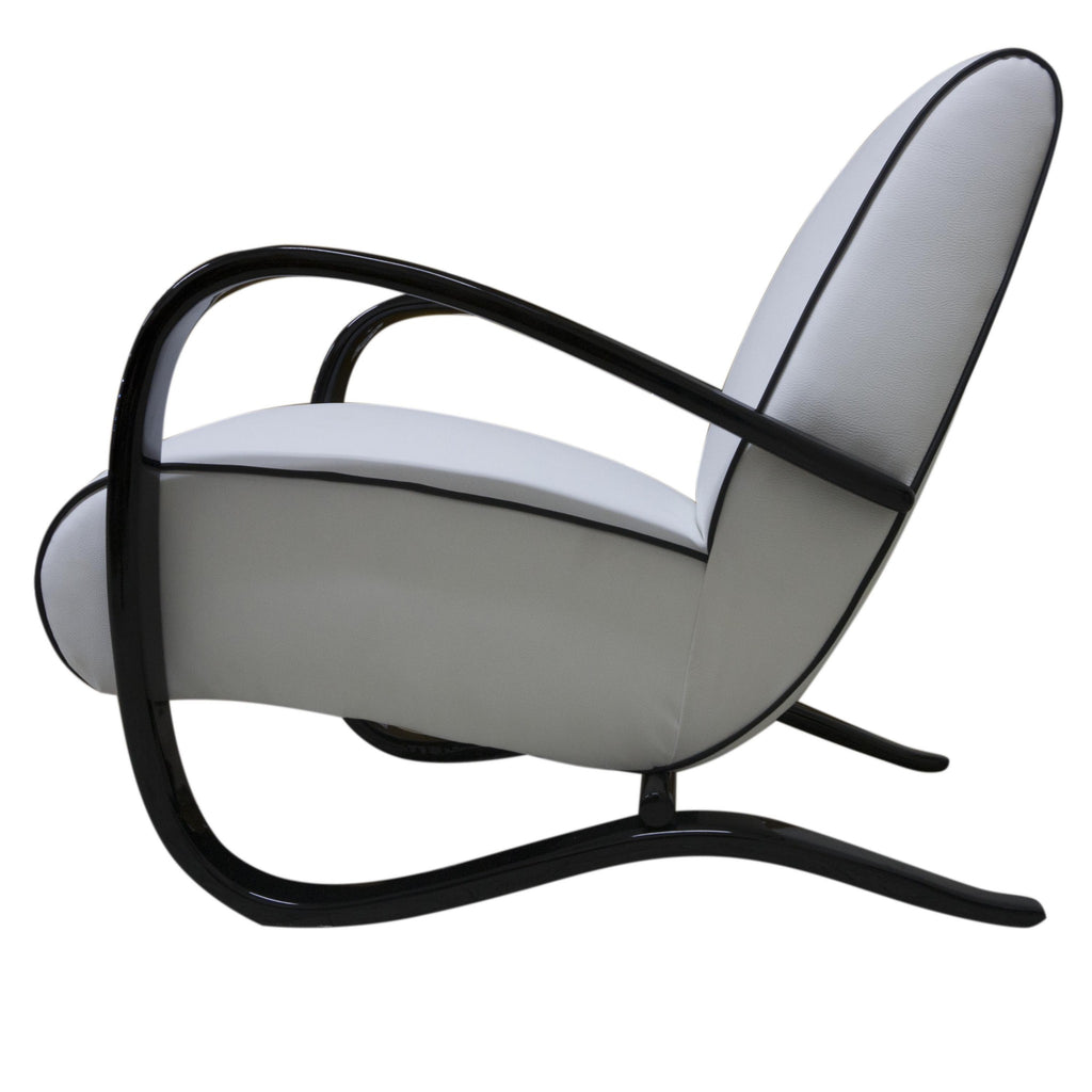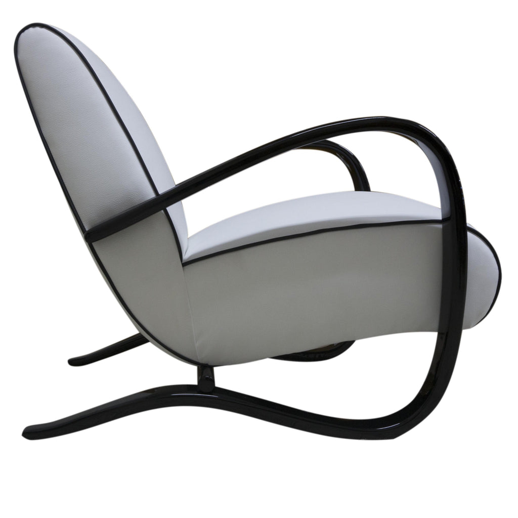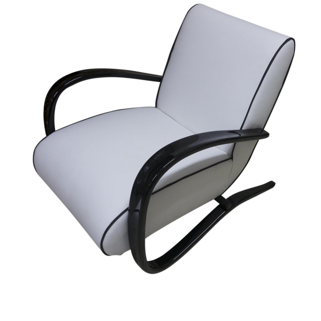 Luxury Art Deco ebonized bentwood armchair by Jindřich Halabala, model H-269. Upholstered in white velvet with black piping. Completely renovated. New upholstery. The wooden structure is varnished with polyurethane. In case of interest, we are able to provide another chair exactly the same to make a pair.