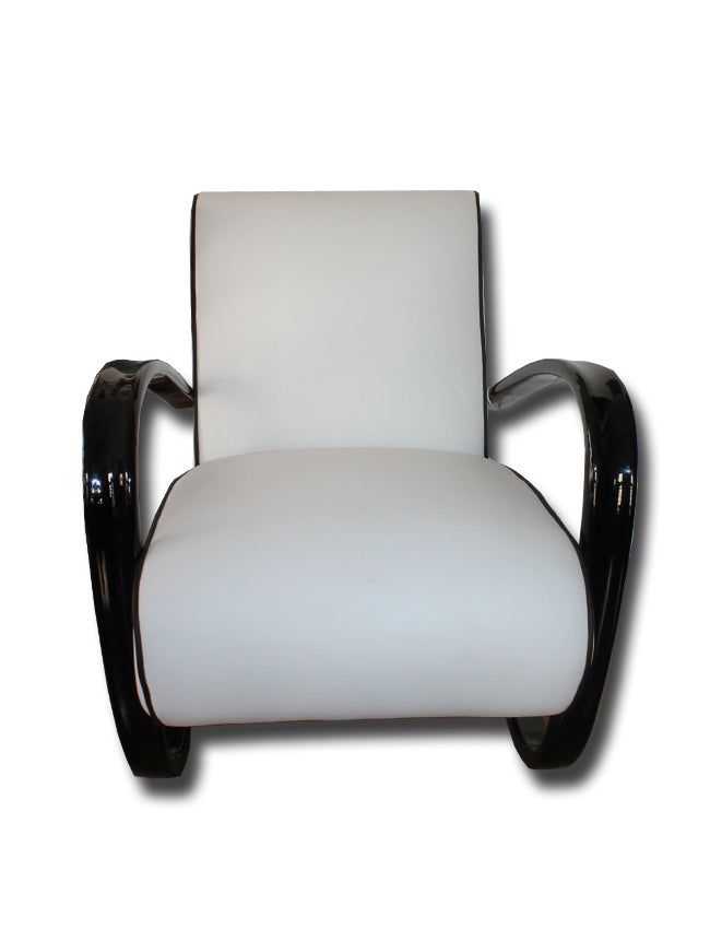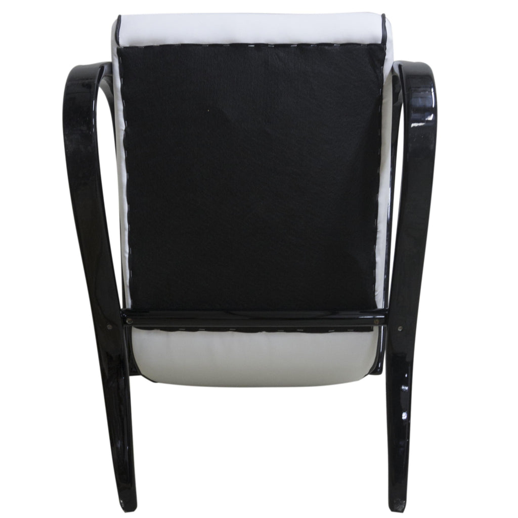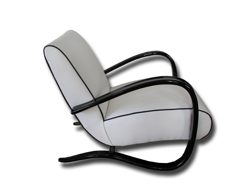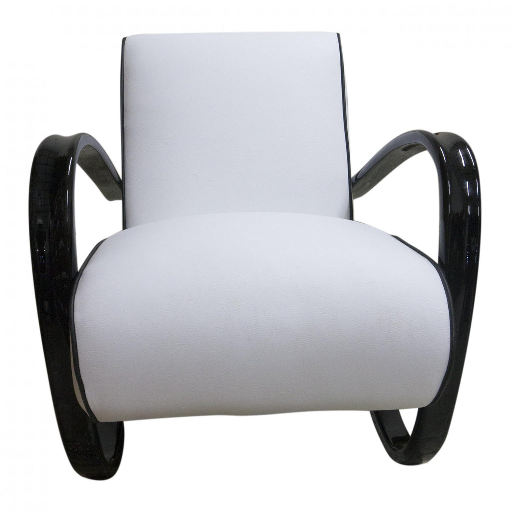 Luxury Art Deco ebonized bentwood armchair by Jindřich Halabala, model H-269. Upholstered in white velvet with black piping. Completely renovated. New upholstery. The wooden structure is varnished with polyurethane. In case of interest, we are able to provide another chair exactly the same to make a pair.