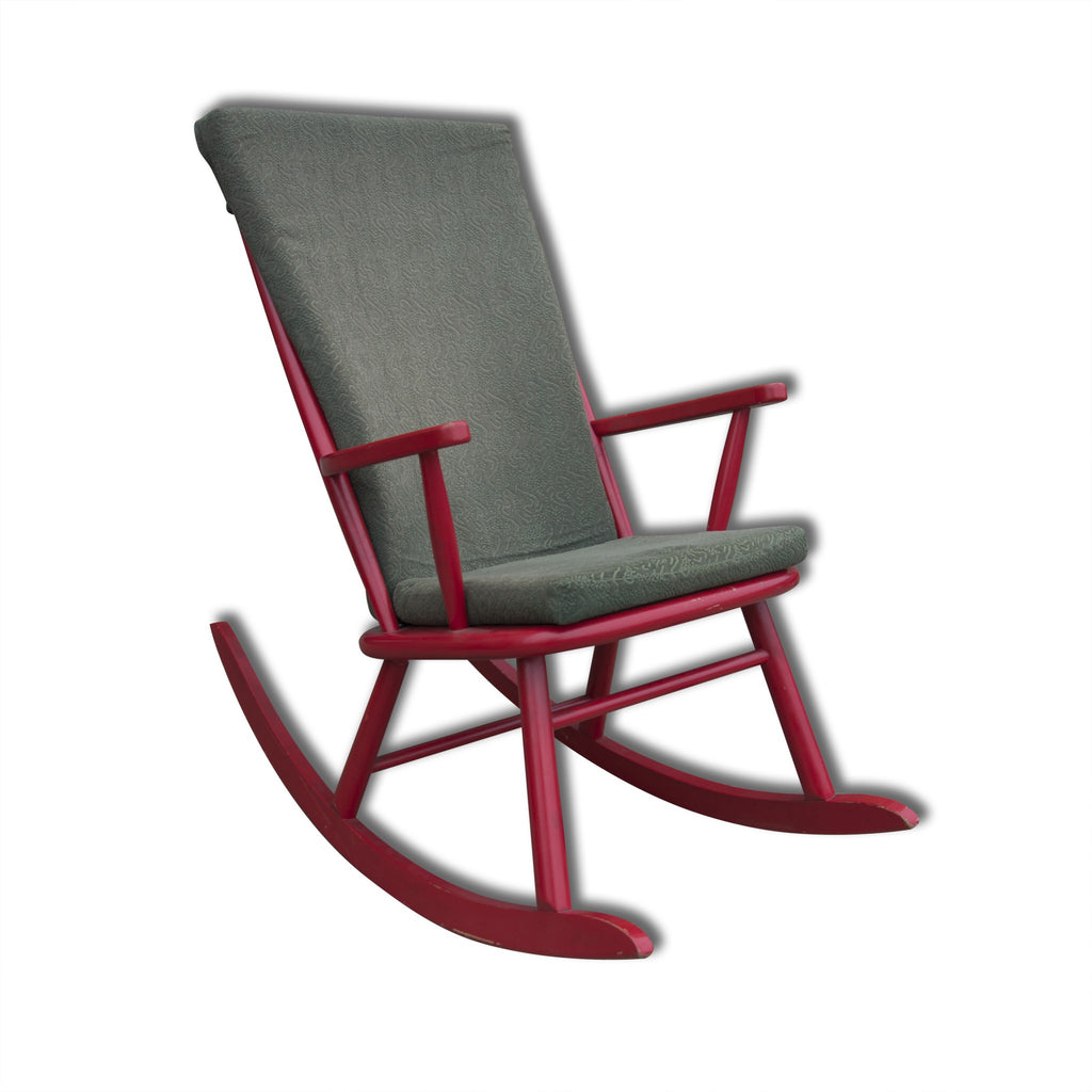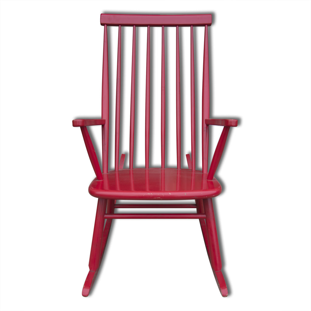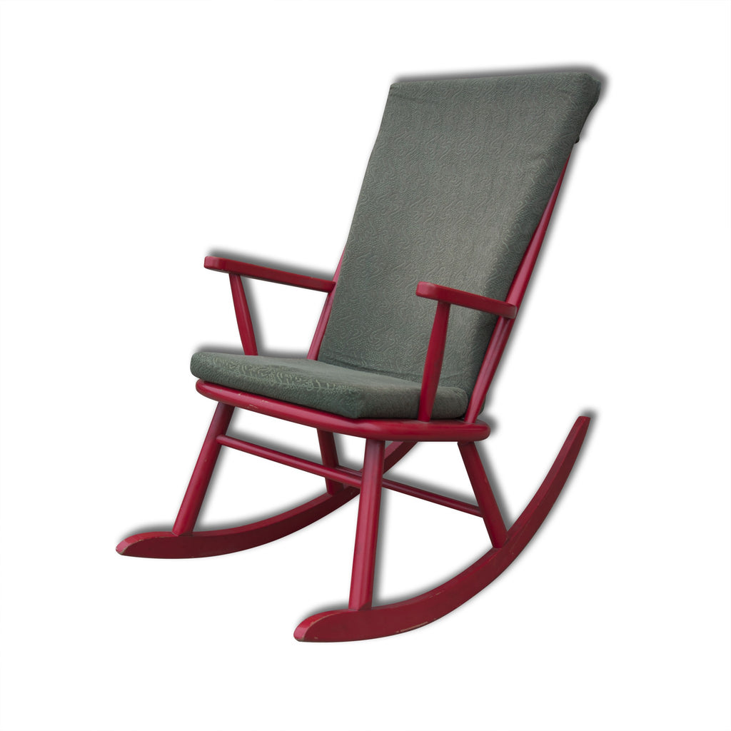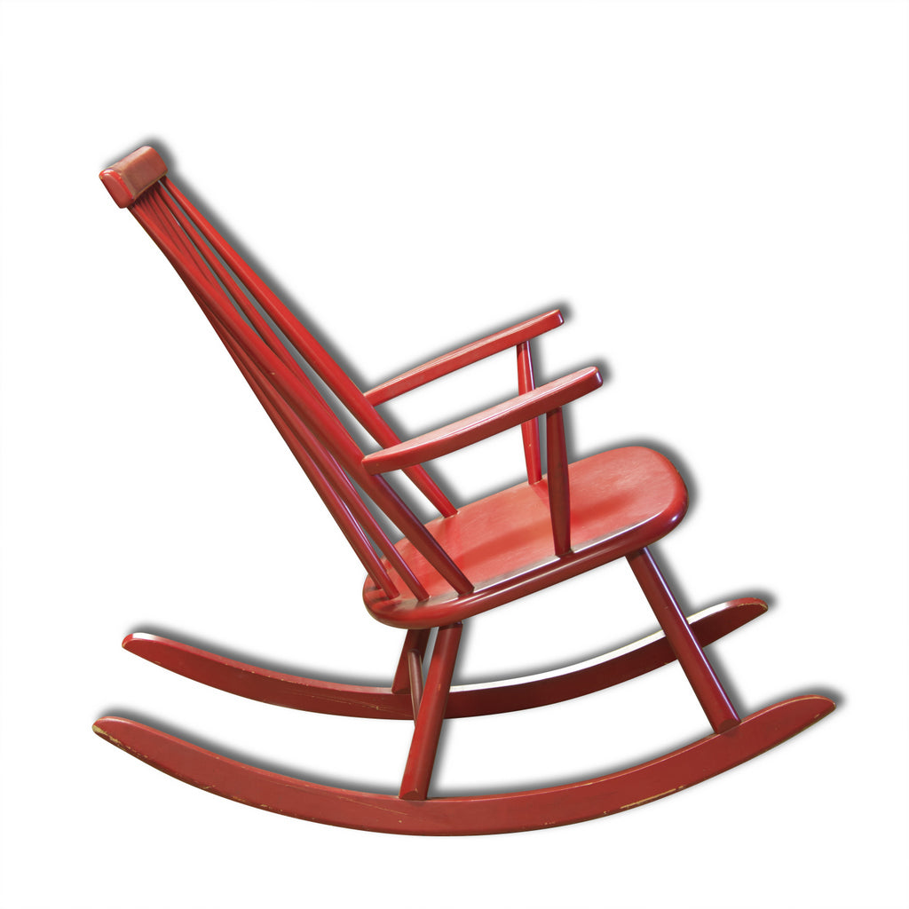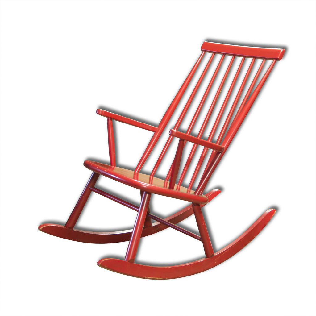 Mid-century Scandinavian rocking chair, 1950's. Beech wood, removable cushions. Red paint. In very good Vintage condition, bears some signs of use and age. The chair reminds works by Ilmari Tapiovaara or Varjosen Puunjalostus.