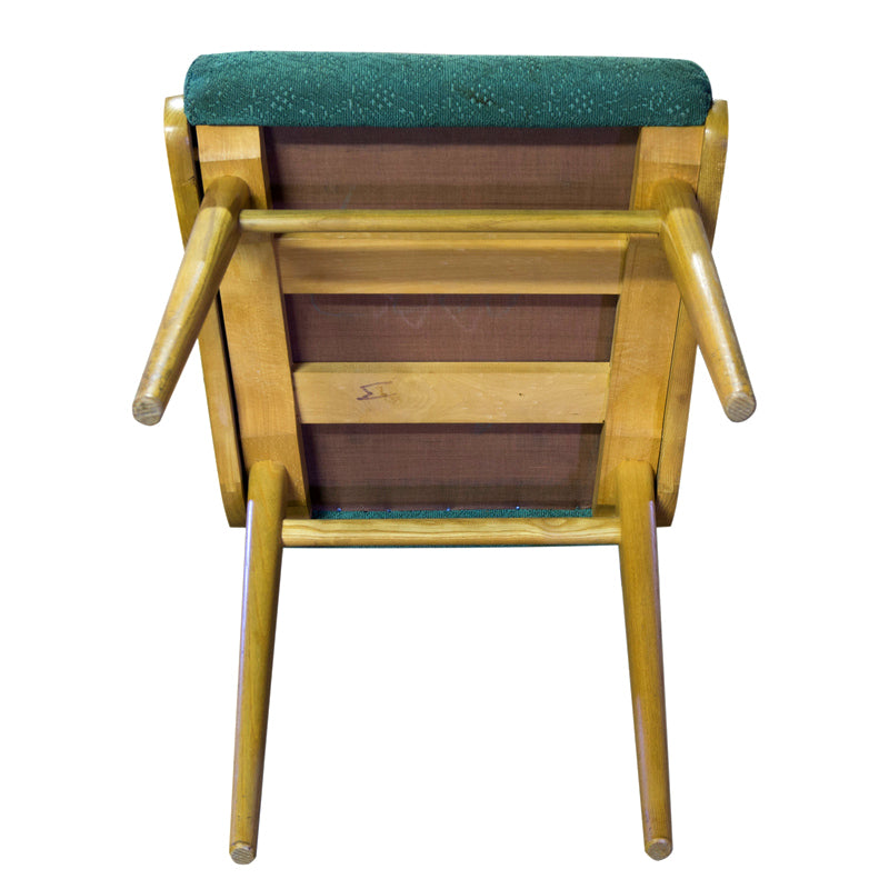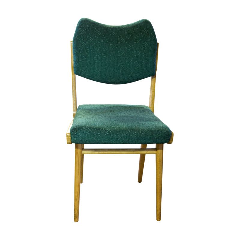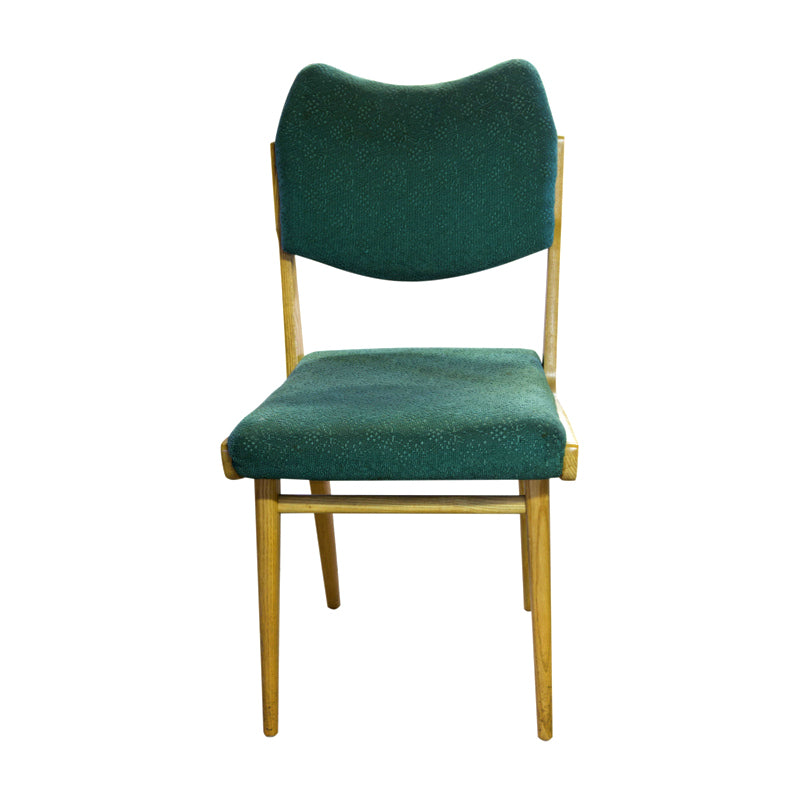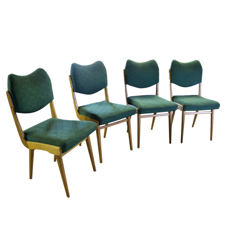 A set of four dining chairs, circa 1960, made in the former Czechoslovakia. The chairs are in good Vintage condition. Undamaged original upholstery. Price is for the complet of four.