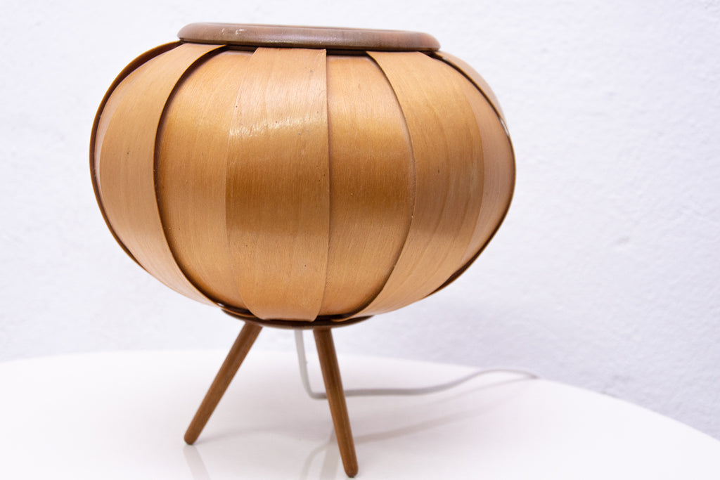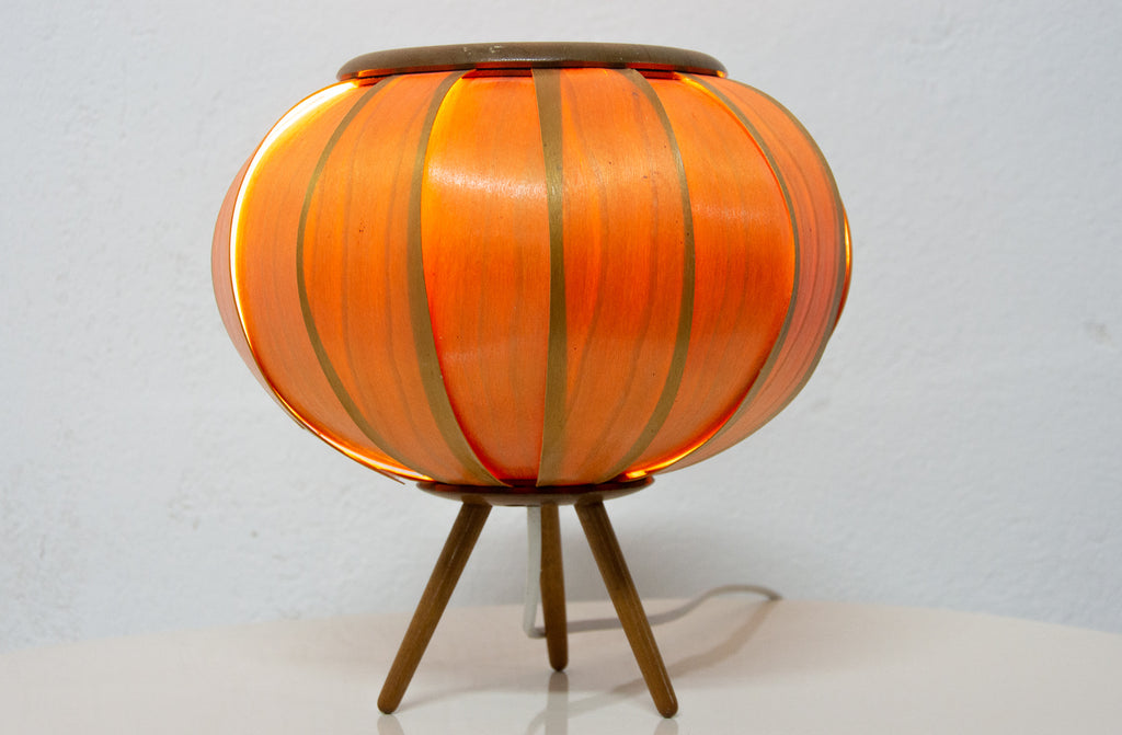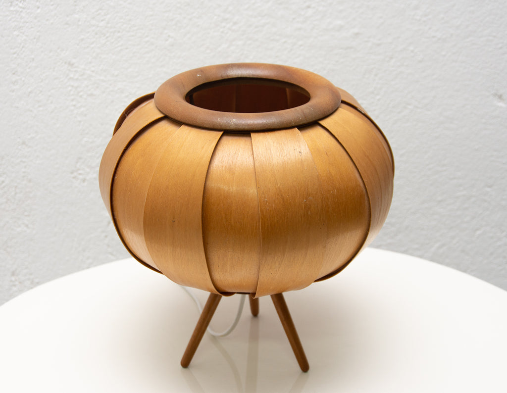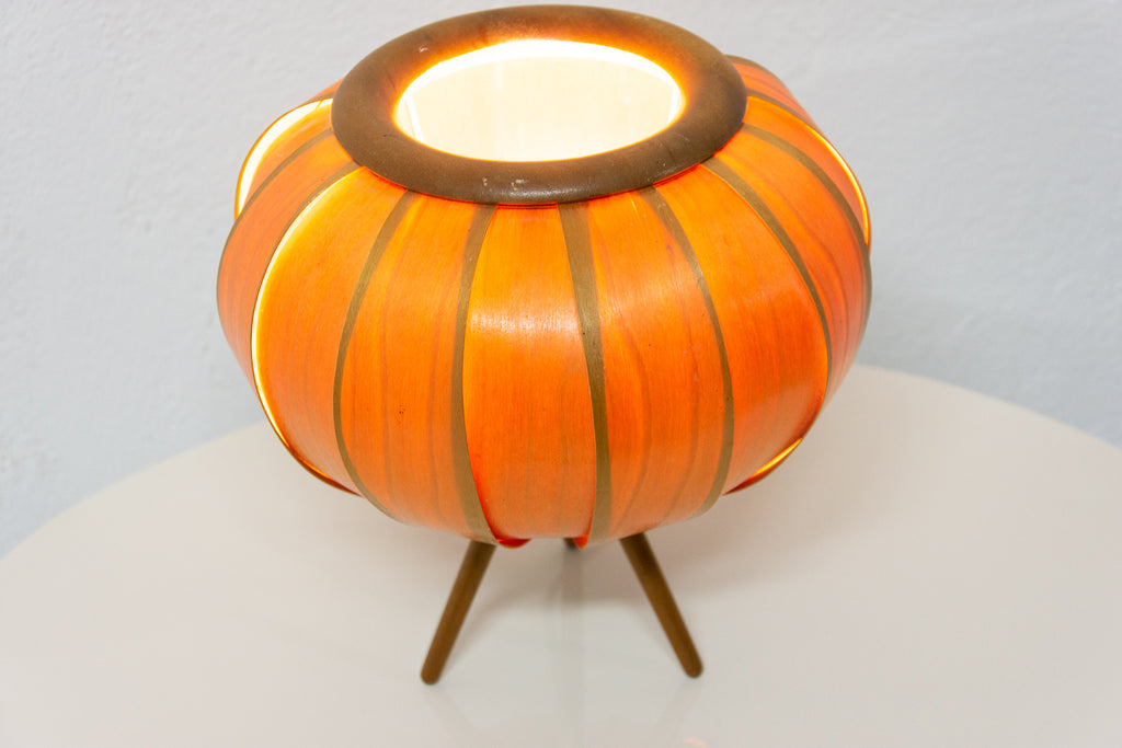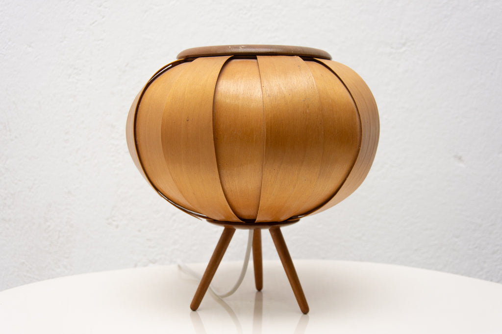 Mid century desk lamp designed by Stanislav Kučera for ULUV. The lampshade is made of slices of wood veneer. In very good Vintage condition, fully functional.