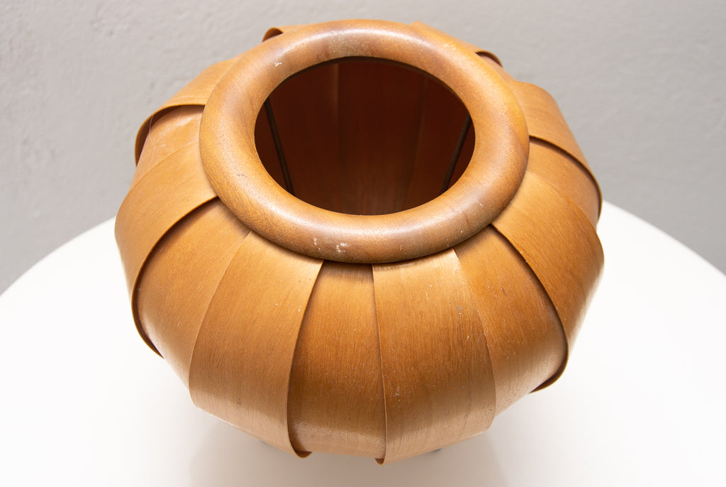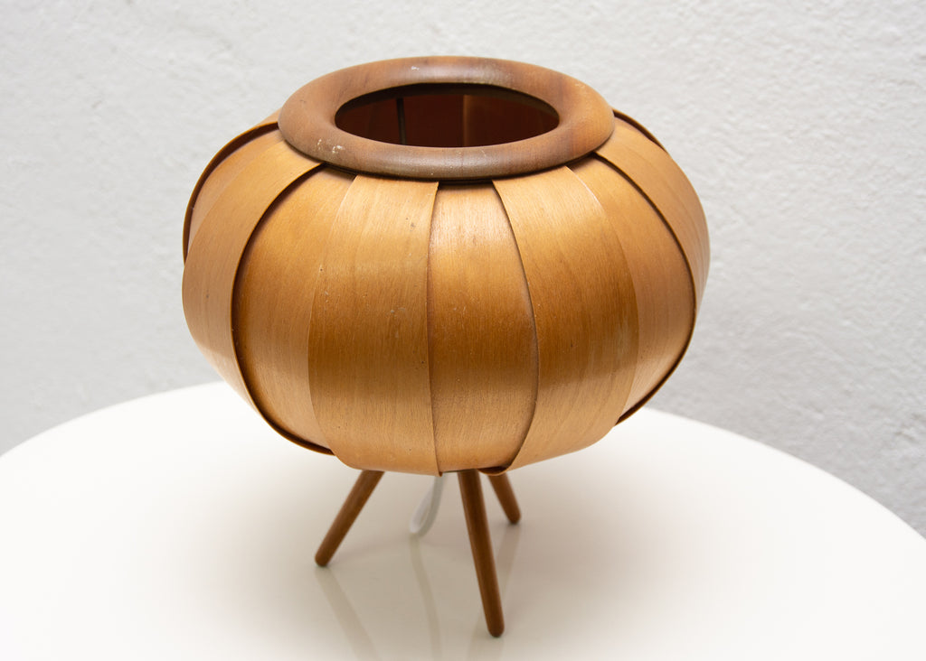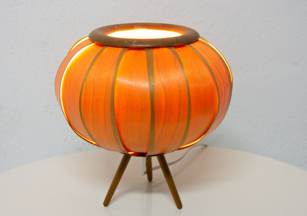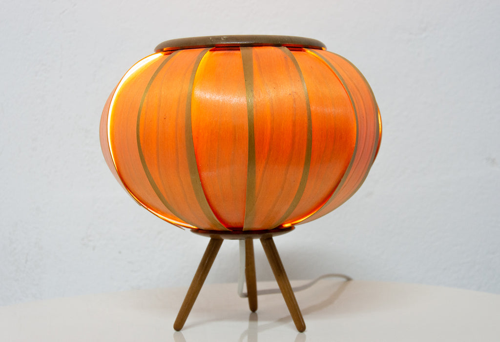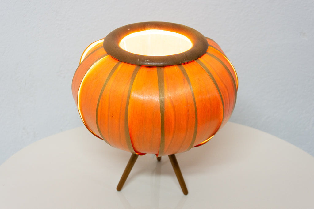 Mid century desk lamp designed by Stanislav Kučera for ULUV. The lampshade is made of slices of wood veneer. In very good Vintage condition, fully functional.