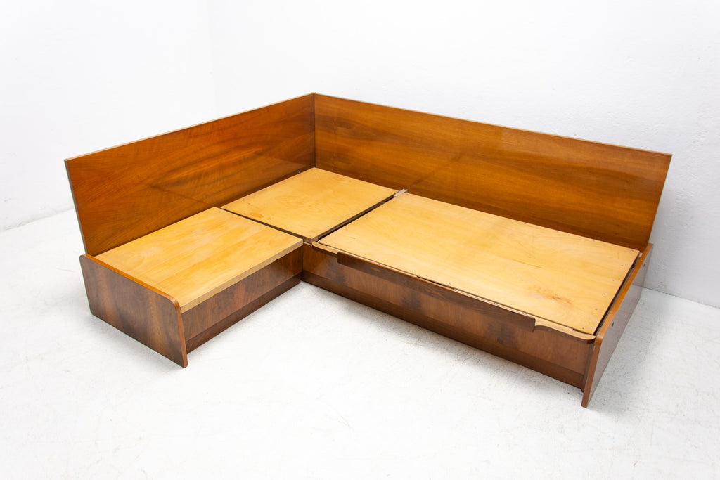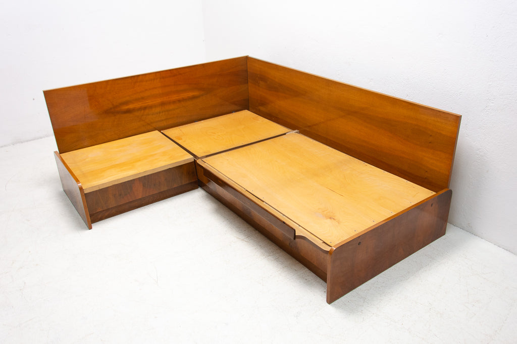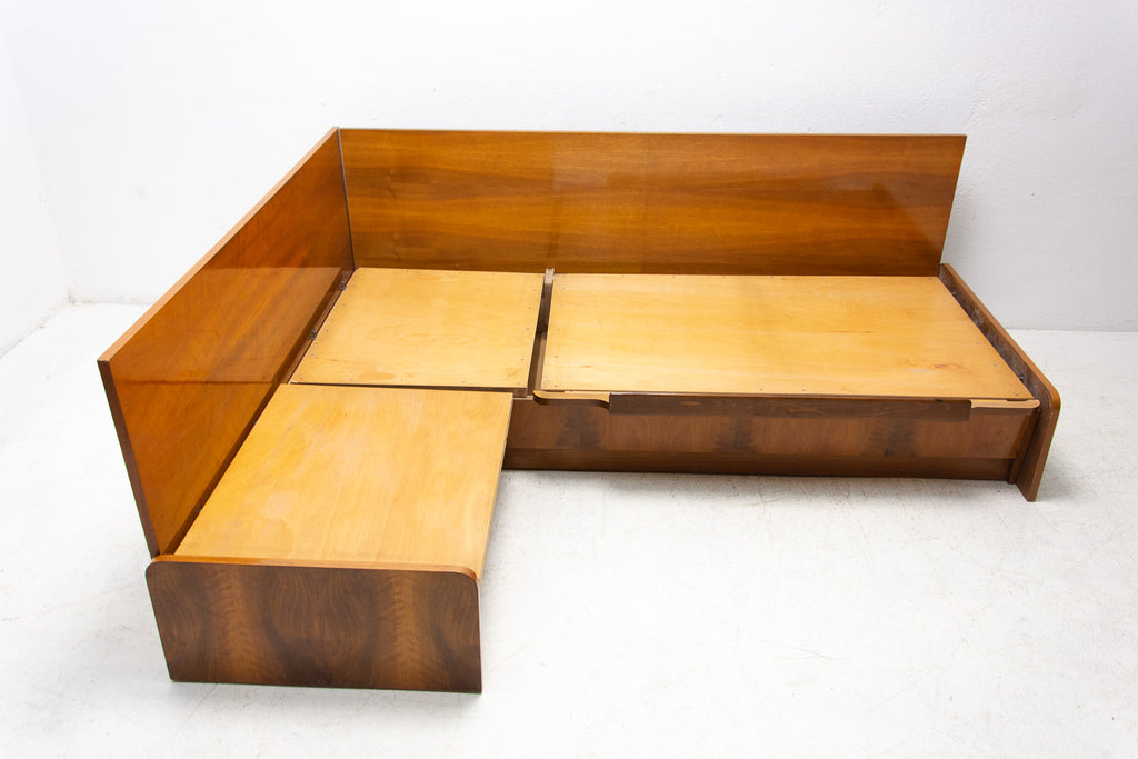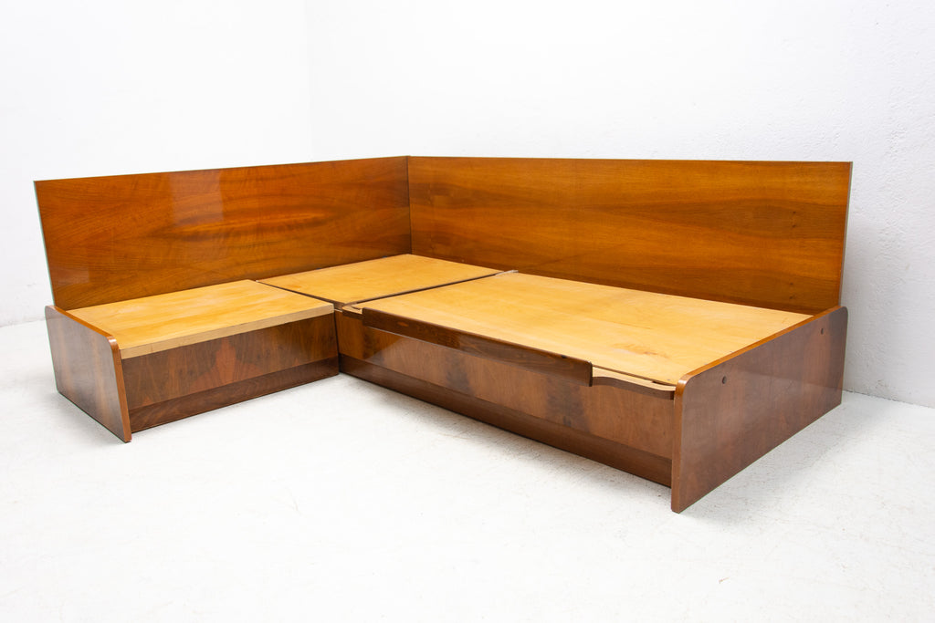 Mid century corner sofabed in walnut by Jindrich Halabala for UP Zavody, 1950s