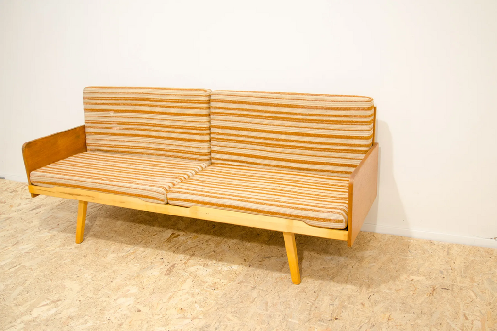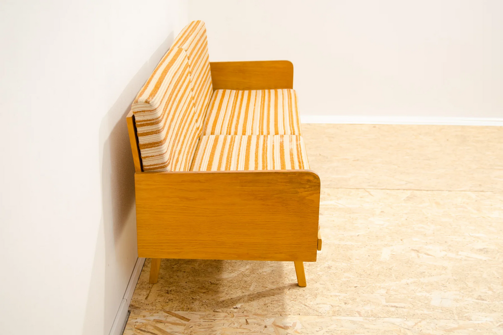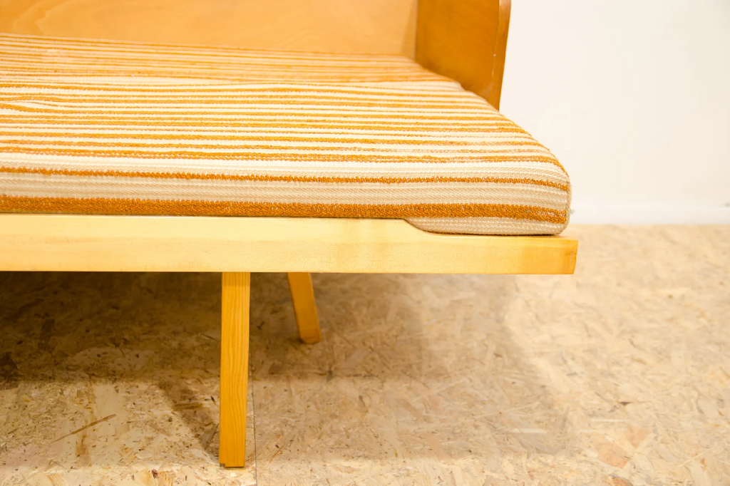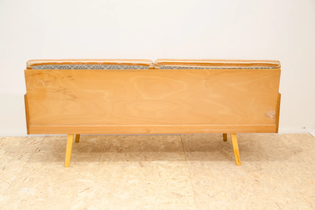 Mid century bench or sofa from Interiér Praha. It was made in the former Czechoslovakia in the 1960´s. This sofa has a wooden structure that is veneered in beech wood. The mattresses are rather soft. The sofa is in very good Vintage condition.