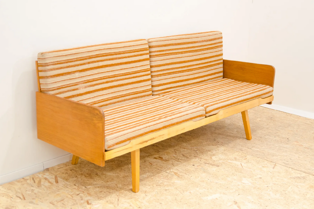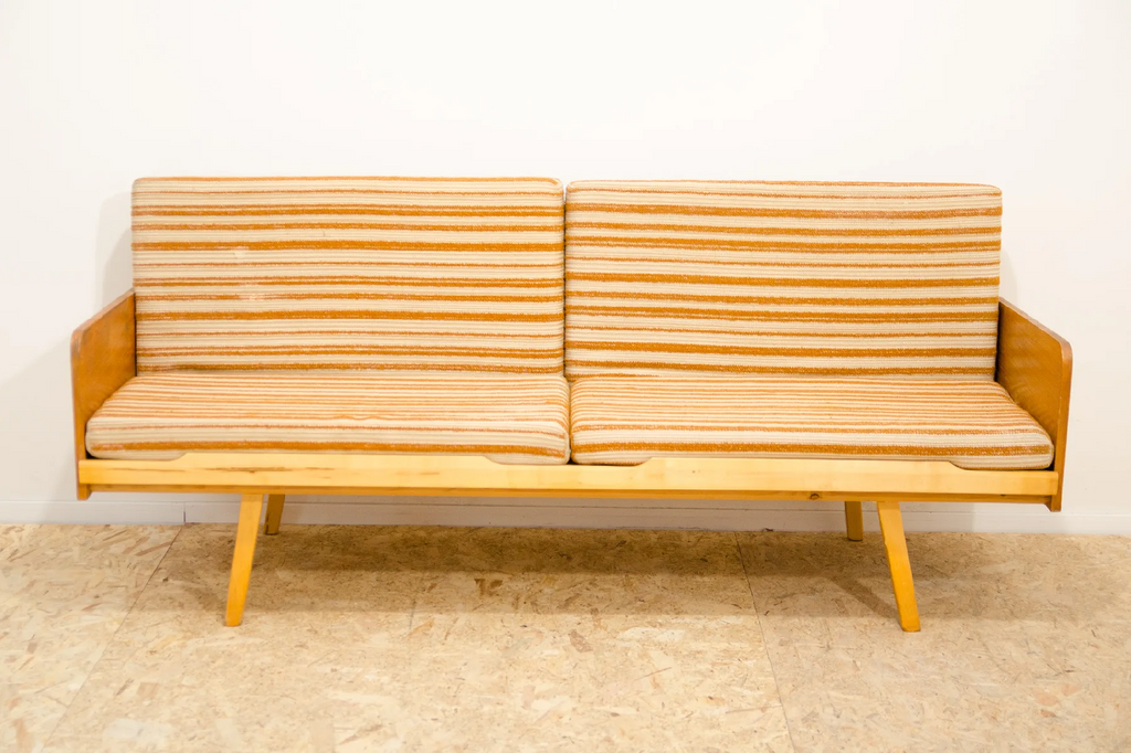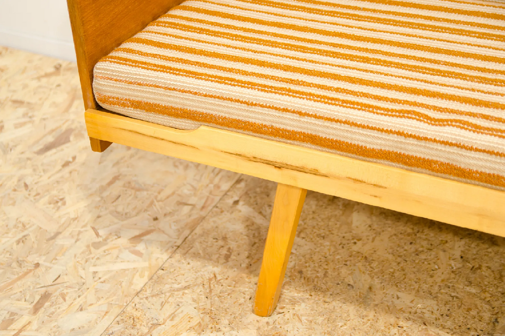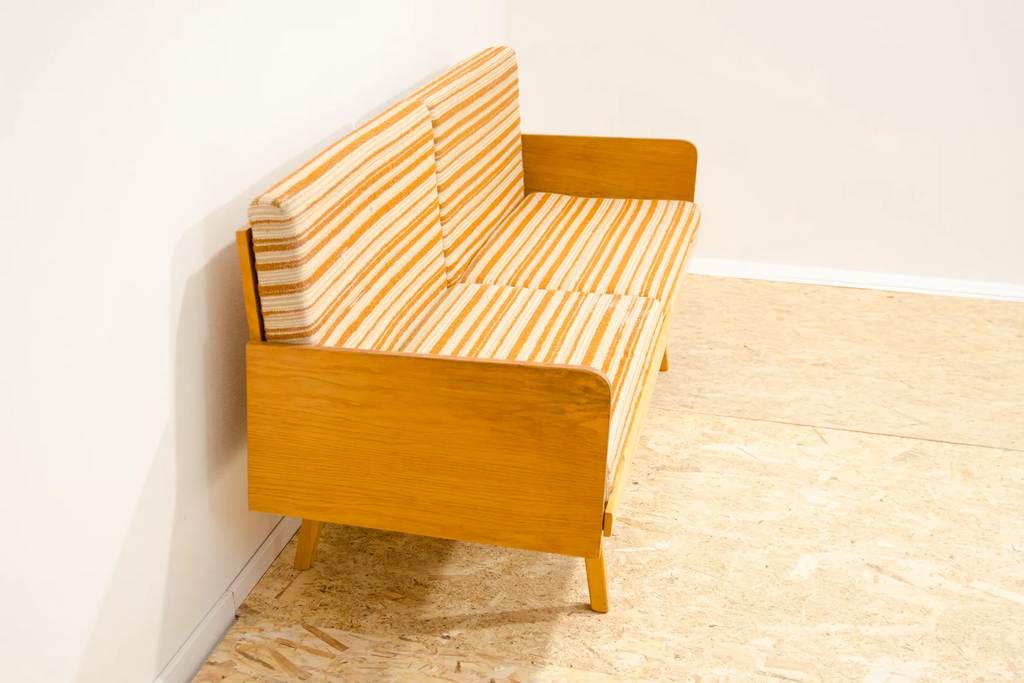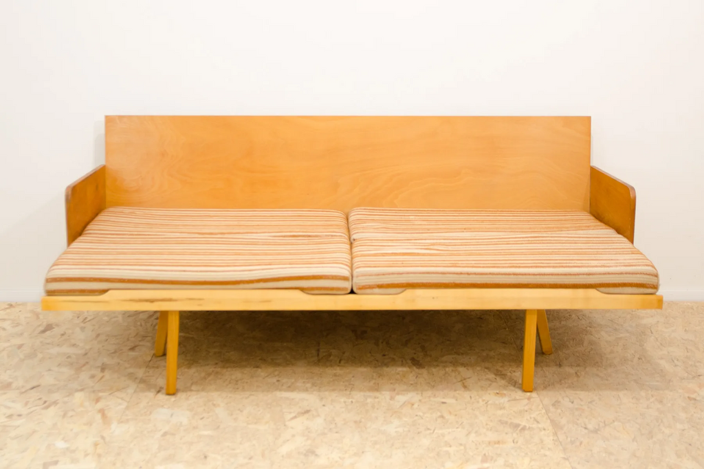 Mid century bench or sofa from Interiér Praha. It was made in the former Czechoslovakia in the 1960´s. This sofa has a wooden structure that is veneered in beech wood. The mattresses are rather soft. The sofa is in very good Vintage condition.