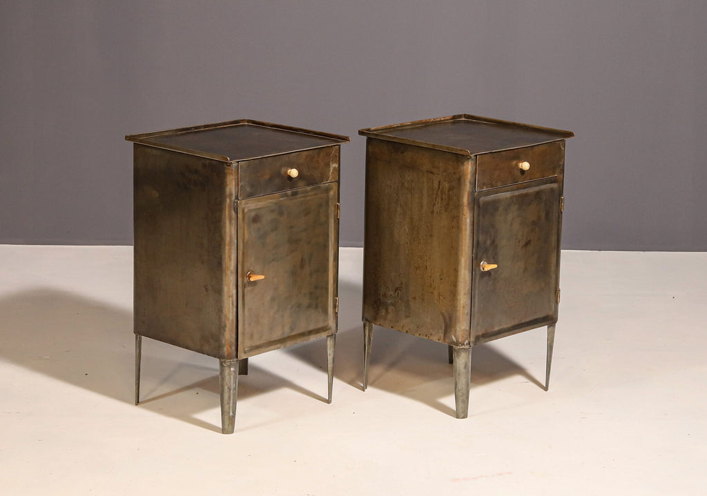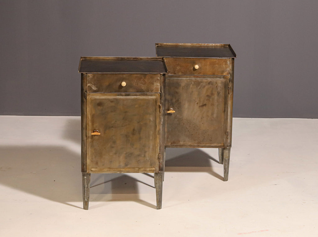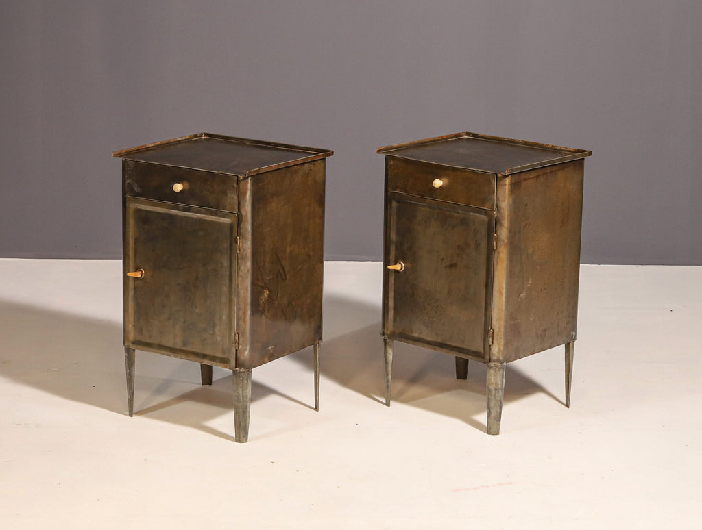 Pair of metal industrial bedside tables, 1960's, Czechoslovakia