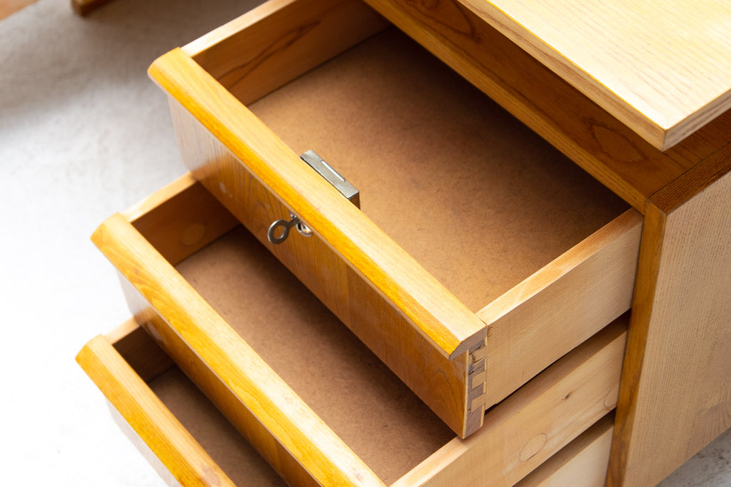 The design is very simple and elegant. It features two sections with 6 drawers in total. It´s made of beech wood and plywood.
