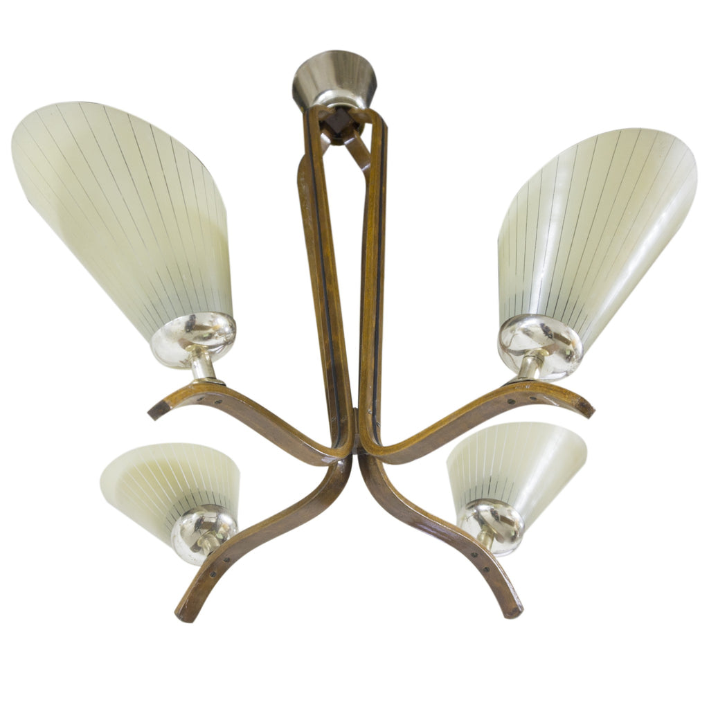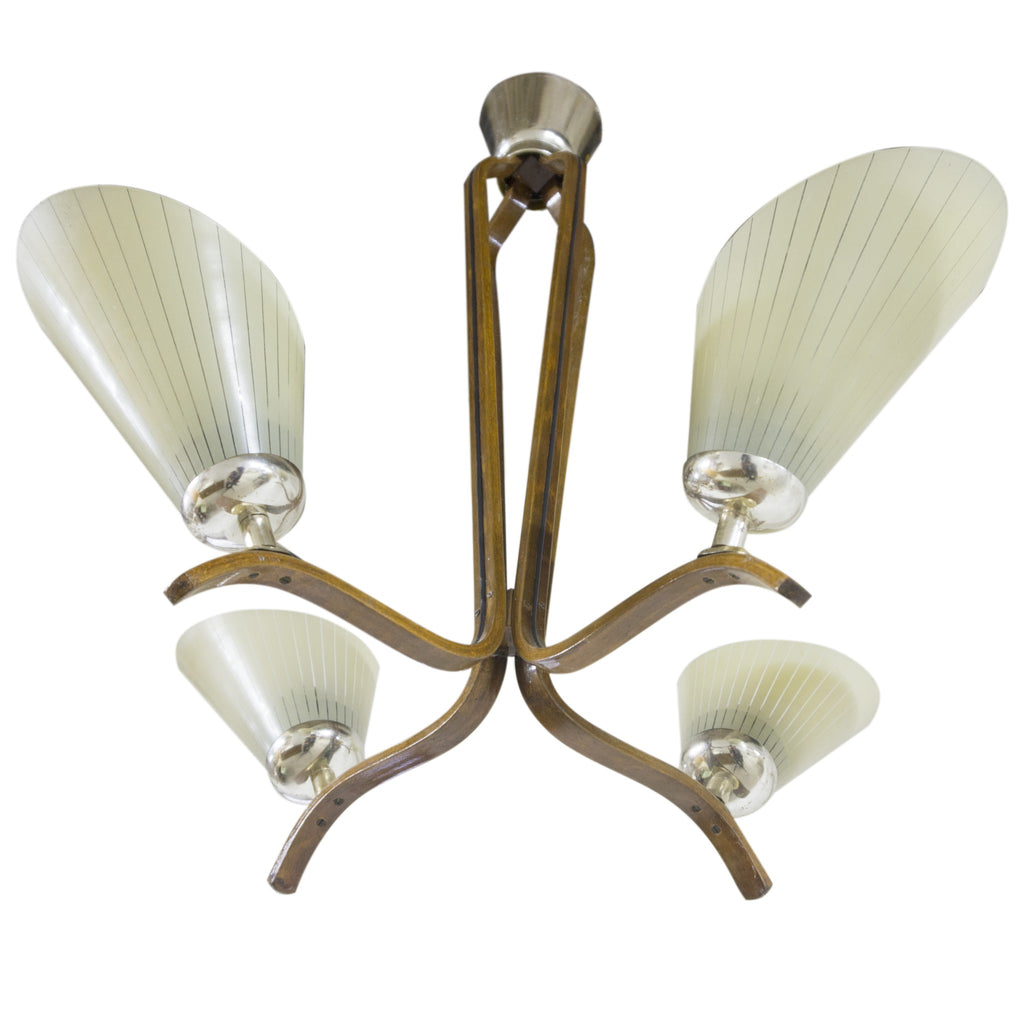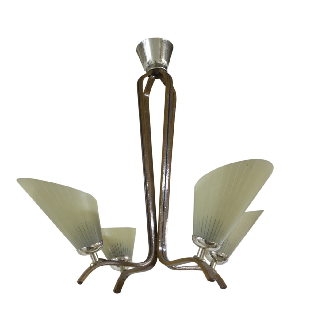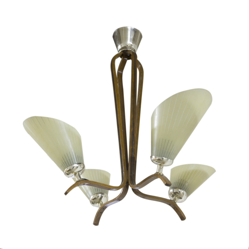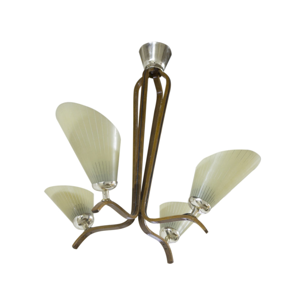 Chandelier with four glass lampshades, Mid-Century, Czechoslovakia