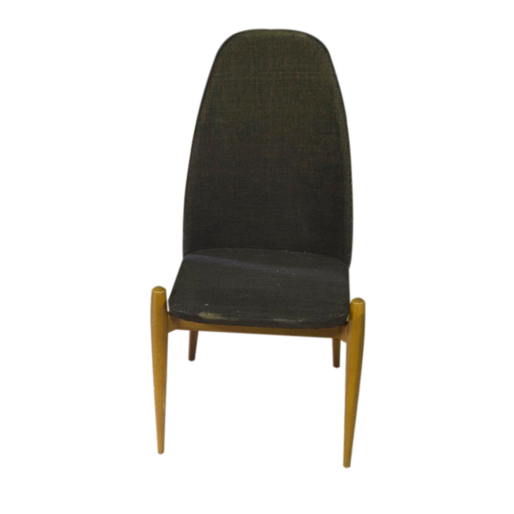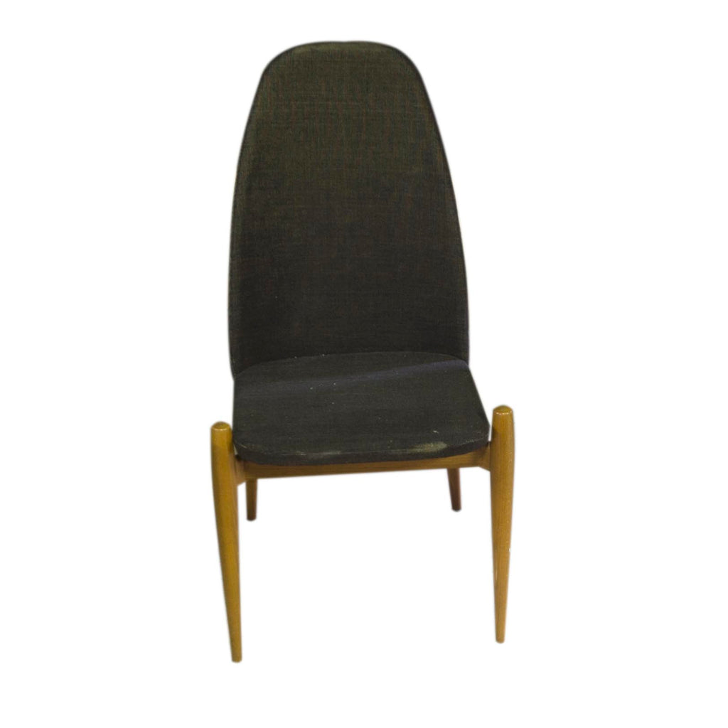 6 Excellent designer chairs, reminiscent of Pierre Guariche. Two of the supporting struts with pointed ends. Beechwood. Very good condition.