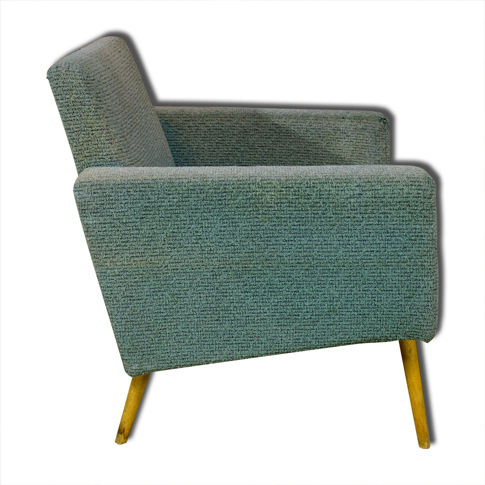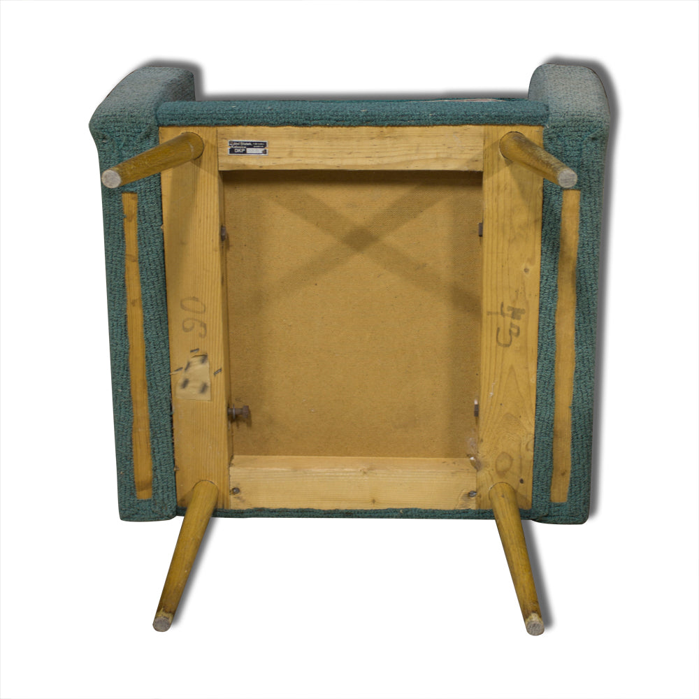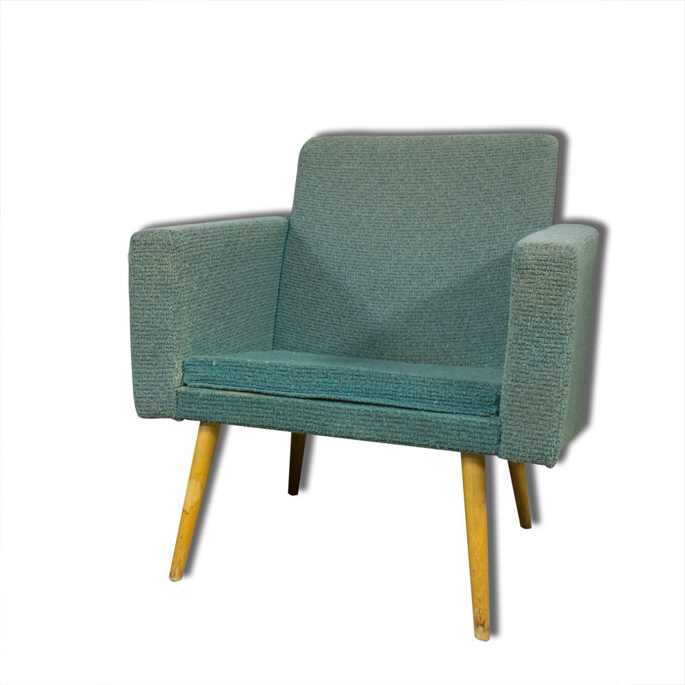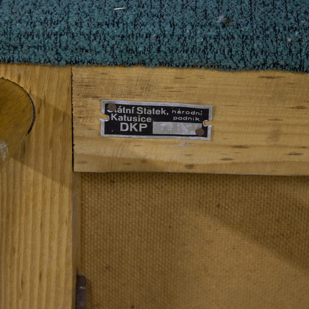 A pair of mid century armchairs, made in Czechoslovakia, asociated with Brussels period after EXPO 58. Fabric in two places slightly damaged-threadbare, look at the pictures. Overall in very good condition Price is for the pair