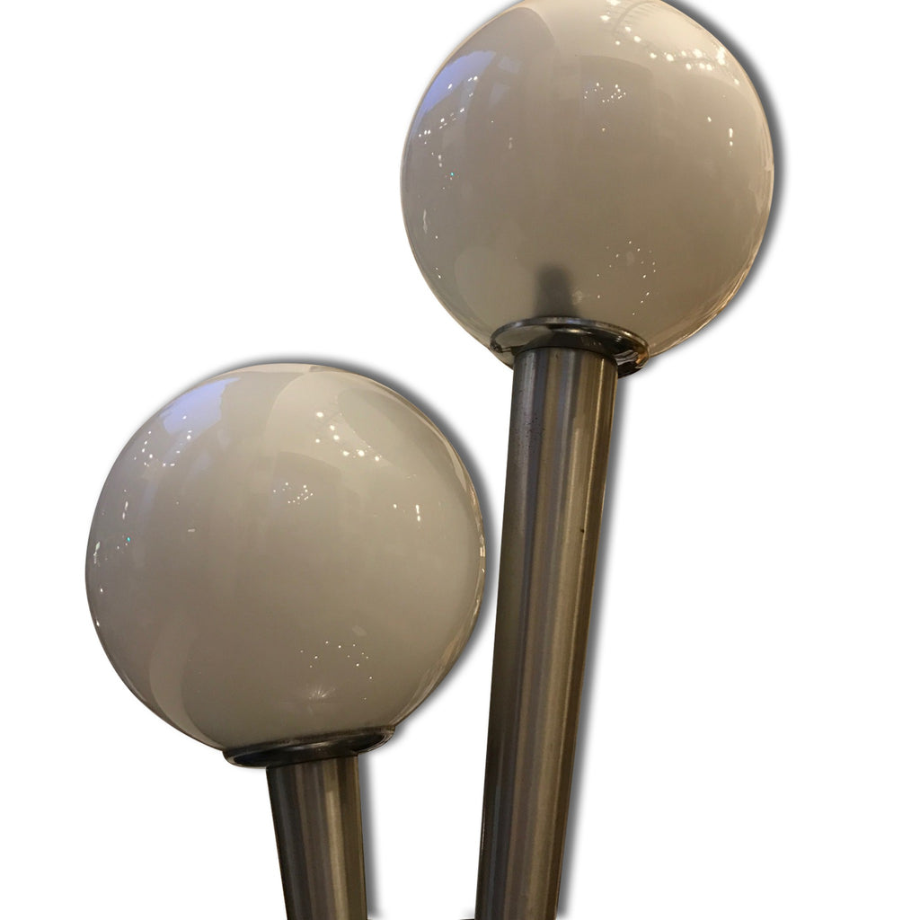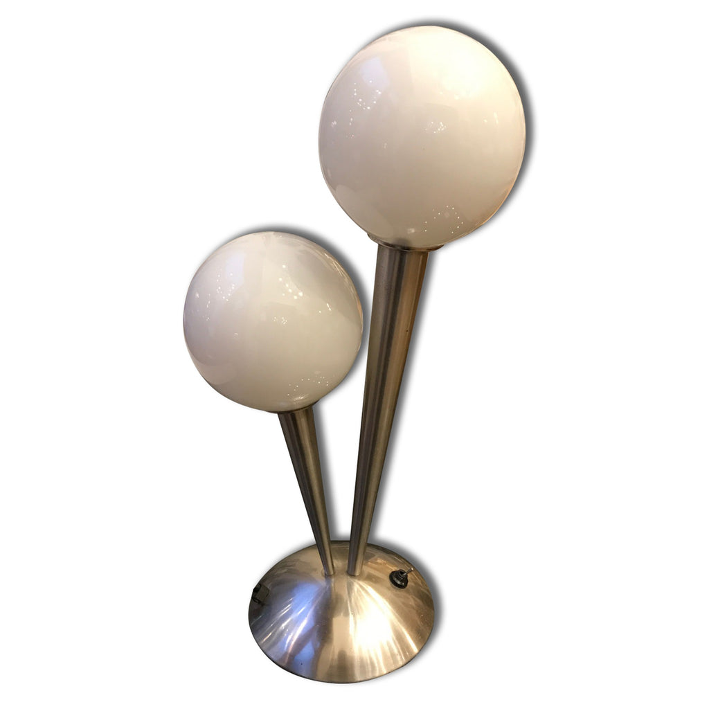 Very interesting glass desk lamp, 1930´s, in ART DECO or Bauhaus style. Opal glass, chromium plated. In excellent condition. New wiring.