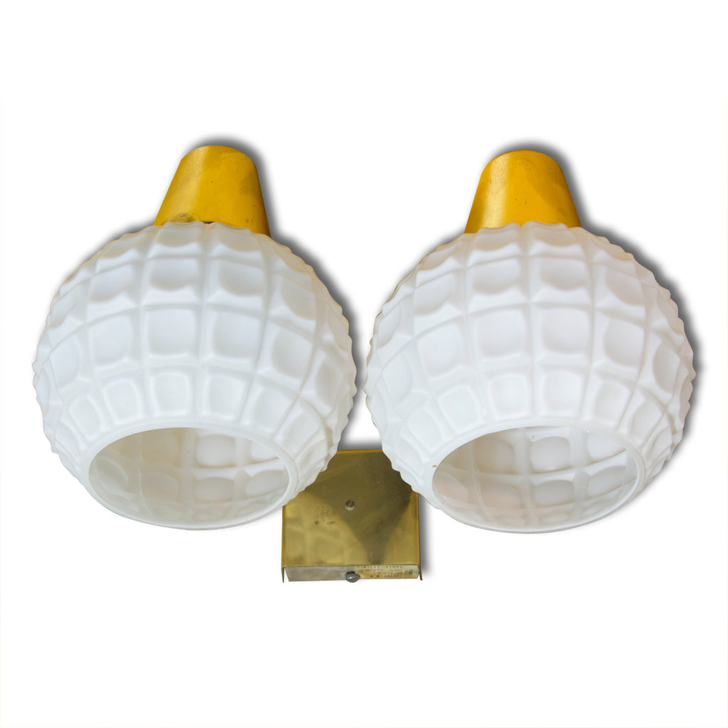 Pair of Vintage Czechoslovak brass wall lamps, Eastern bloc